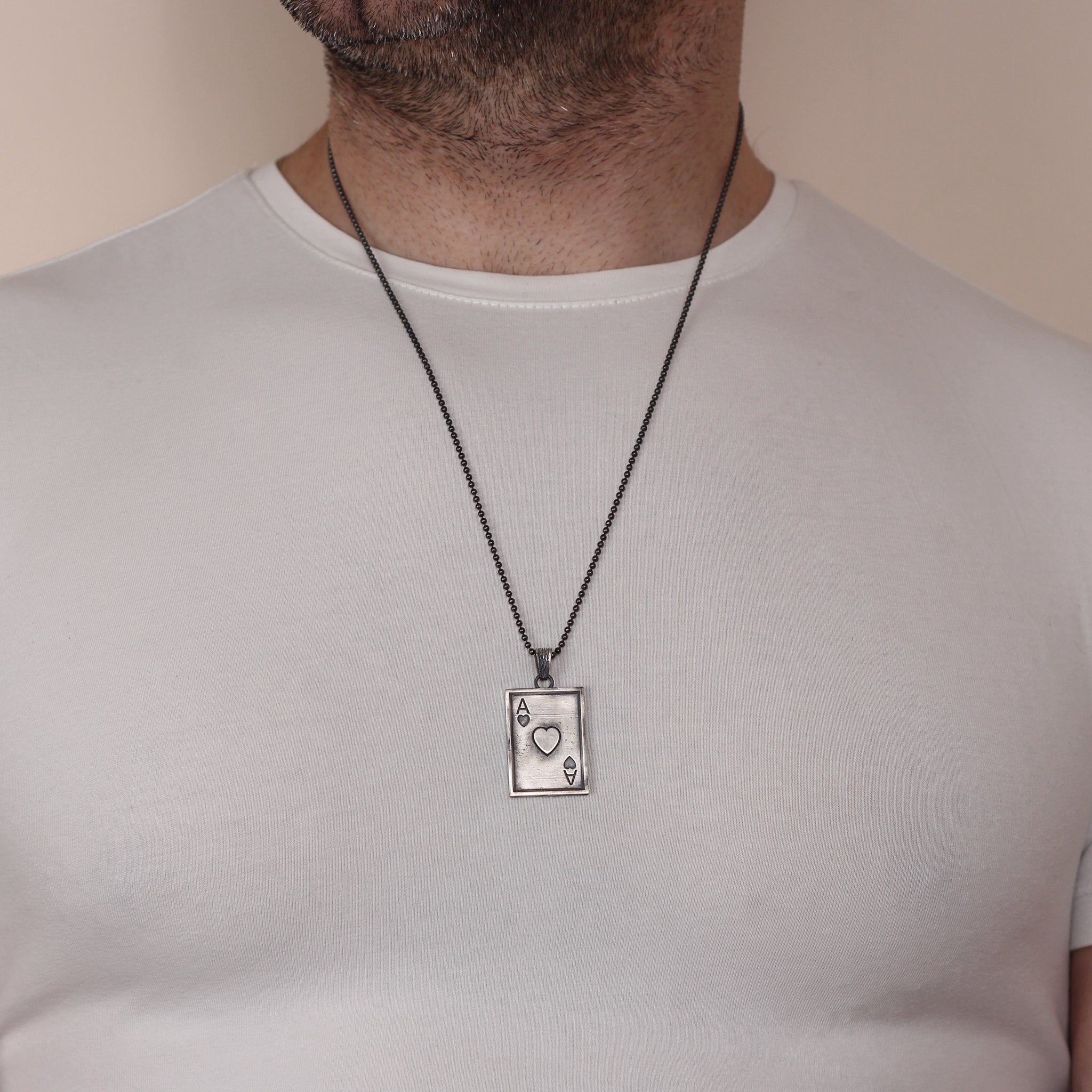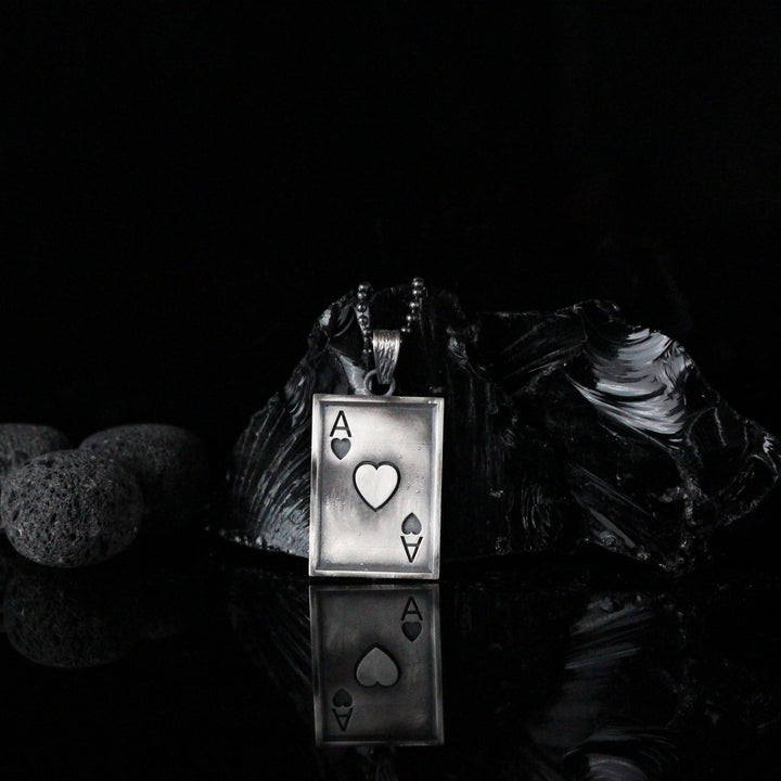 Ace Of Hearts Men Necklace, Silver Ace Of Hearts Necklace