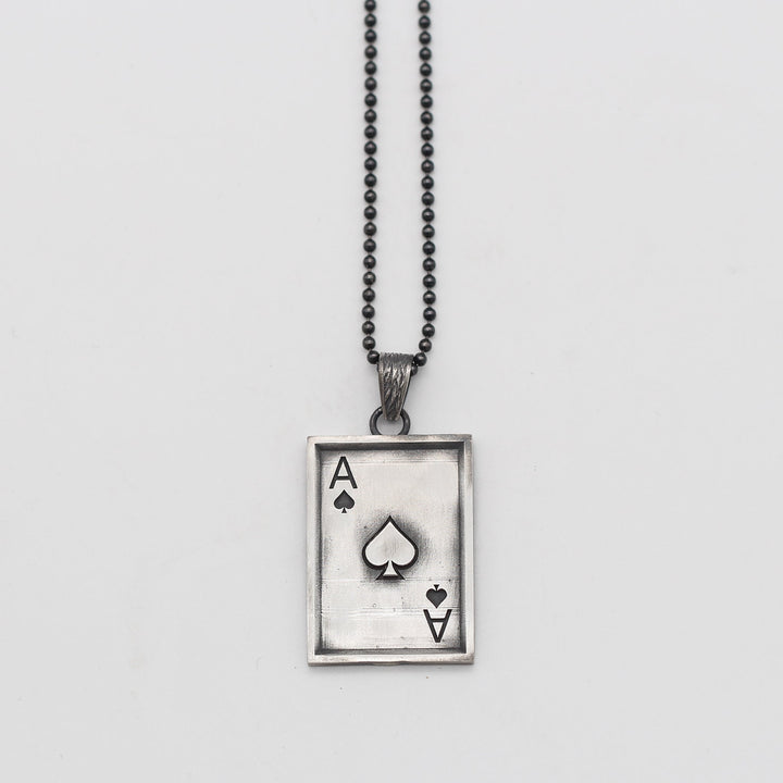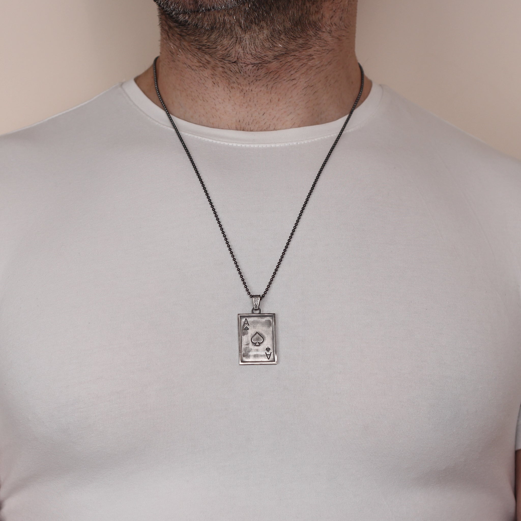 Ace Of Spades Men Necklace, Silver Card Necklace