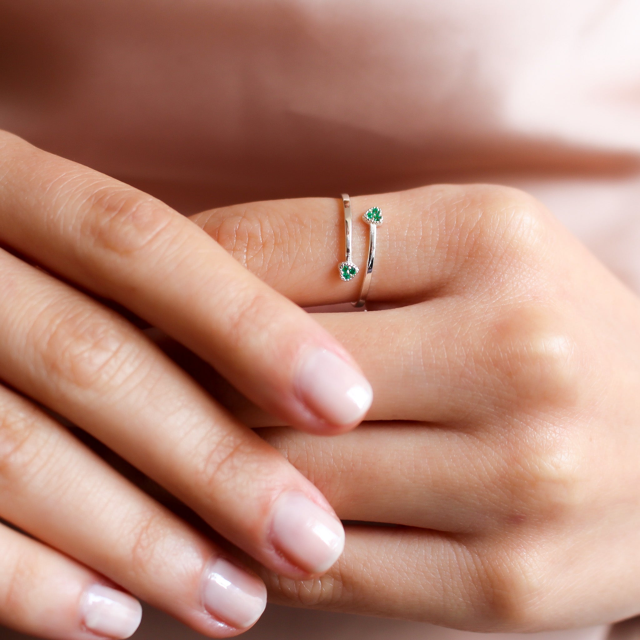Delight in the elegance of this adjustable emerald heart ring, meticulously crafted from your choice of 8K or 14K solid gold. With its delicate twin-heart design featuring vivid emerald stones, this ring radiates timeless sophistication. Perfect for everyday wear or as a heartfelt gift, it combines modern style with unmatched quality.