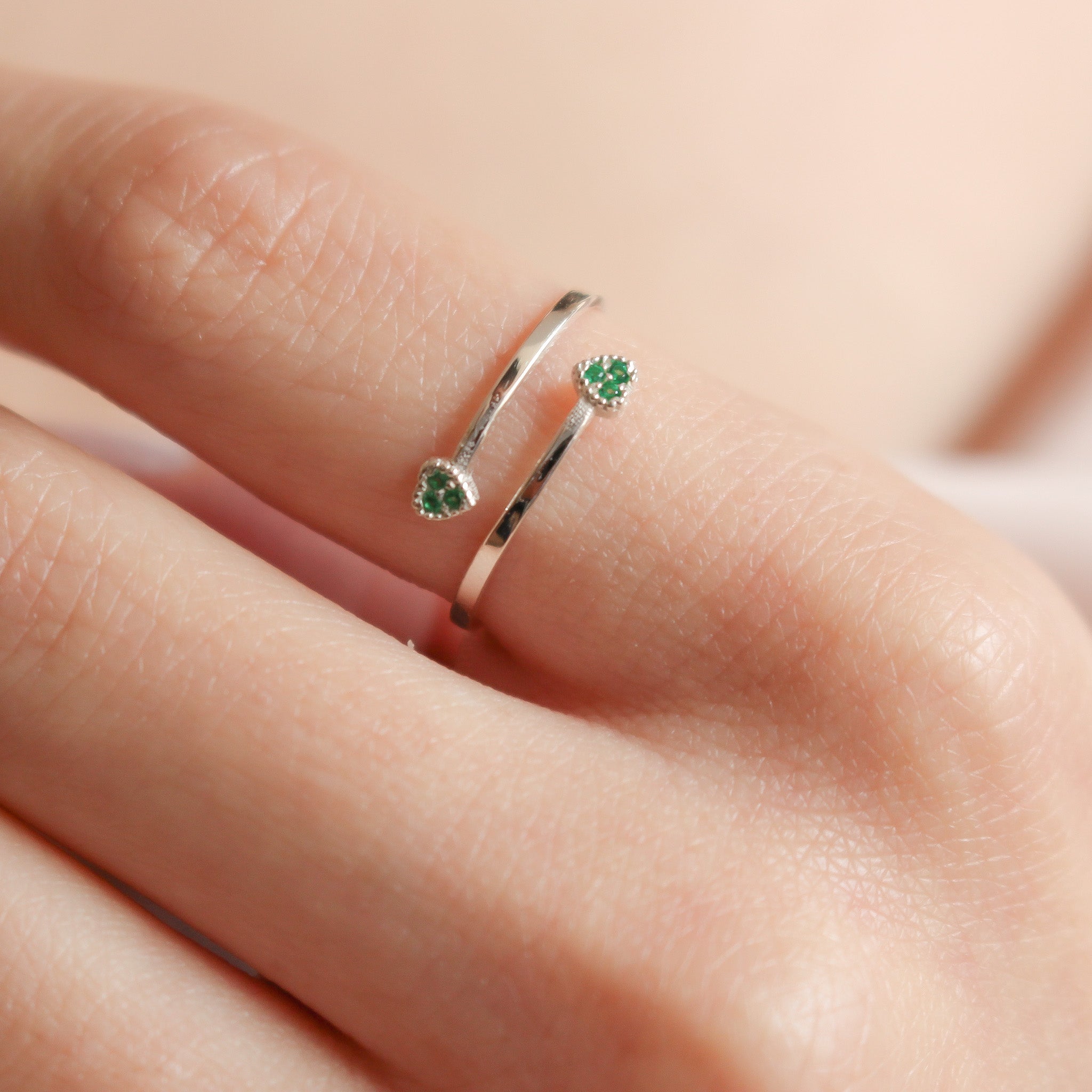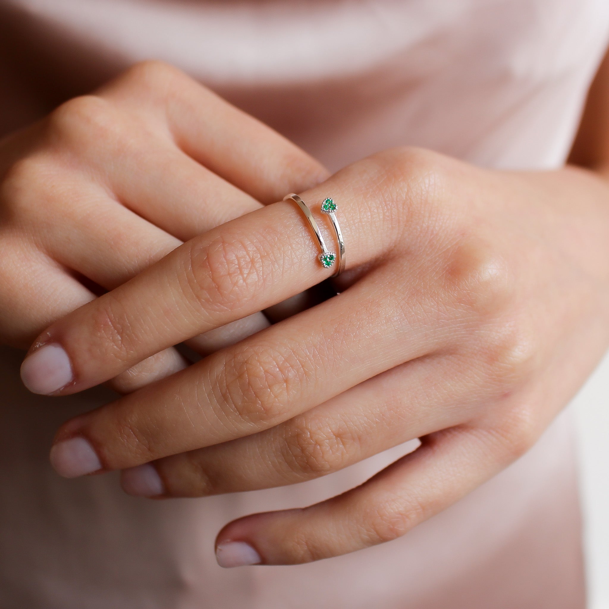 ALEX Solid Gold Double Two Heart Emerald Ring | Adjustable Emerald Hearts Ring for Women