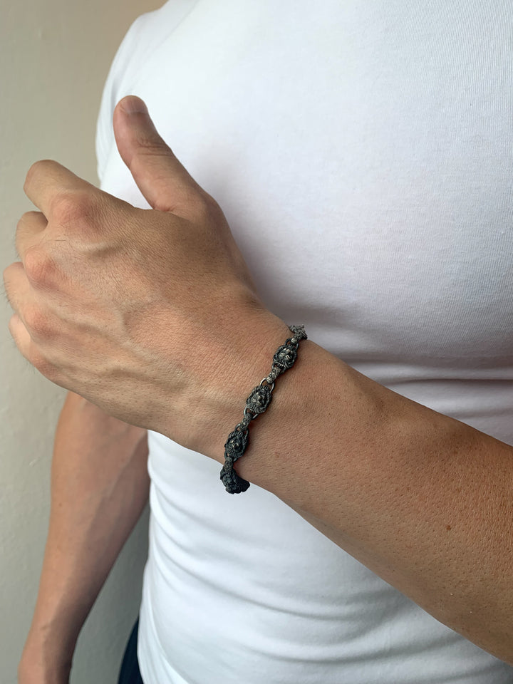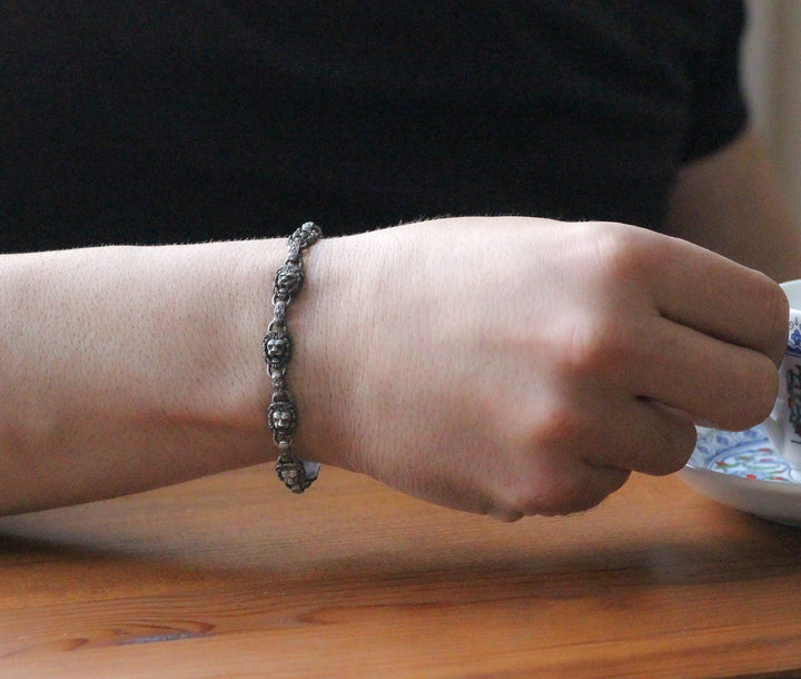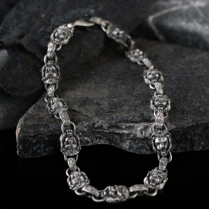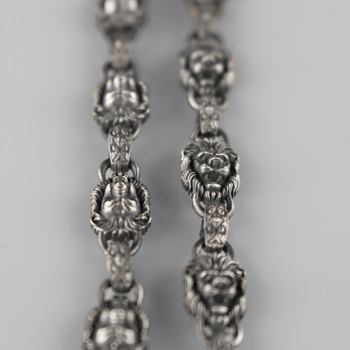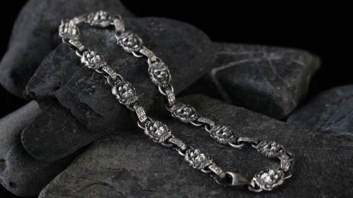 925K Sterling Silver Men's Chain Bracelet with Lion Head Motifs | Strength and Elegance Combined Jewelry