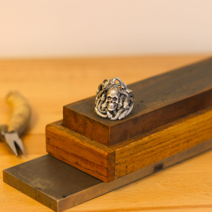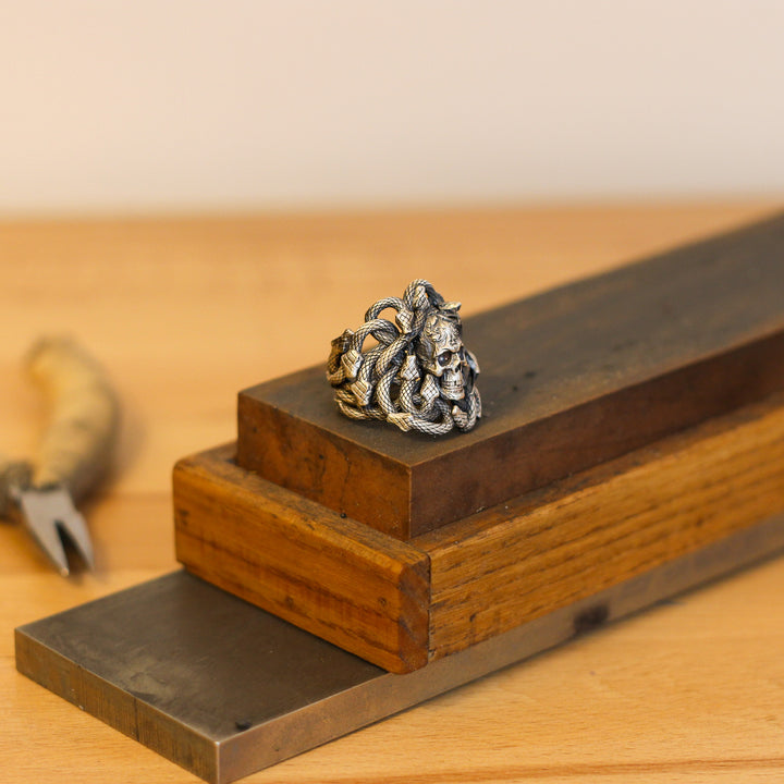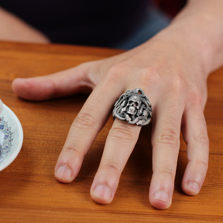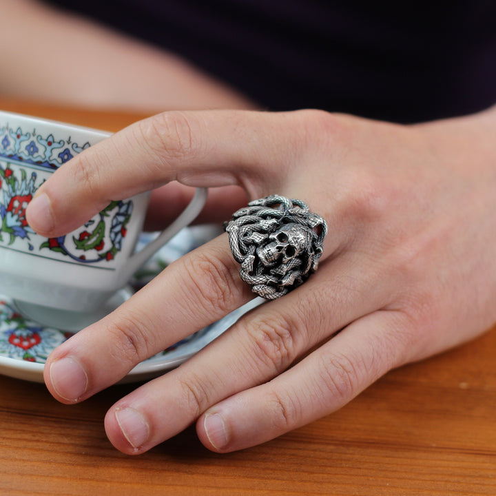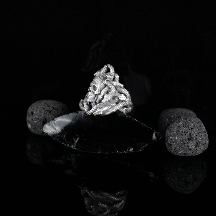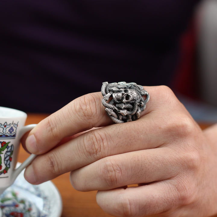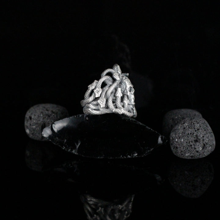 Sterling Silver Snake and Skull Ring for Men | Bold and Symbolic Gothic Ring for Men