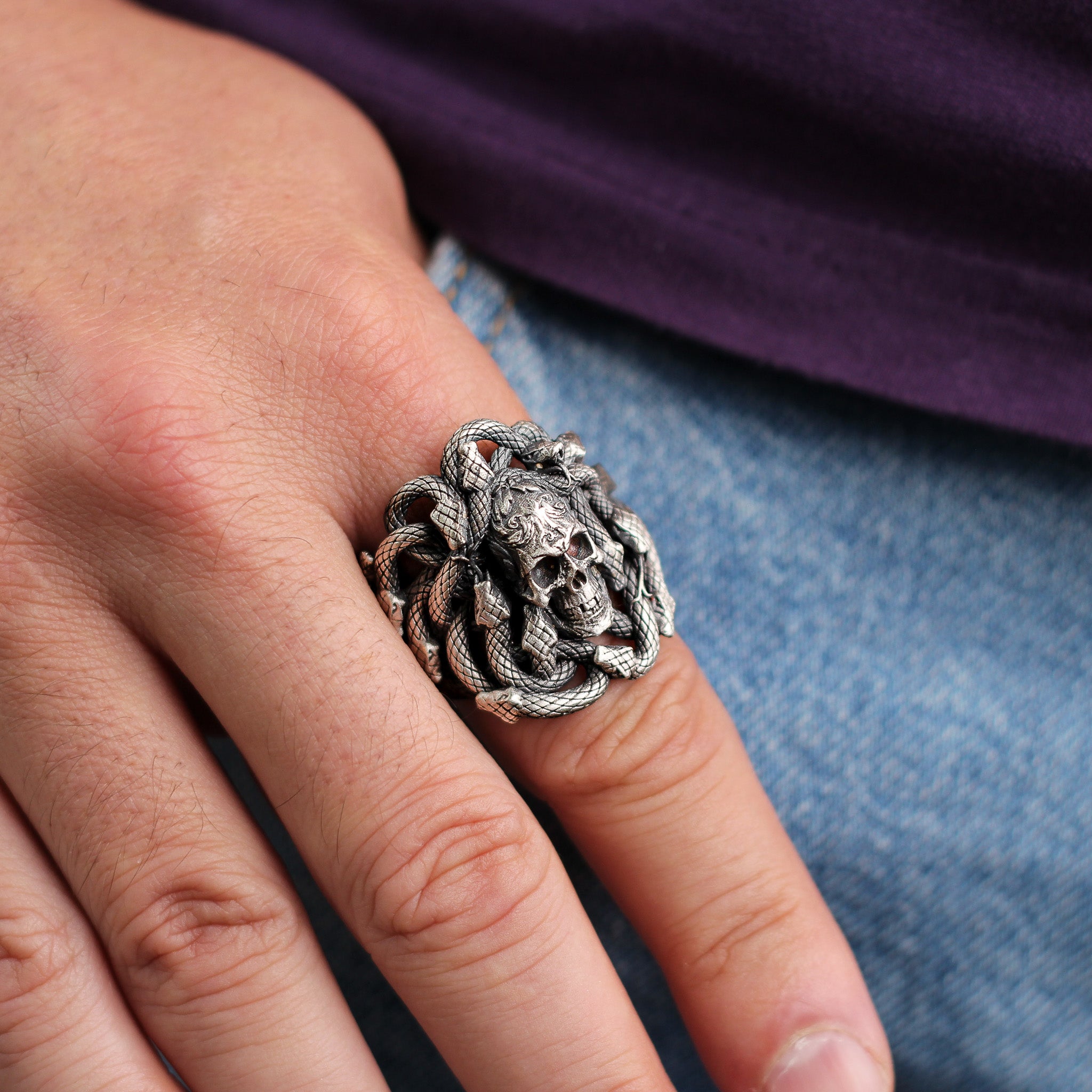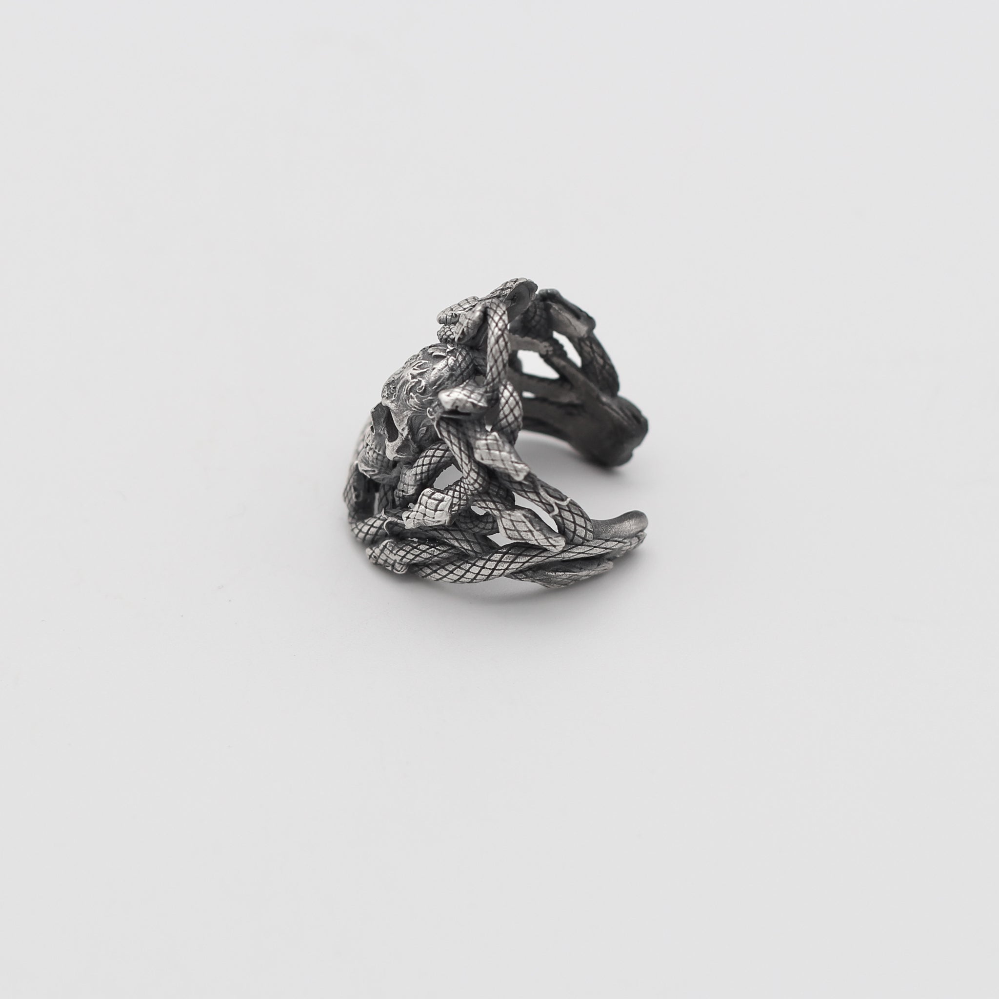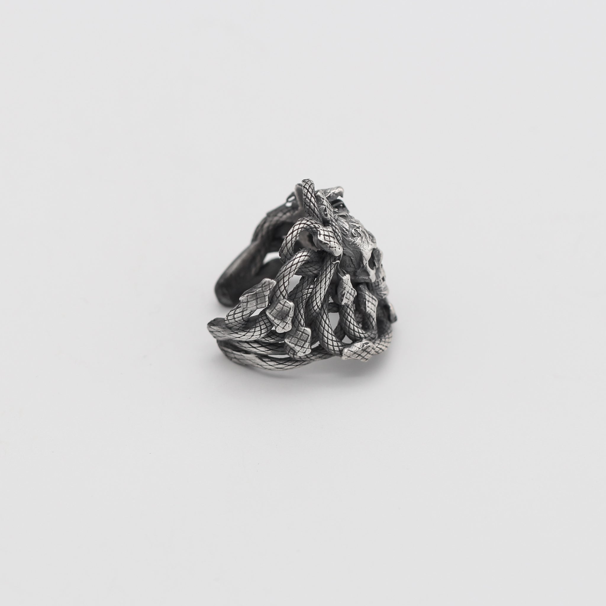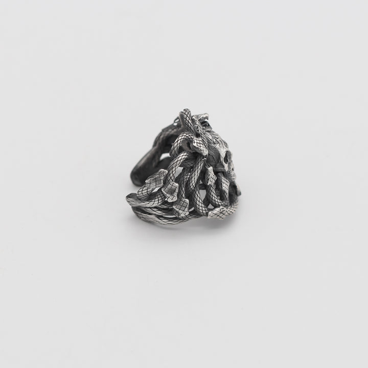Sterling Silver Snake and Skull Ring for Men | Bold and Symbolic Gothic Ring for Men