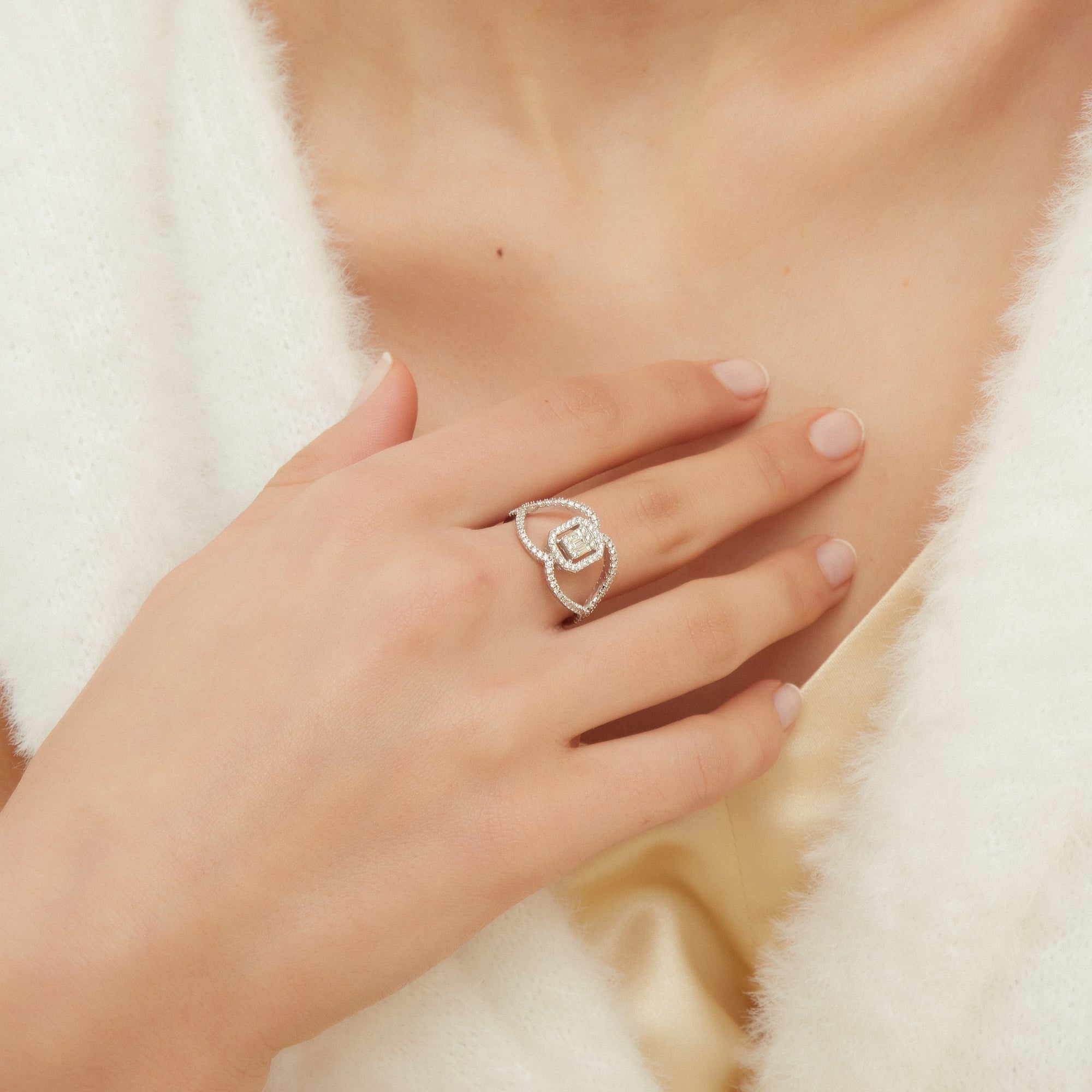 Elevate your style with this modern halo diamond ring, showcasing a distinctive open design that exudes sophistication and uniqueness. Crafted from luxurious 8K or 14K solid gold, this piece features dazzling diamonds meticulously arranged to enhance its contemporary aesthetic. Perfect for engagements, anniversaries, or as a statement accessory, this ring is the epitome of modern elegance.