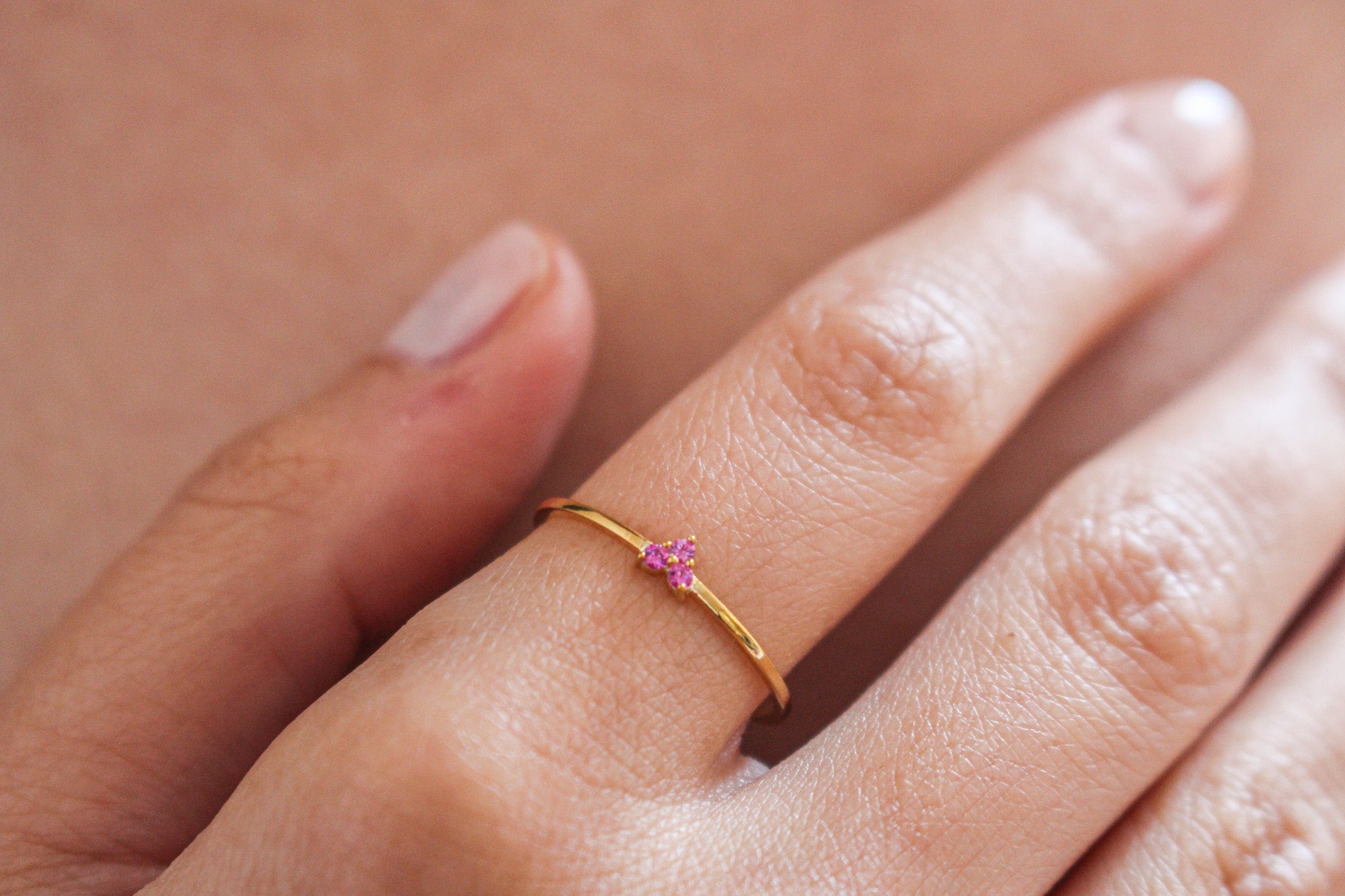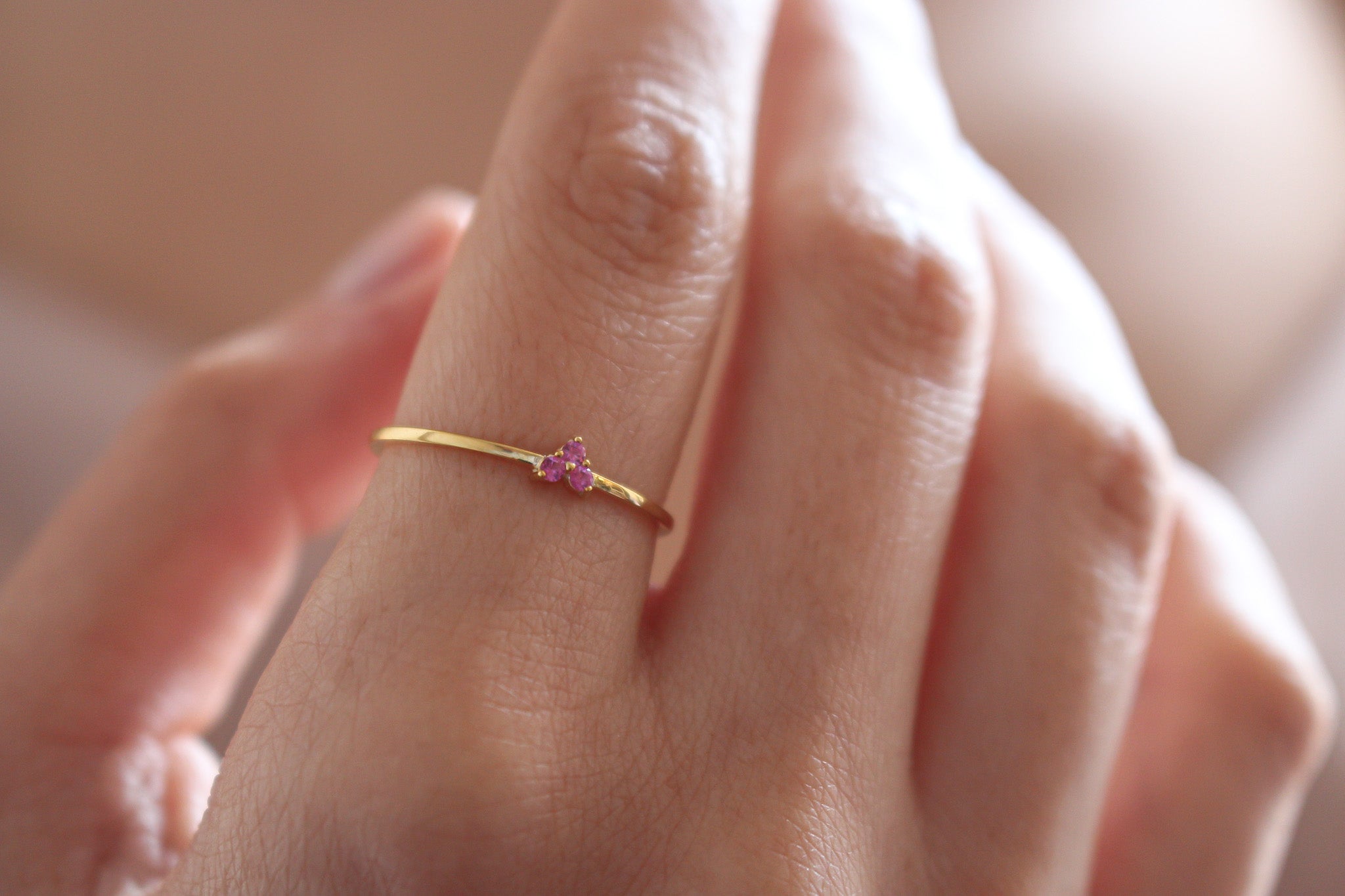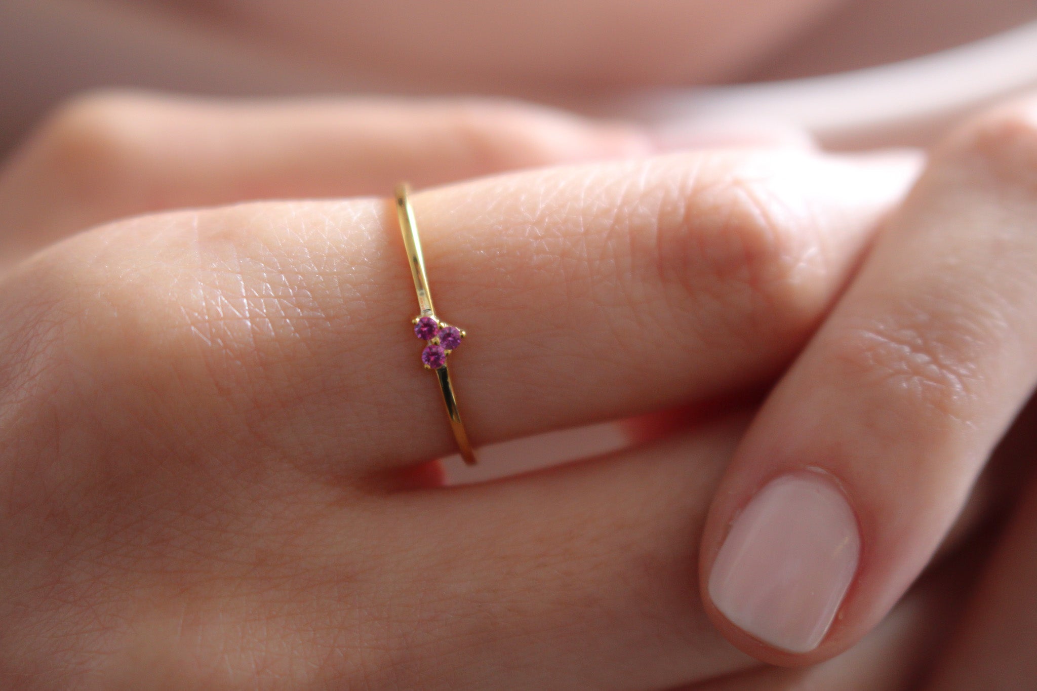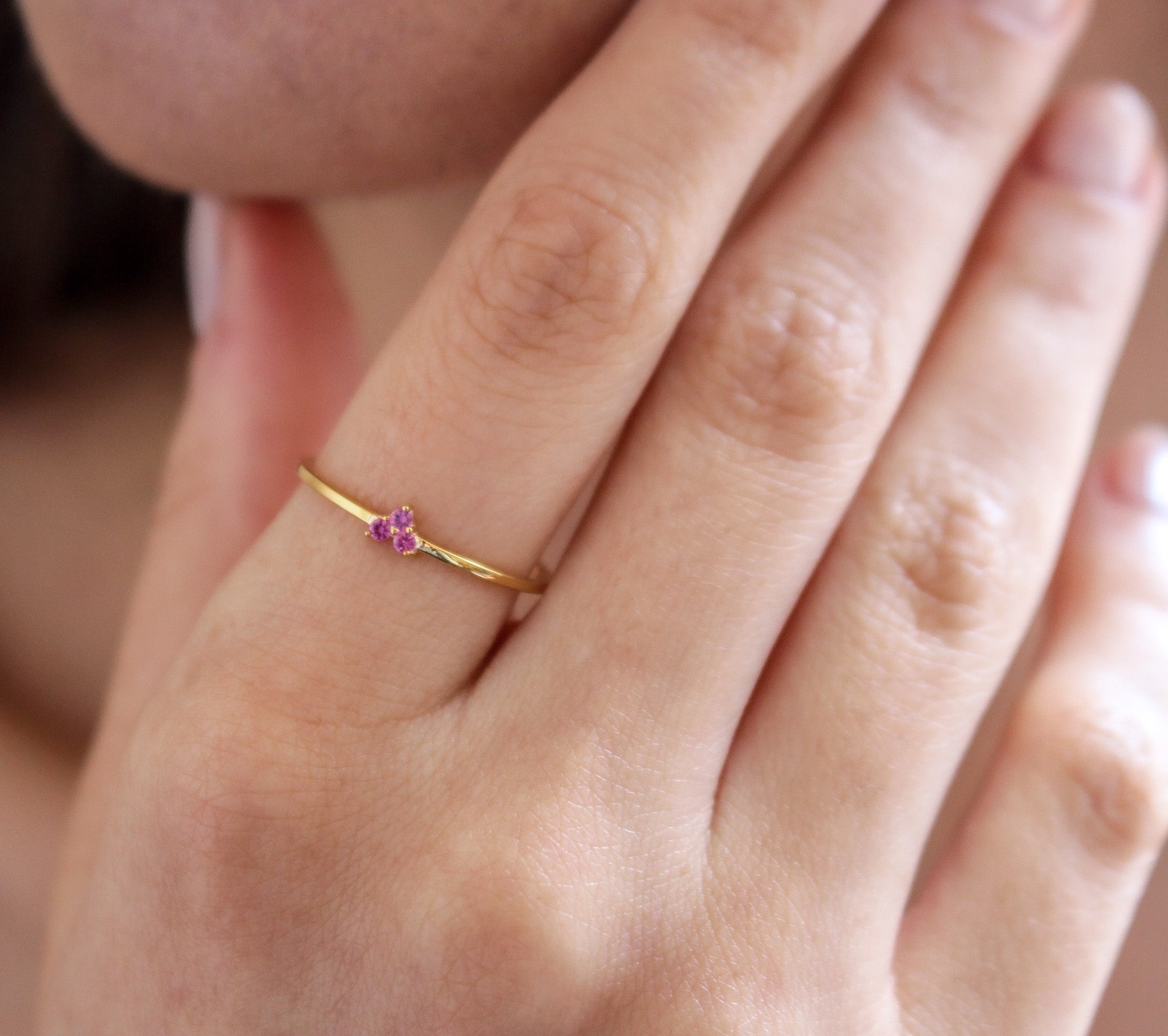 AMORE Dainty Pink Sapphire Heart Ring | 925K Sterling Silver or Solid Gold Promise Ring