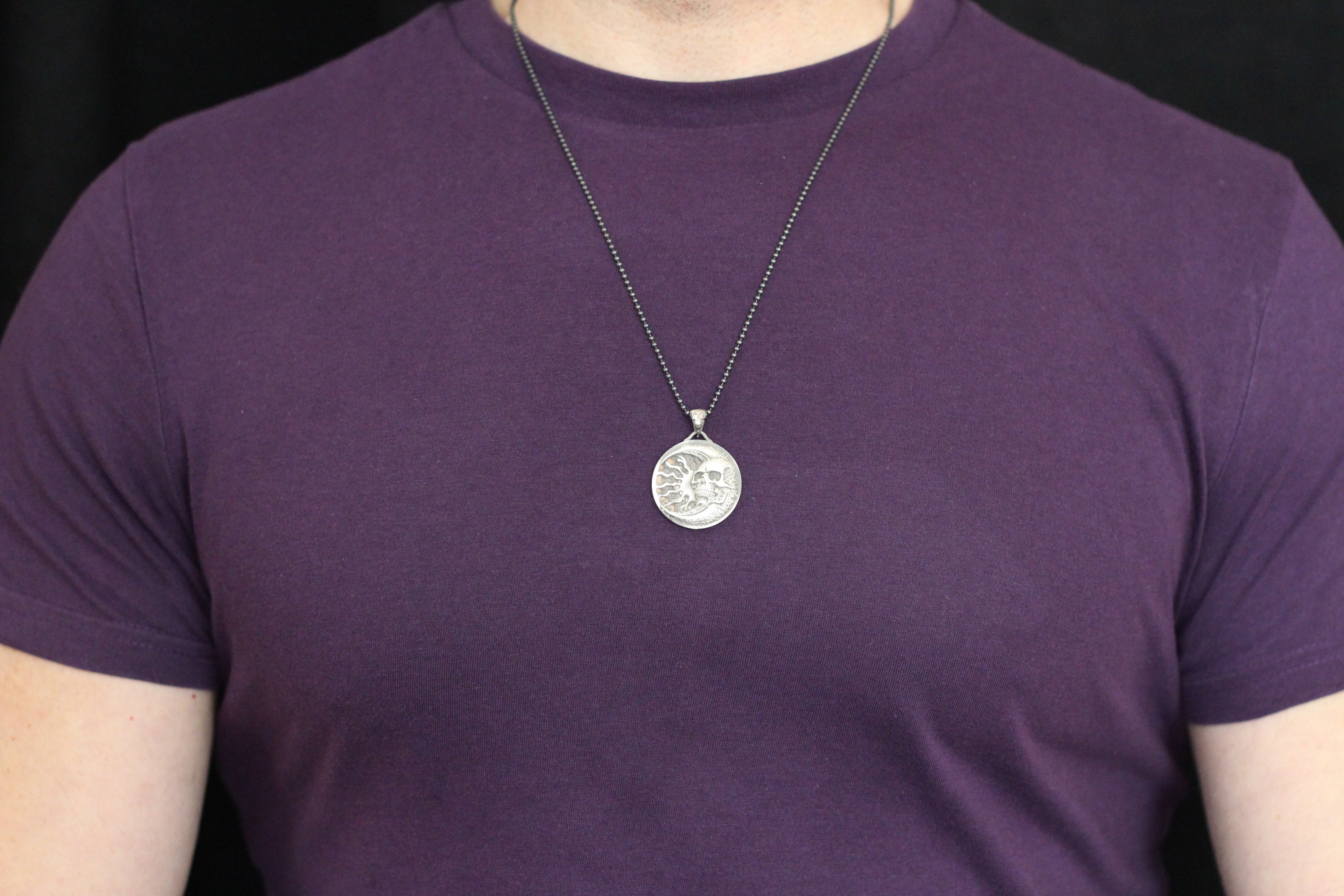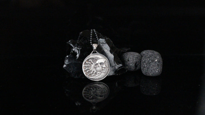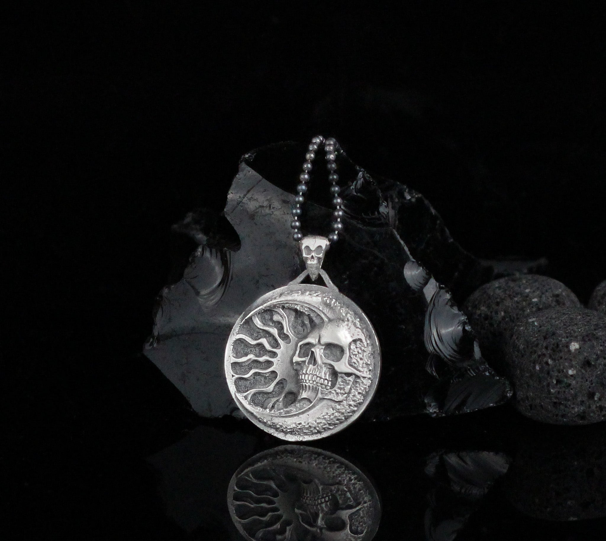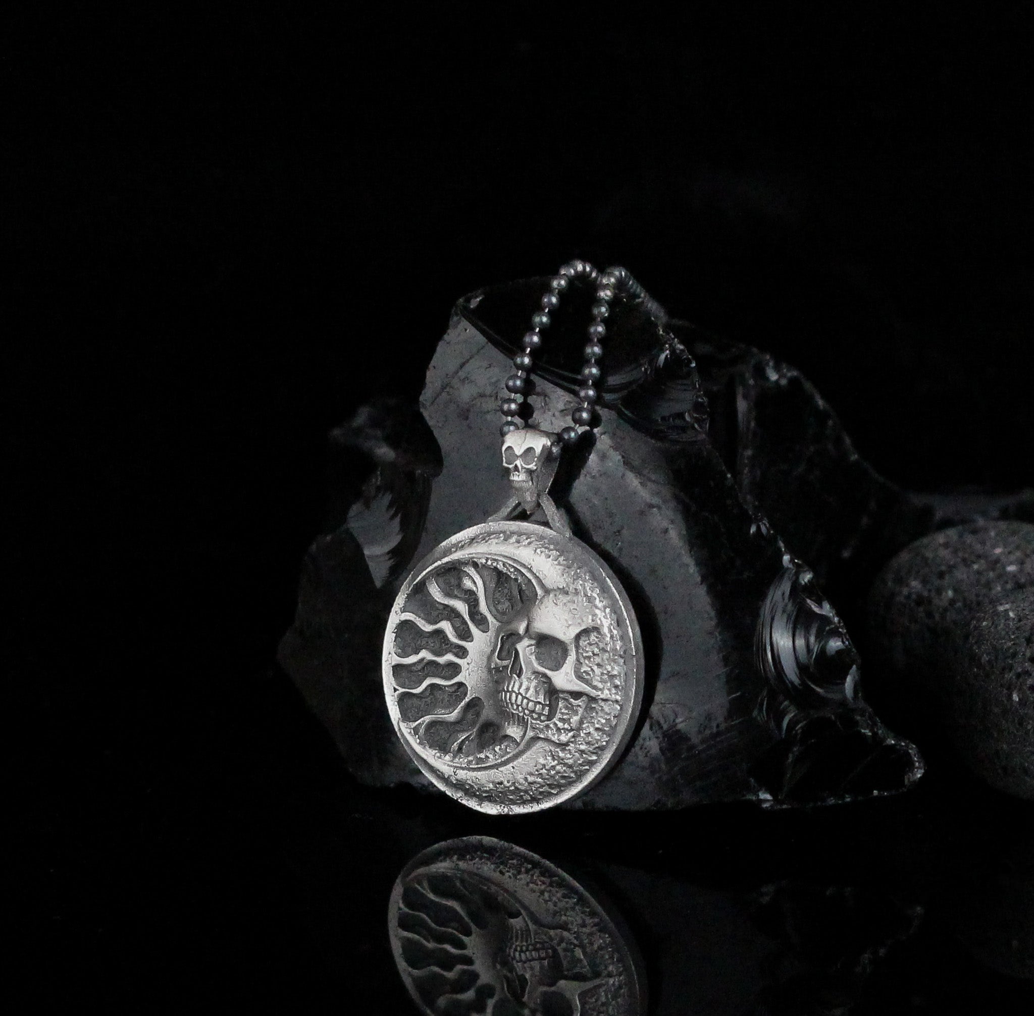 Make a bold statement with this intricately designed Sun and Skull Pendant Necklace, crafted from high-quality 925 sterling silver. This unique pendant features a striking fusion of the radiant sun and a detailed skull, symbolizing the eternal cycle of life and death. Its gothic-inspired design exudes strength, individuality, and artistic flair.