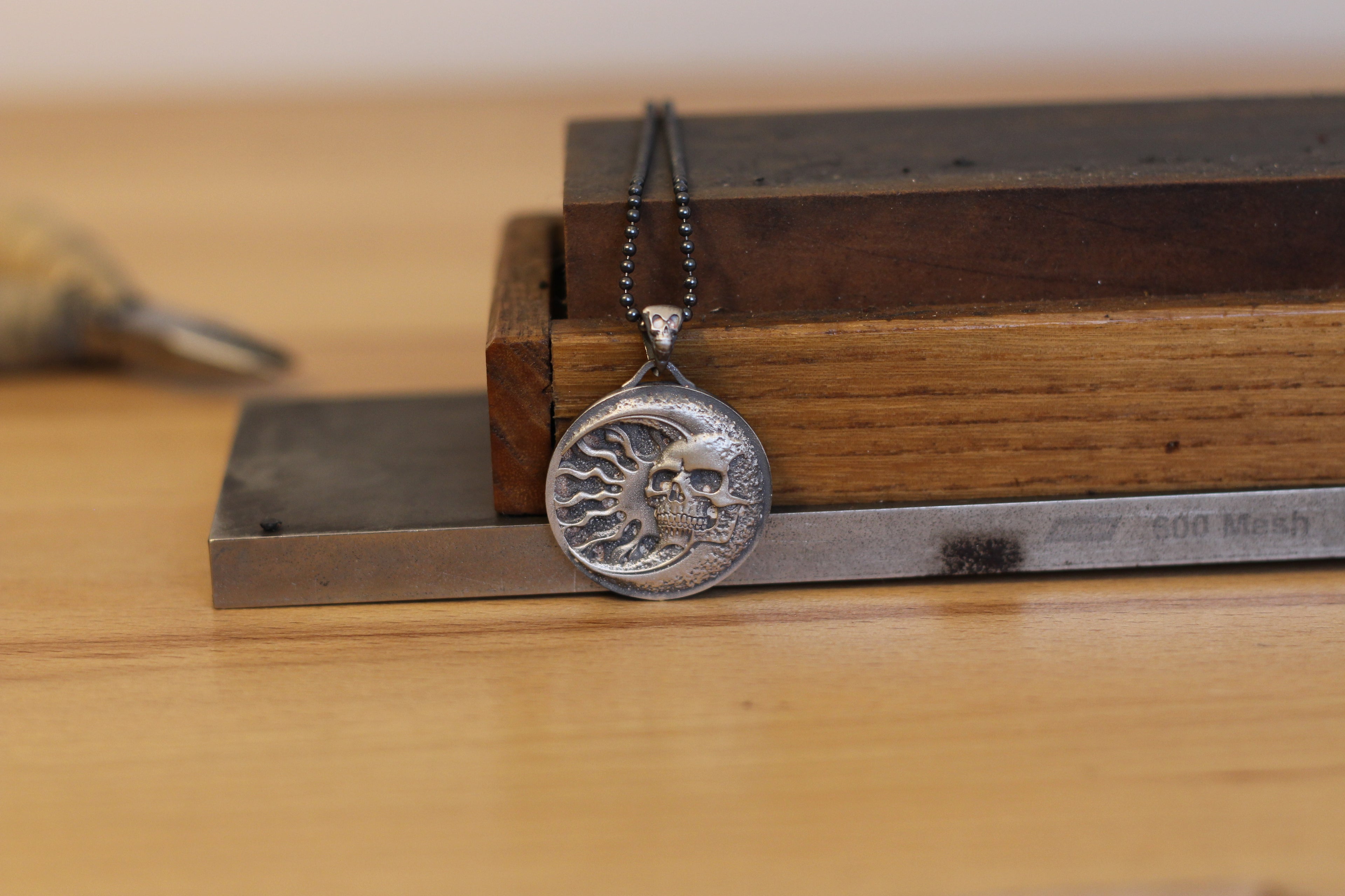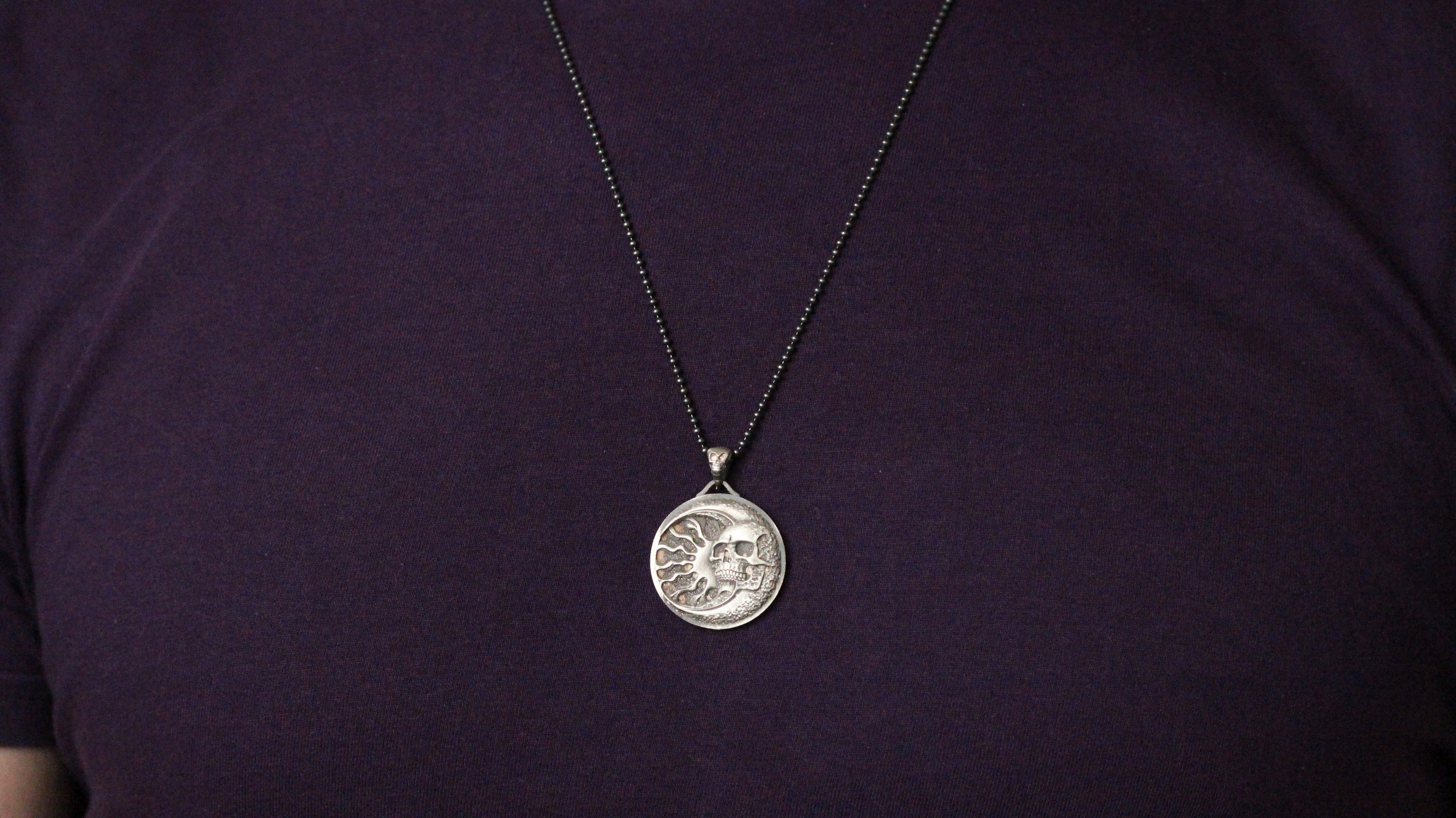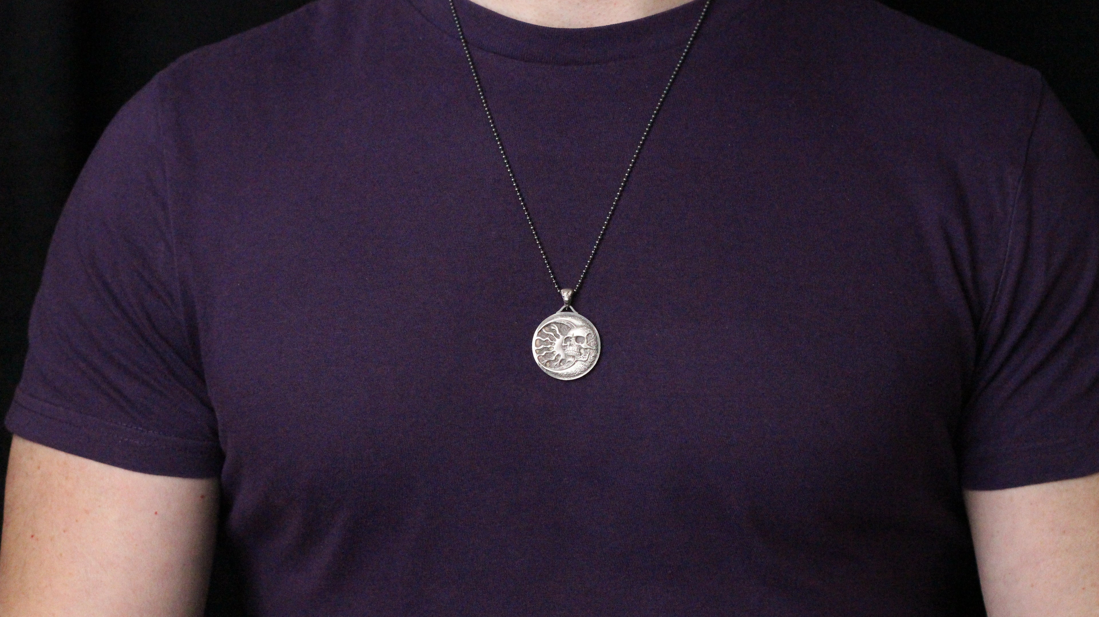 Sunburst Skull Pendant Necklace | 925 Sterling Silver Sun & Skull Medallion Necklace