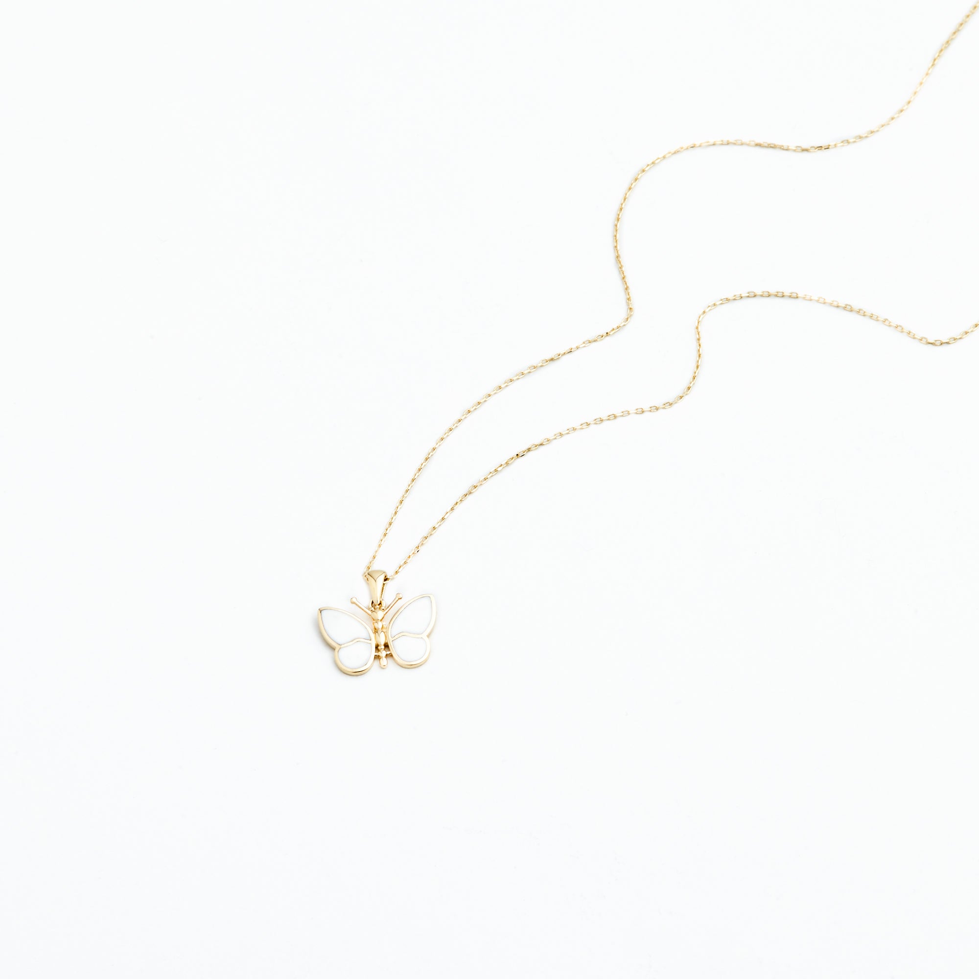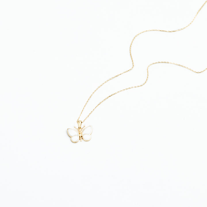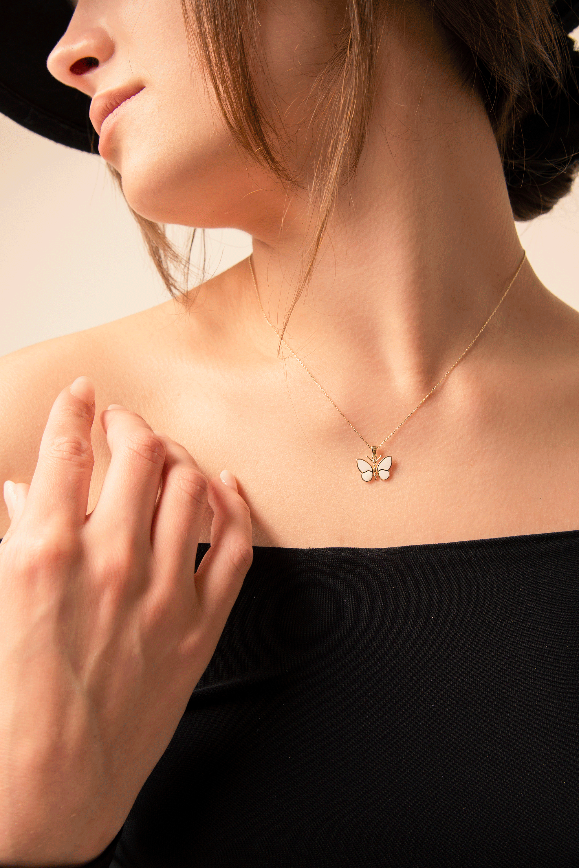 SARA White Butterfly Necklace | Elegant Enamel Pendant in Gold & Sterling Silver