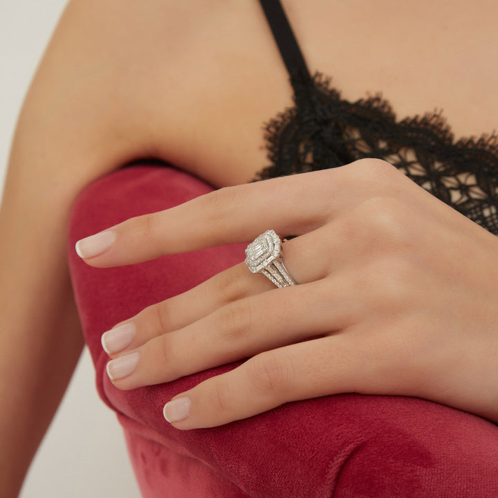 CAMILLE Luxury White Gold Diamond Engagement Ring | 8K or 14K Solid Gold Design