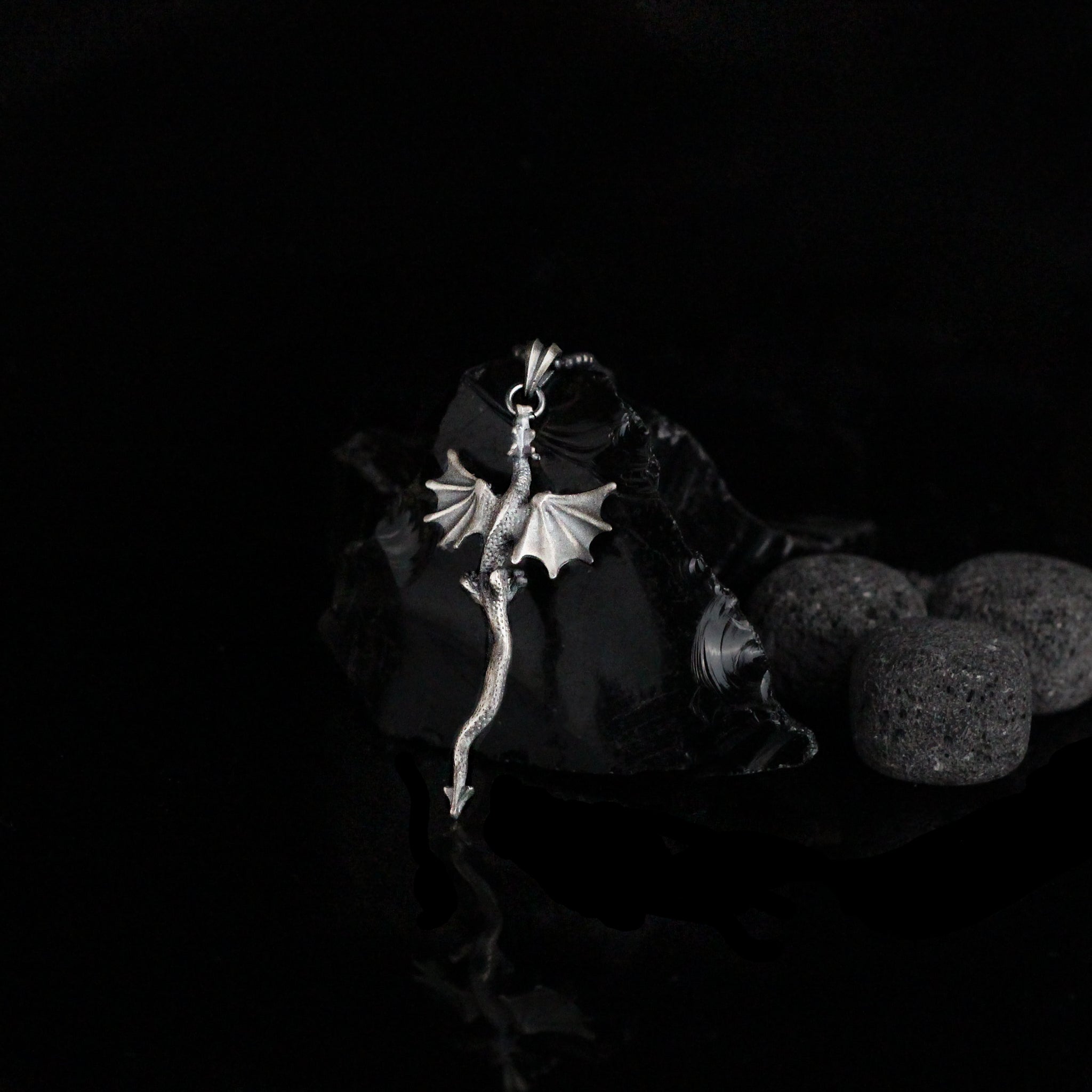 Unleash the power of myth and fantasy with this striking 925 sterling silver dragon necklace. The intricate details of the flying dragon create an aura of mystery and strength, making it a standout piece for those who love mythical or gothic-inspired jewelry. Perfectly designed for both men and women, this pendant is lightweight yet durable, adding an adventurous edge to any outfit. Whether you're a fan of dragons or seeking a gift for a fantasy enthusiast, this necklace is a perfect choice.