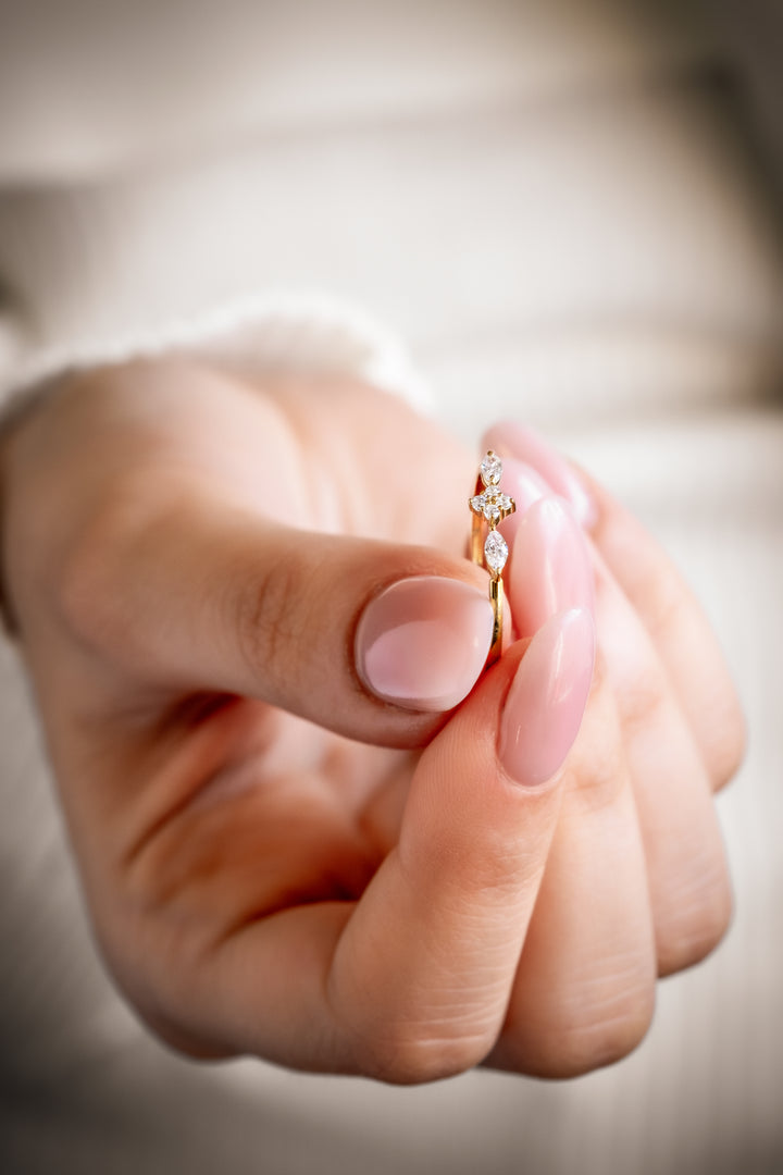 DAISY Refined Marquise Cut Gold Ring with Diamond or Zircon | 8K & 14K Solid Gold Cluster Wedding Ring for Women