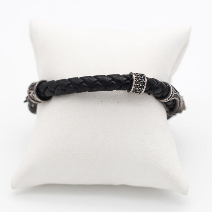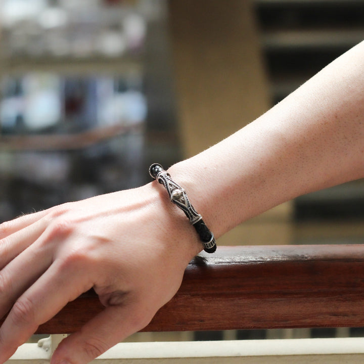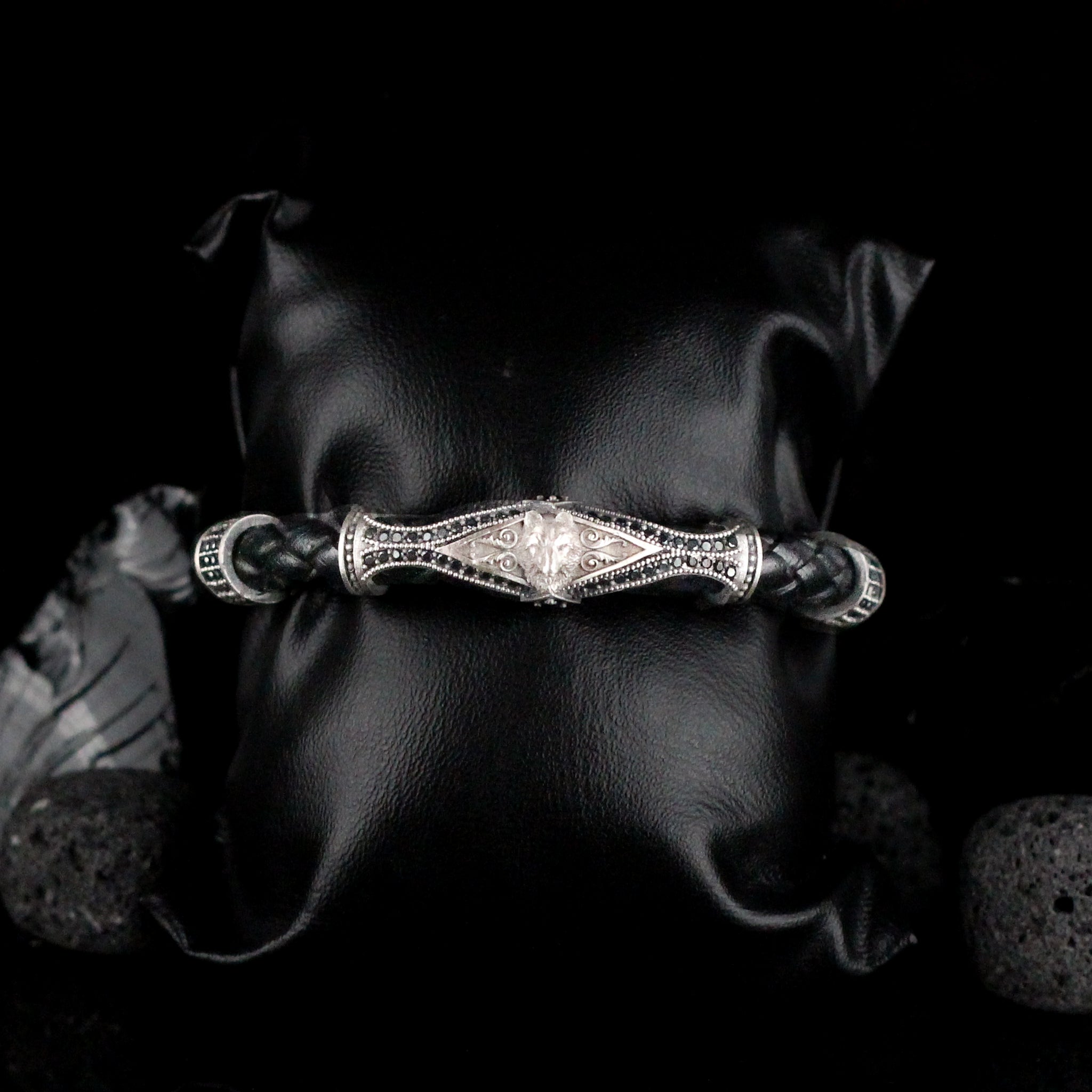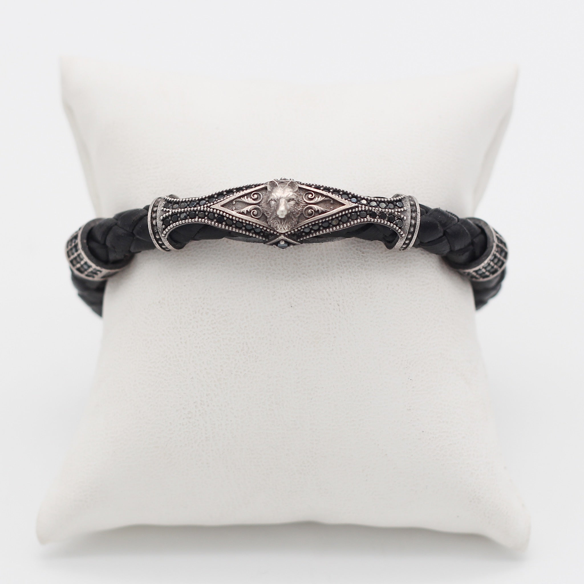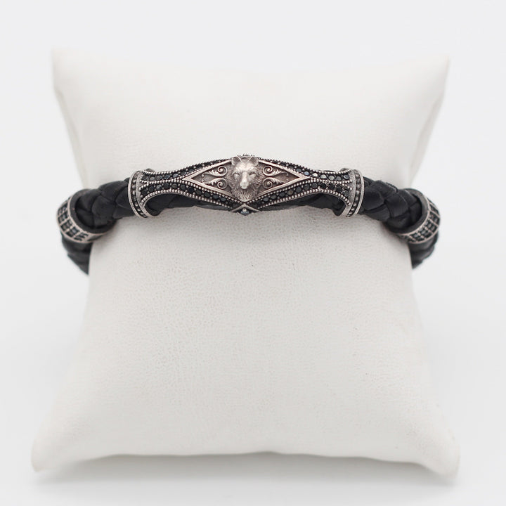 Leather Wolf Bracelet For Men, Silver Wolf Bracelet