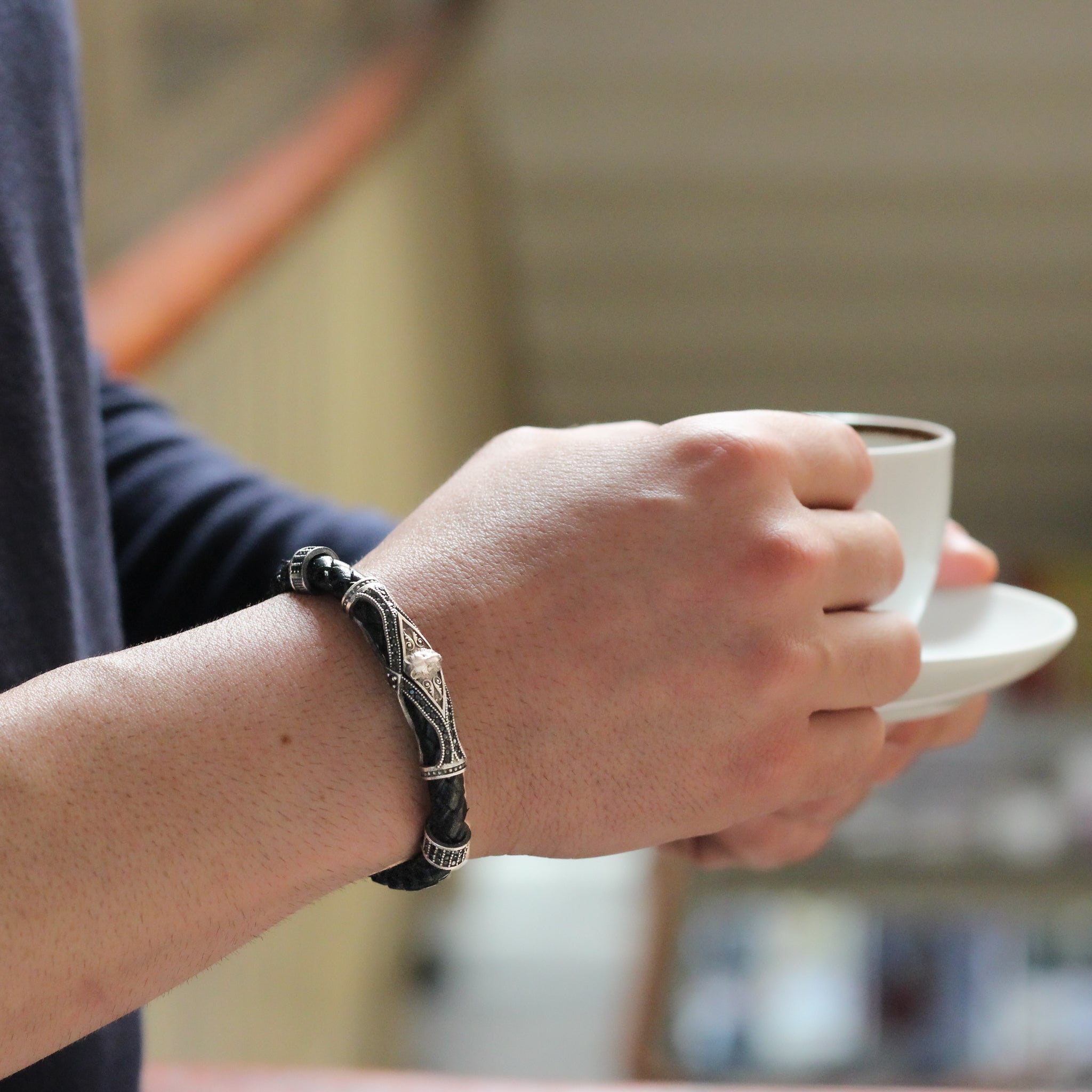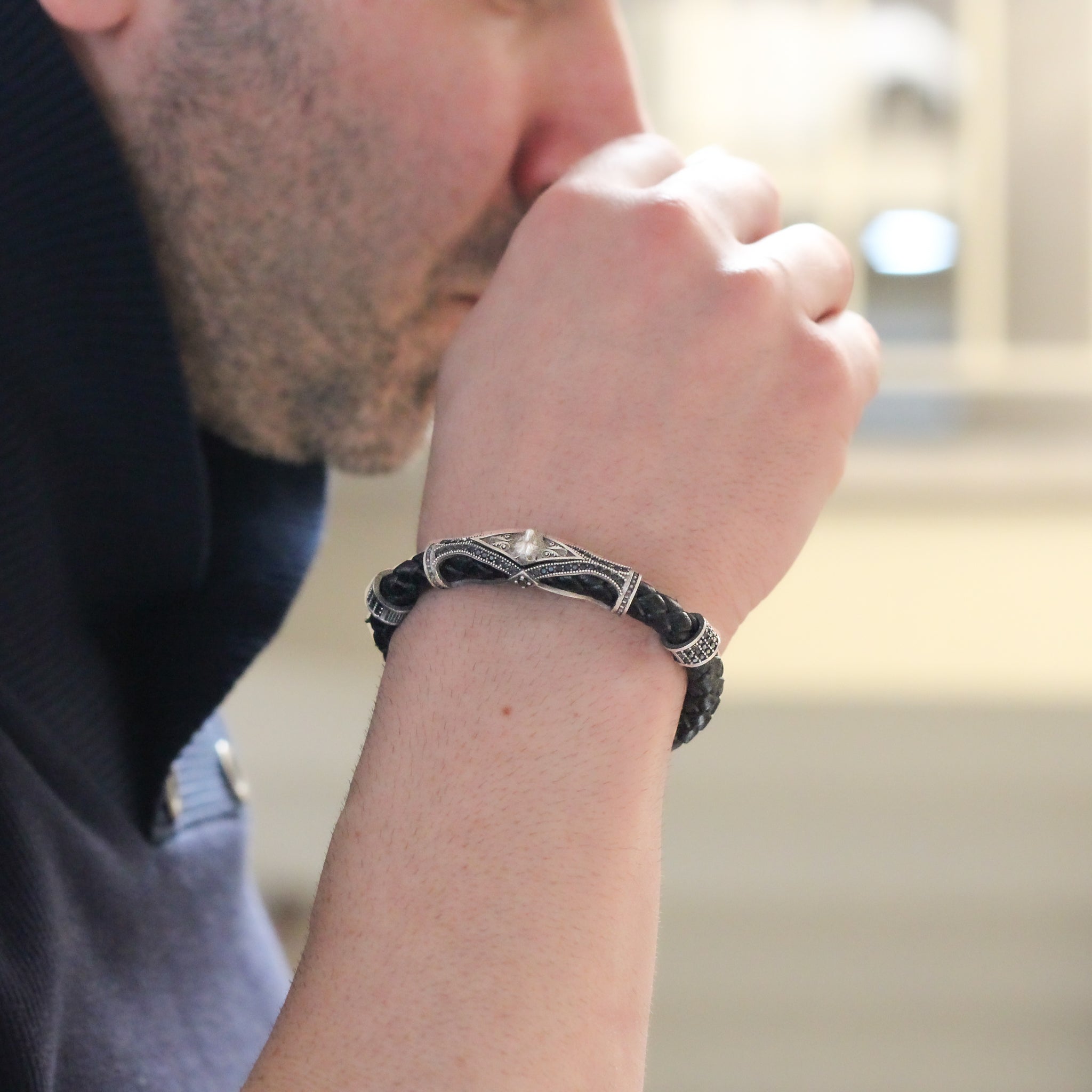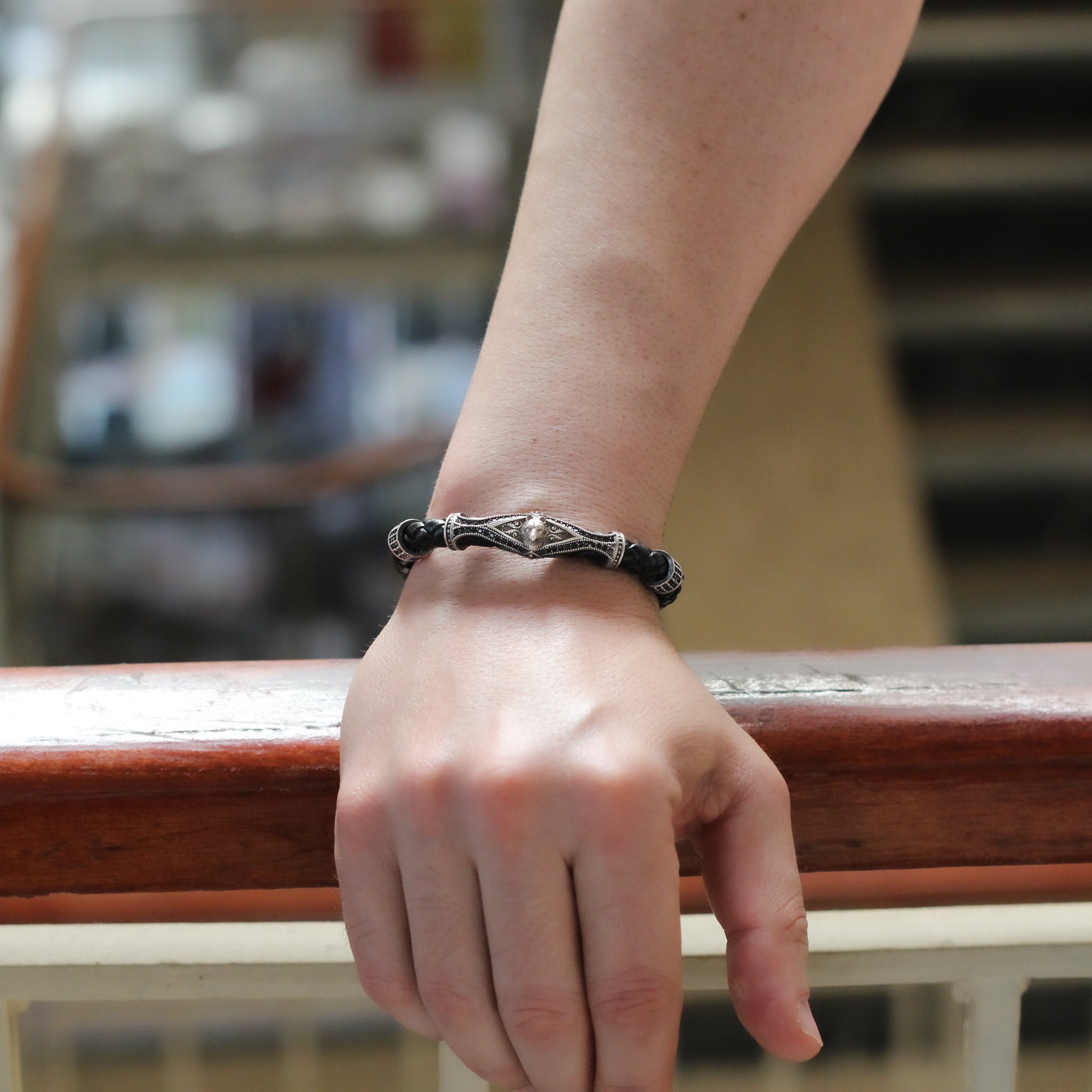 Leather Wolf Bracelet For Men, Silver Wolf Bracelet