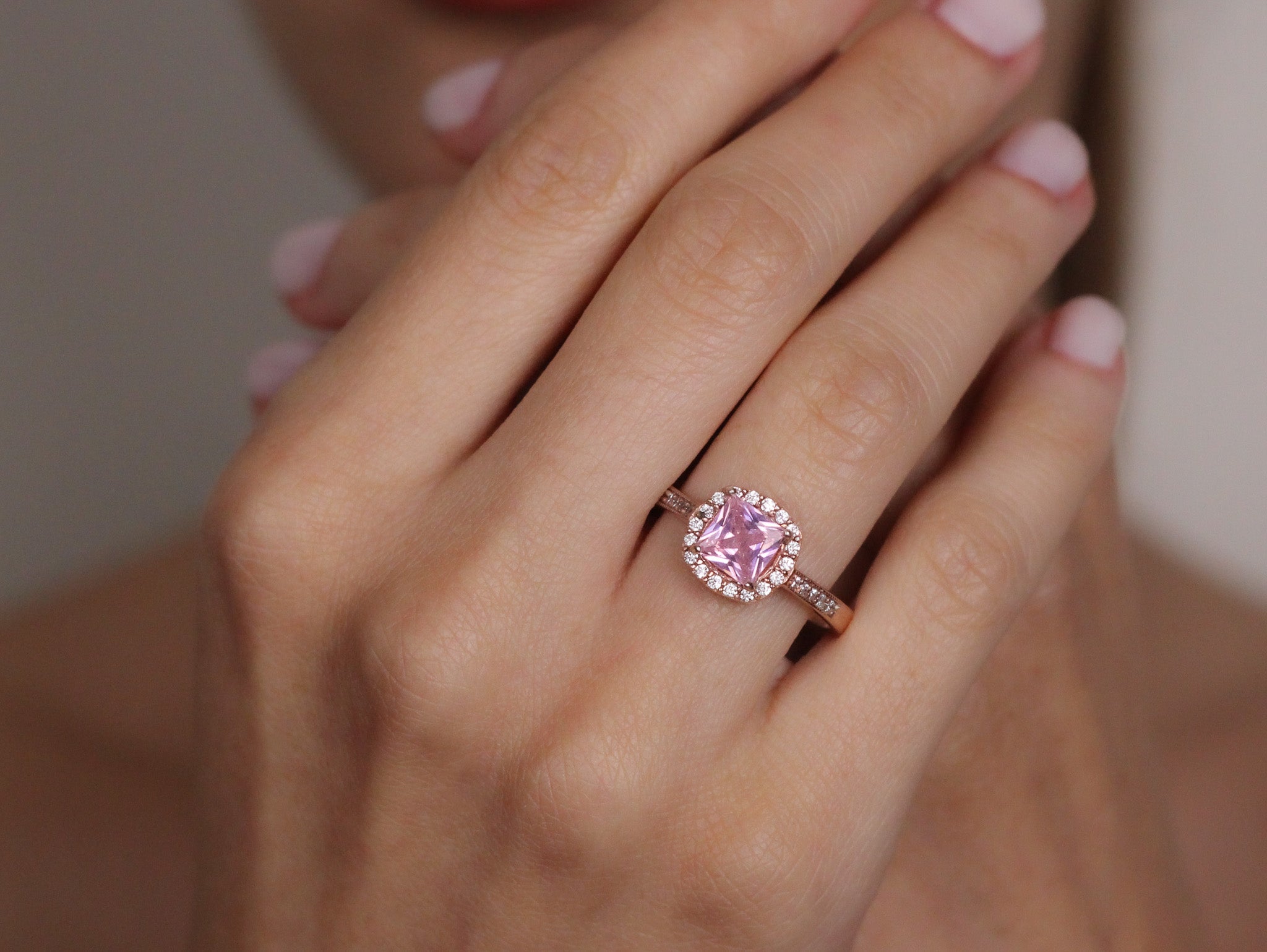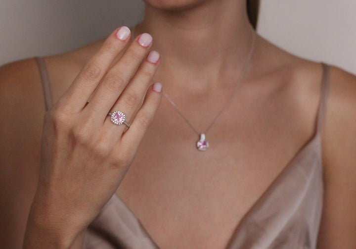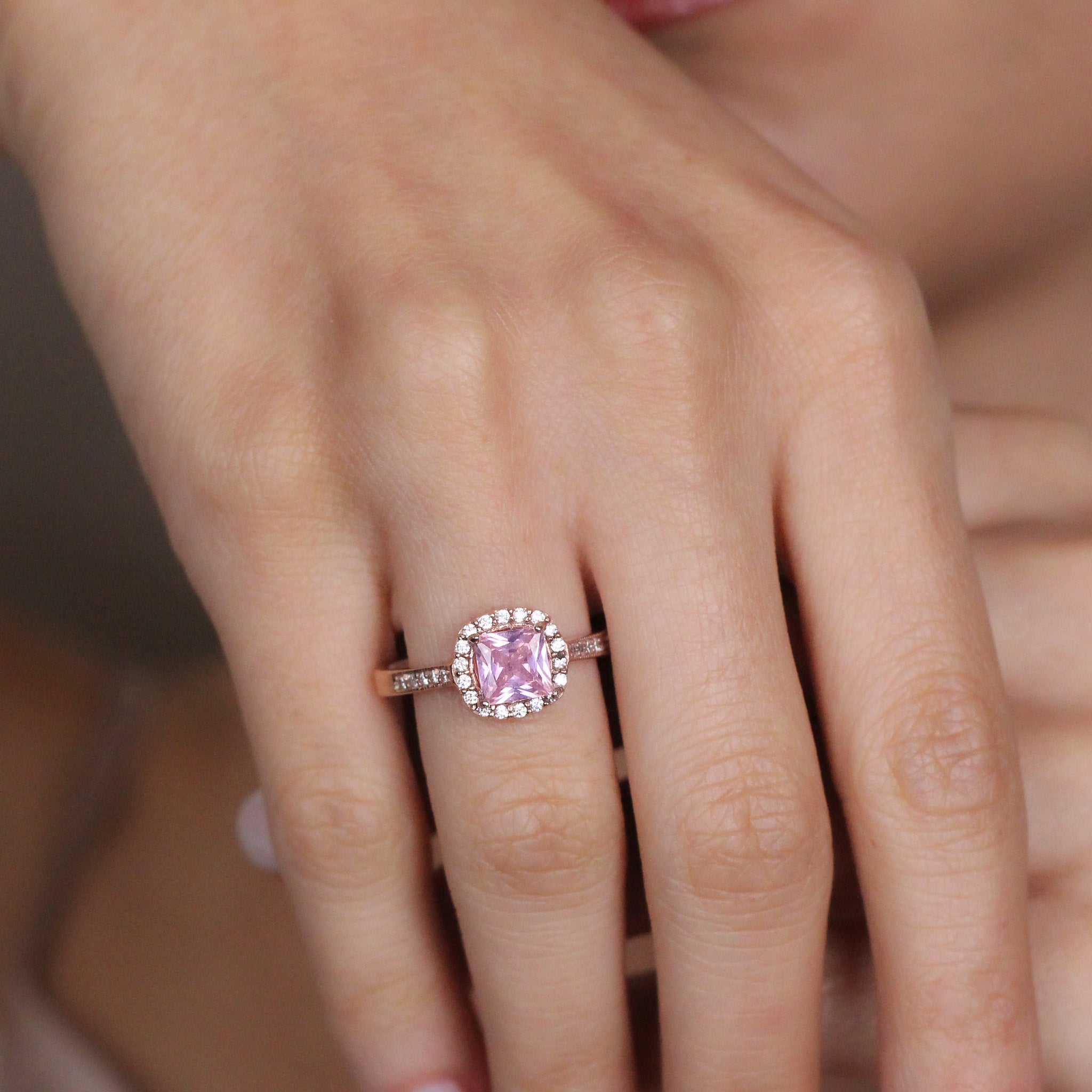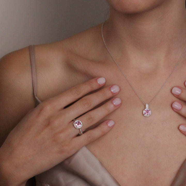 Pink Sapphire Romantic Promise Ring | Solid Silver & Gold Princess Cut Engagement Ring