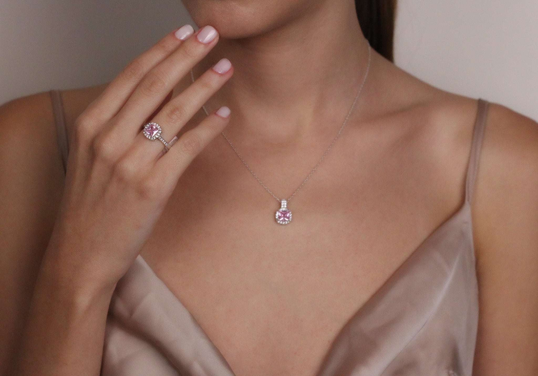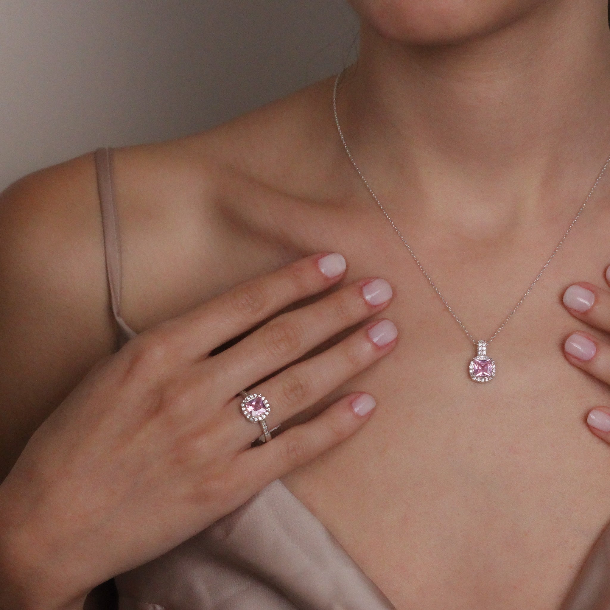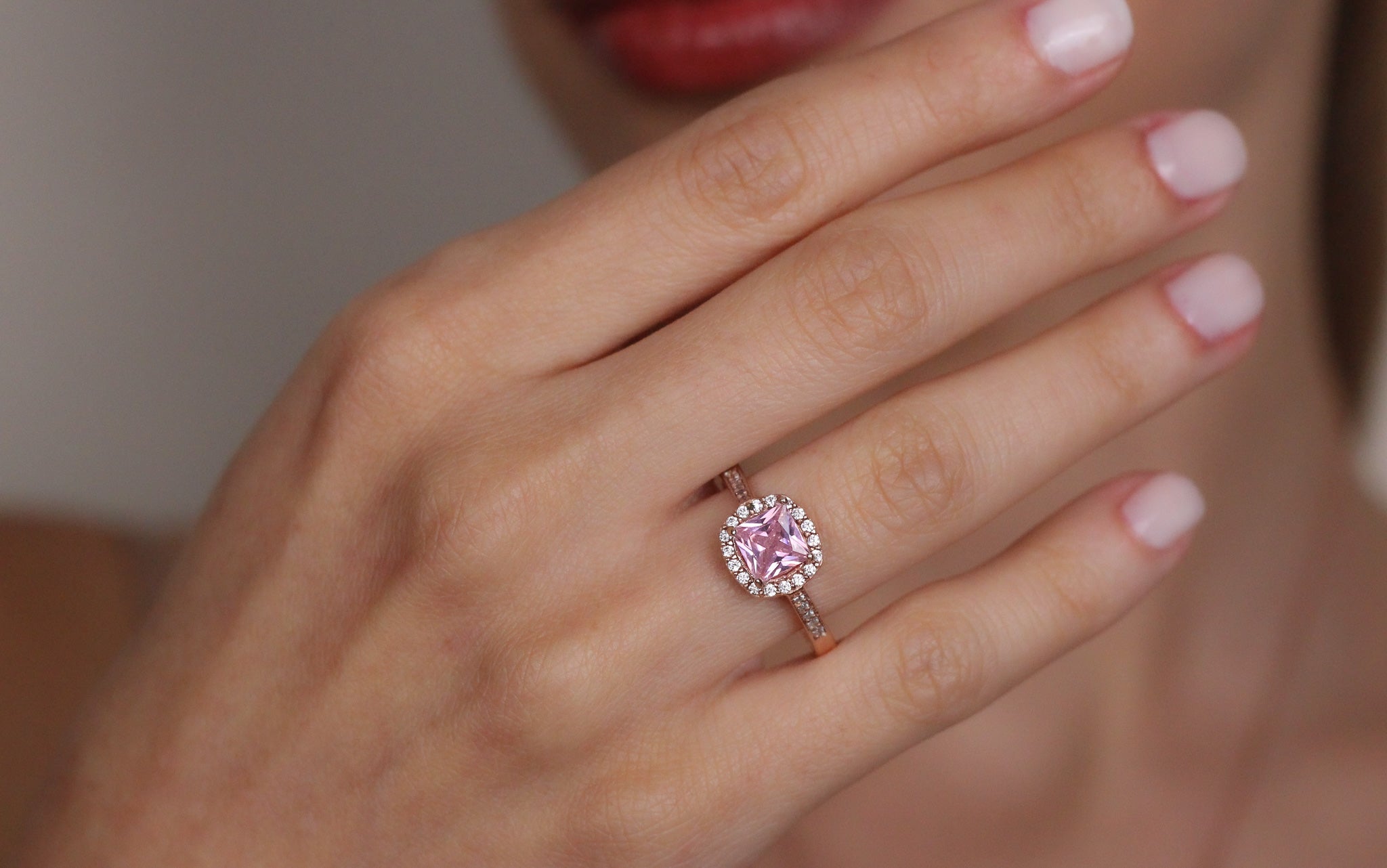 Pink Sapphire Romantic Promise Ring | Solid Silver & Gold Princess Cut Engagement Ring