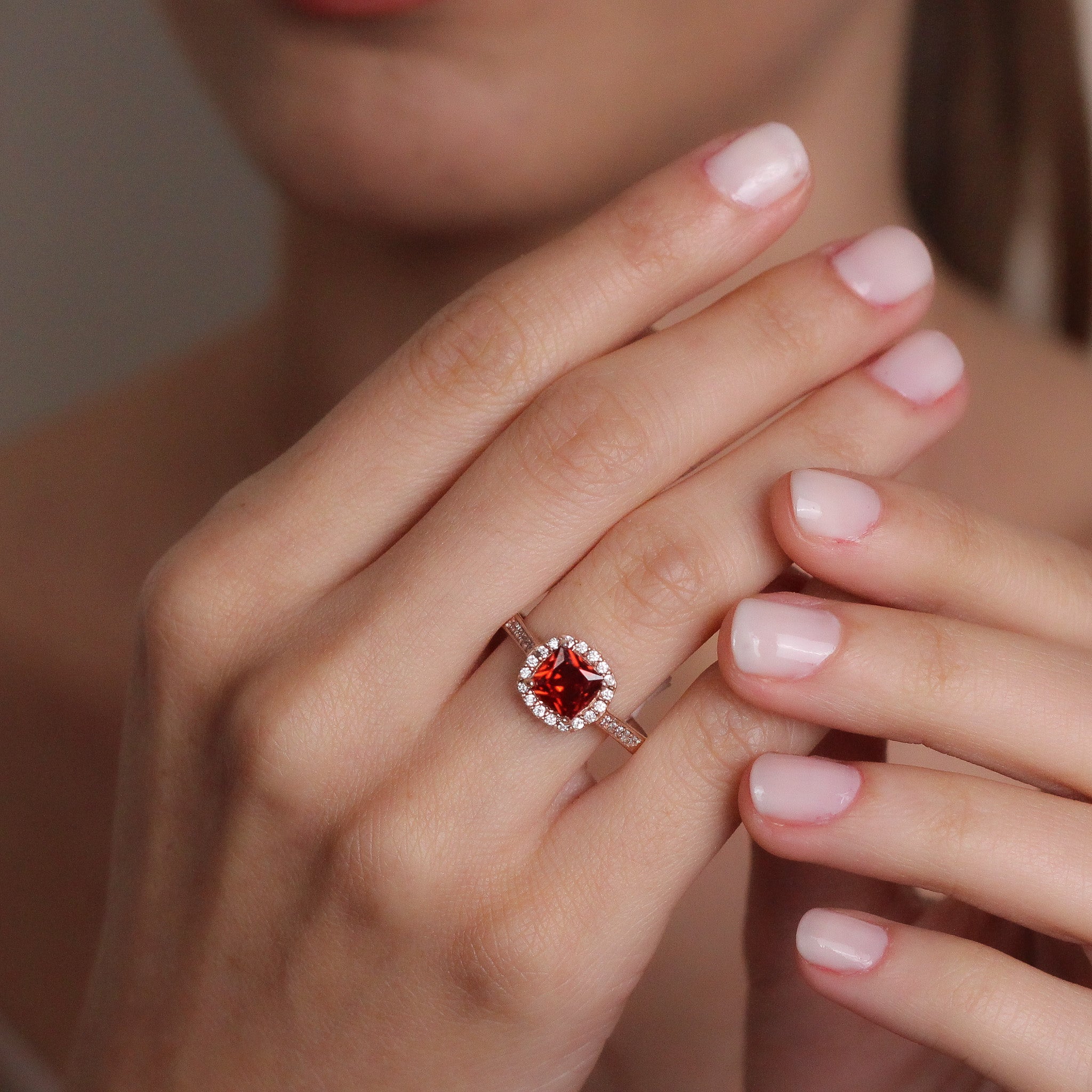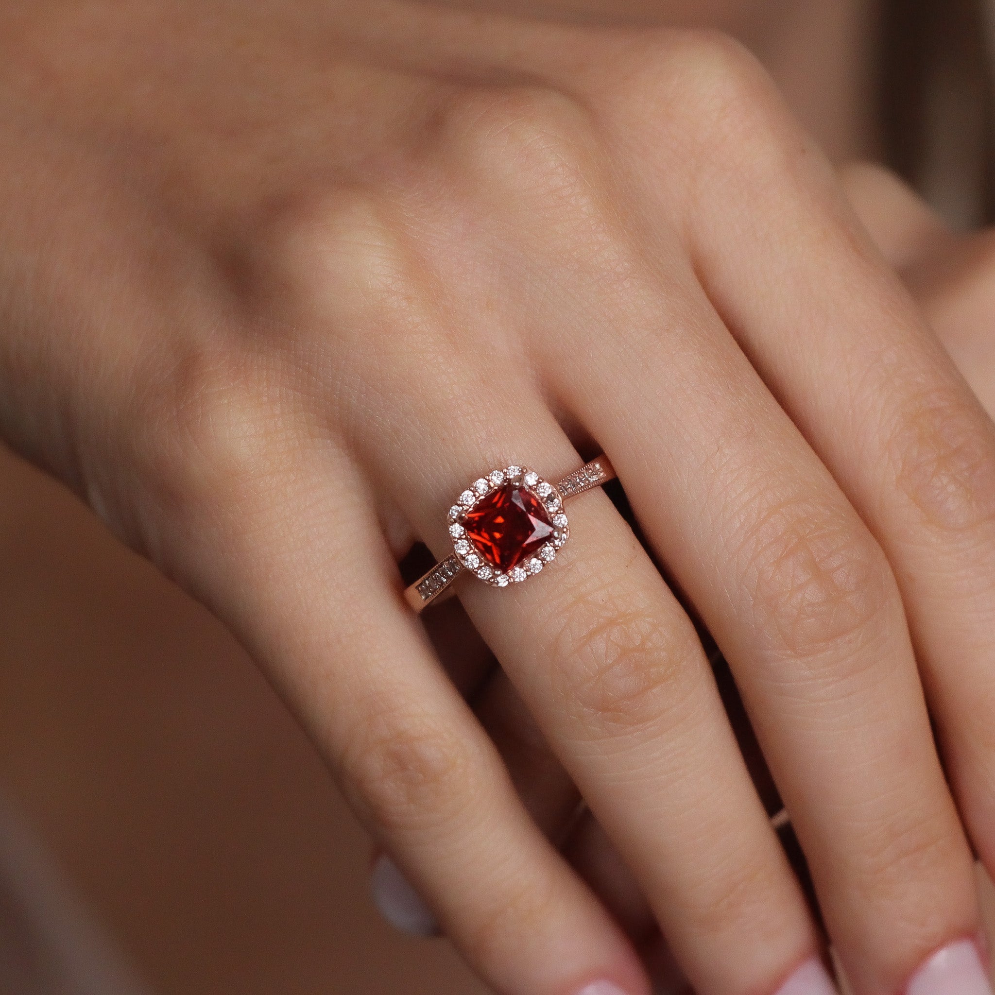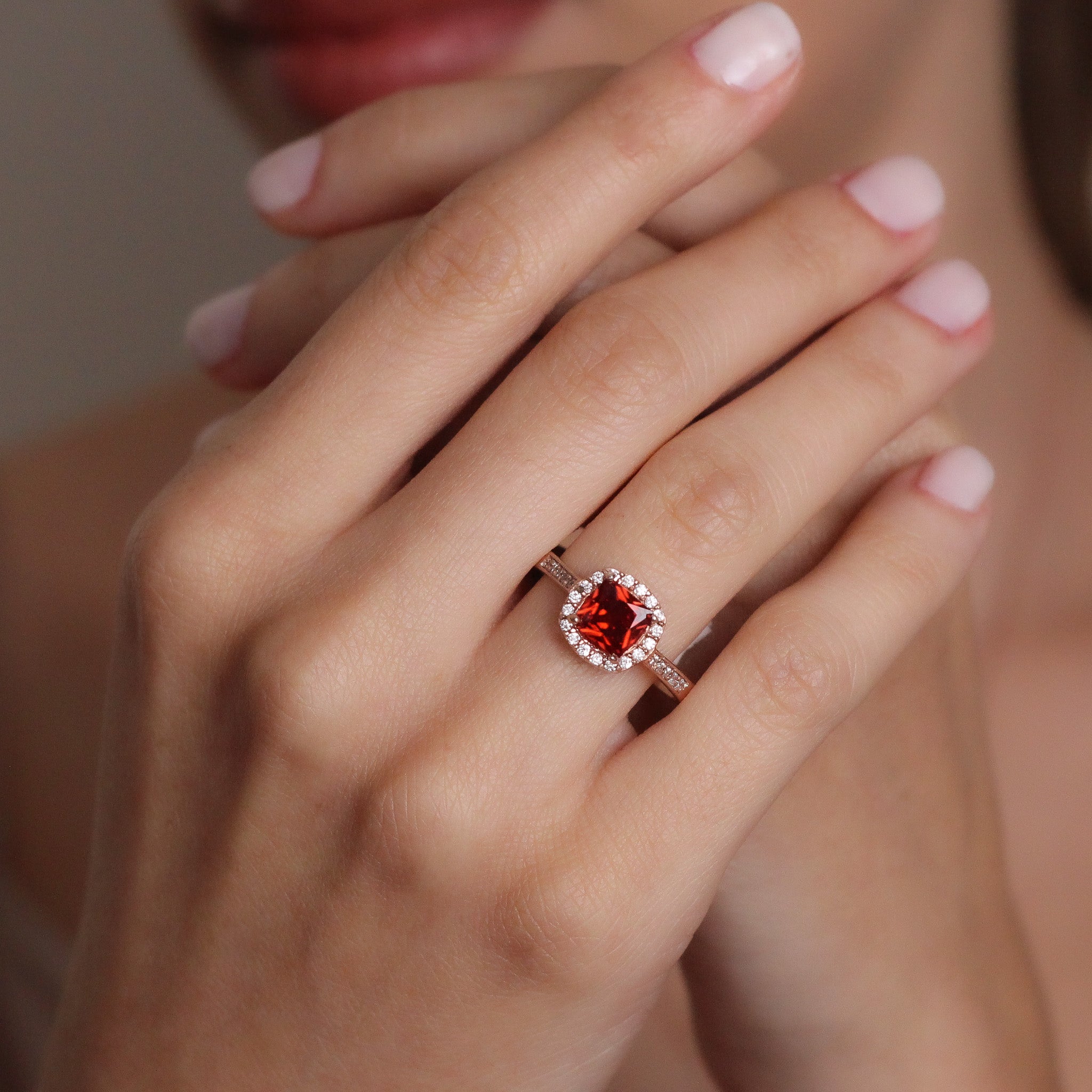 July Birthstone Ruby Promise Ring | Solid Silver & Gold Princess Cut Ruby Engagement Ring