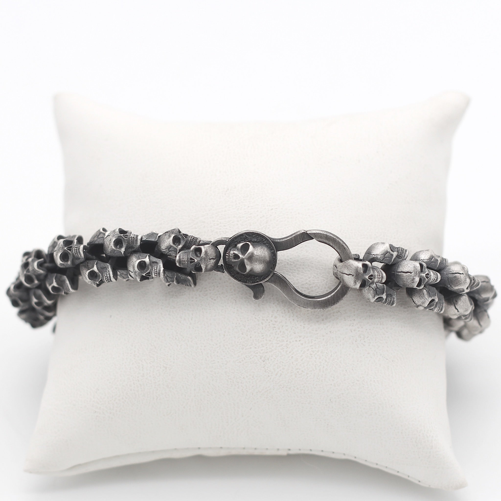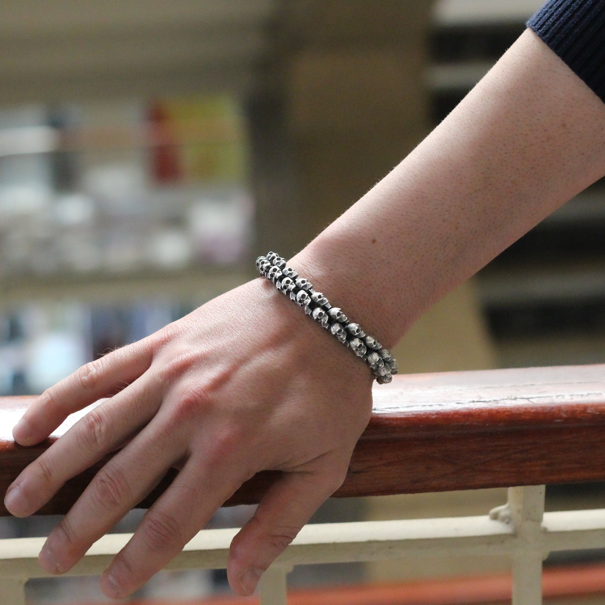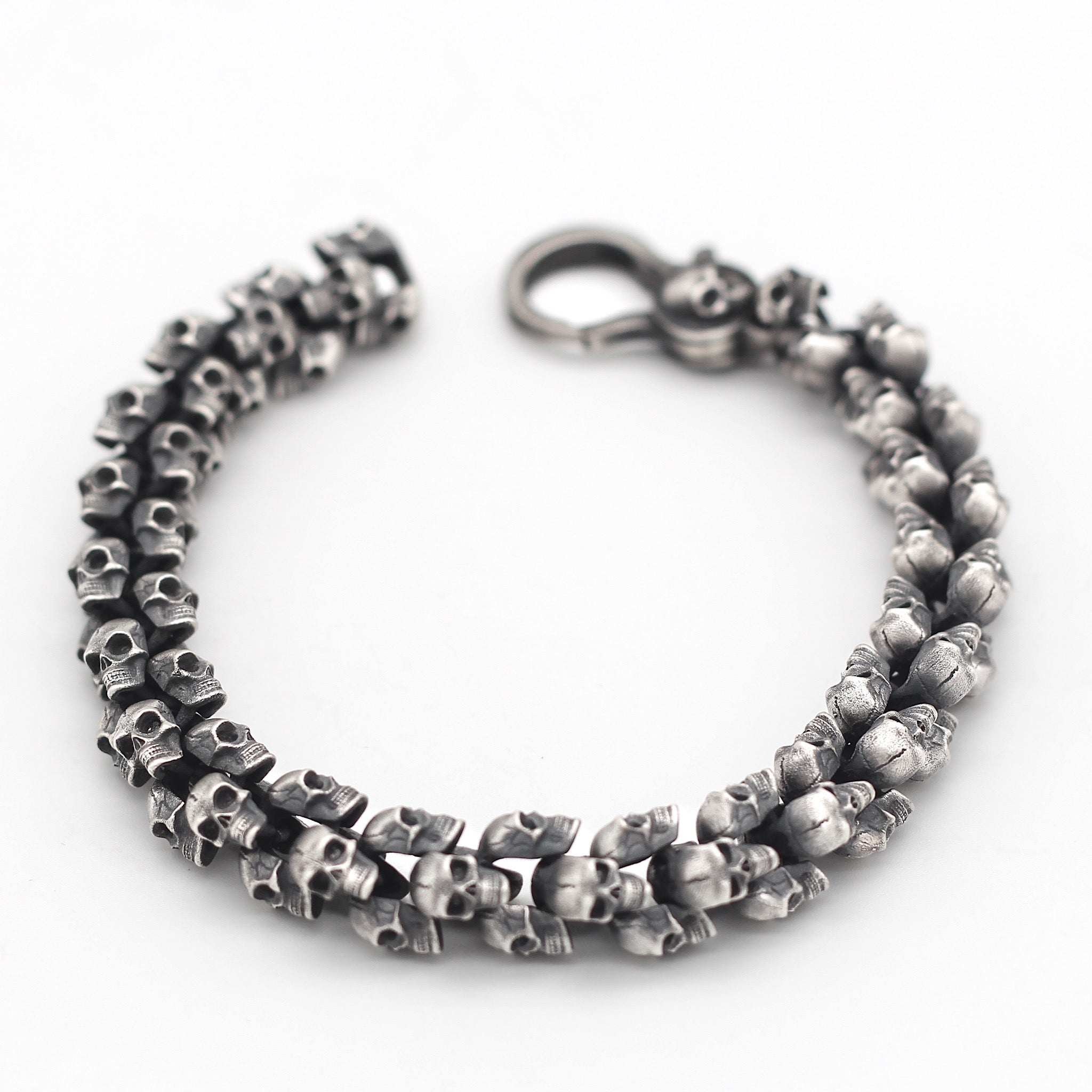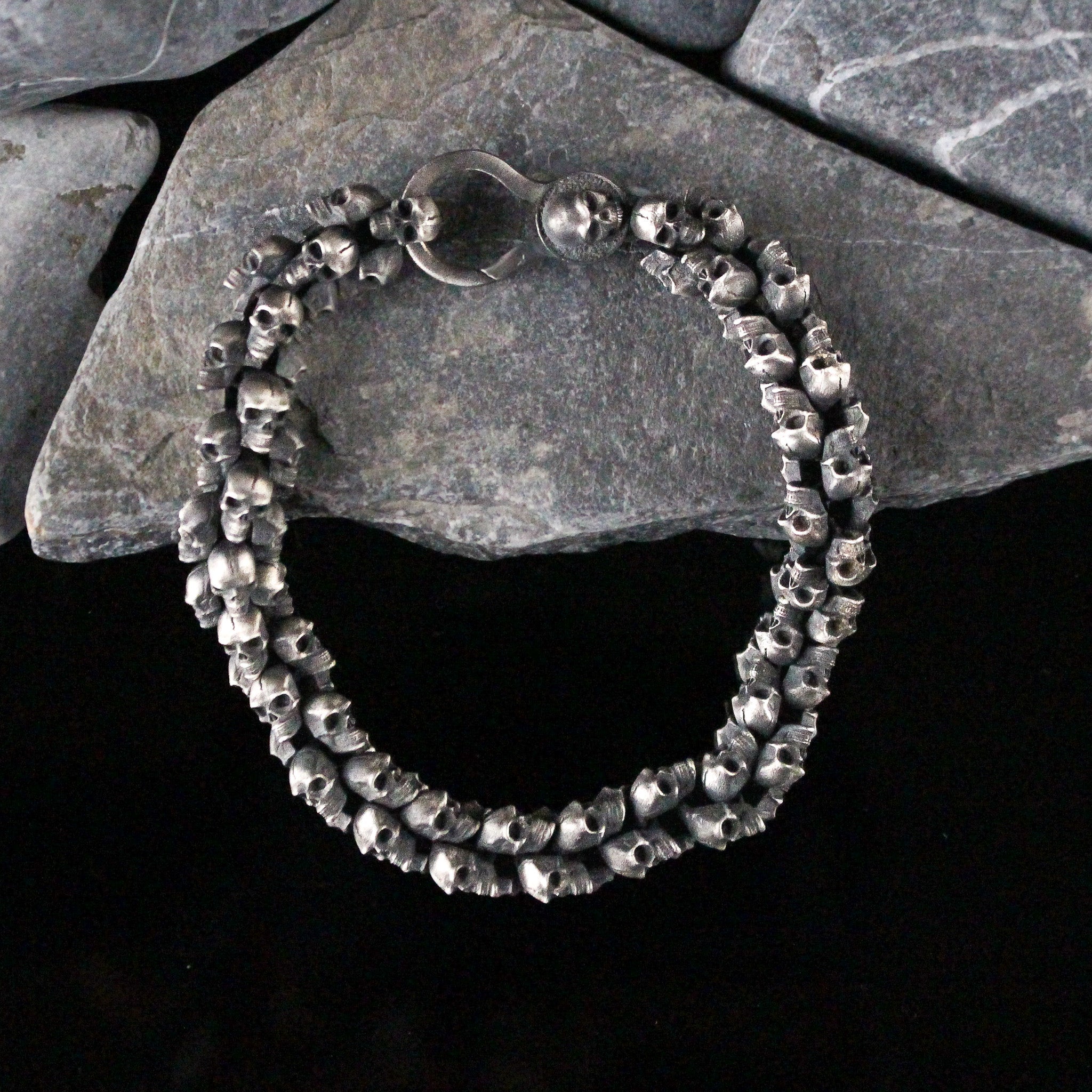 Solid Silver Skull Bracelet, Mens Skull Jewelry