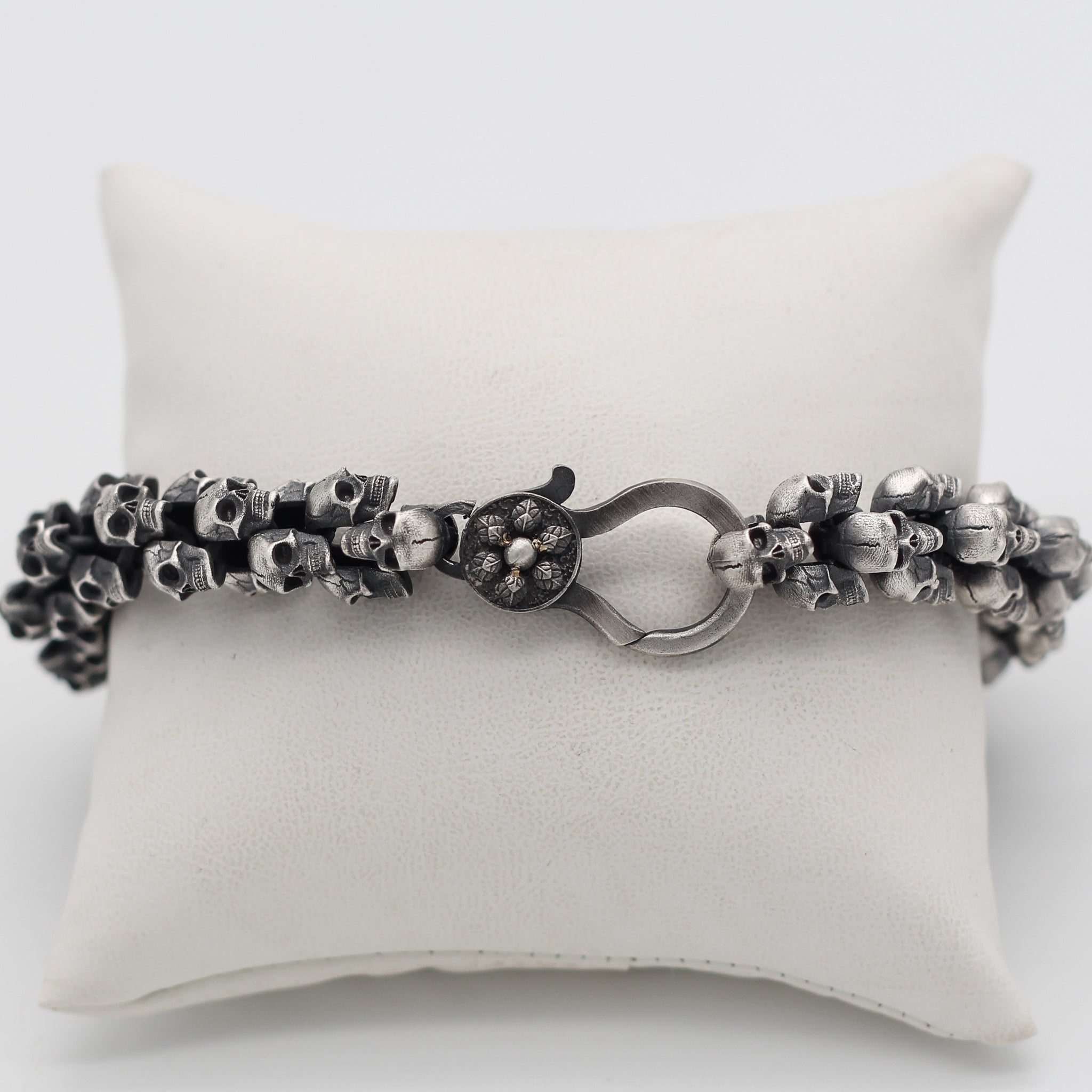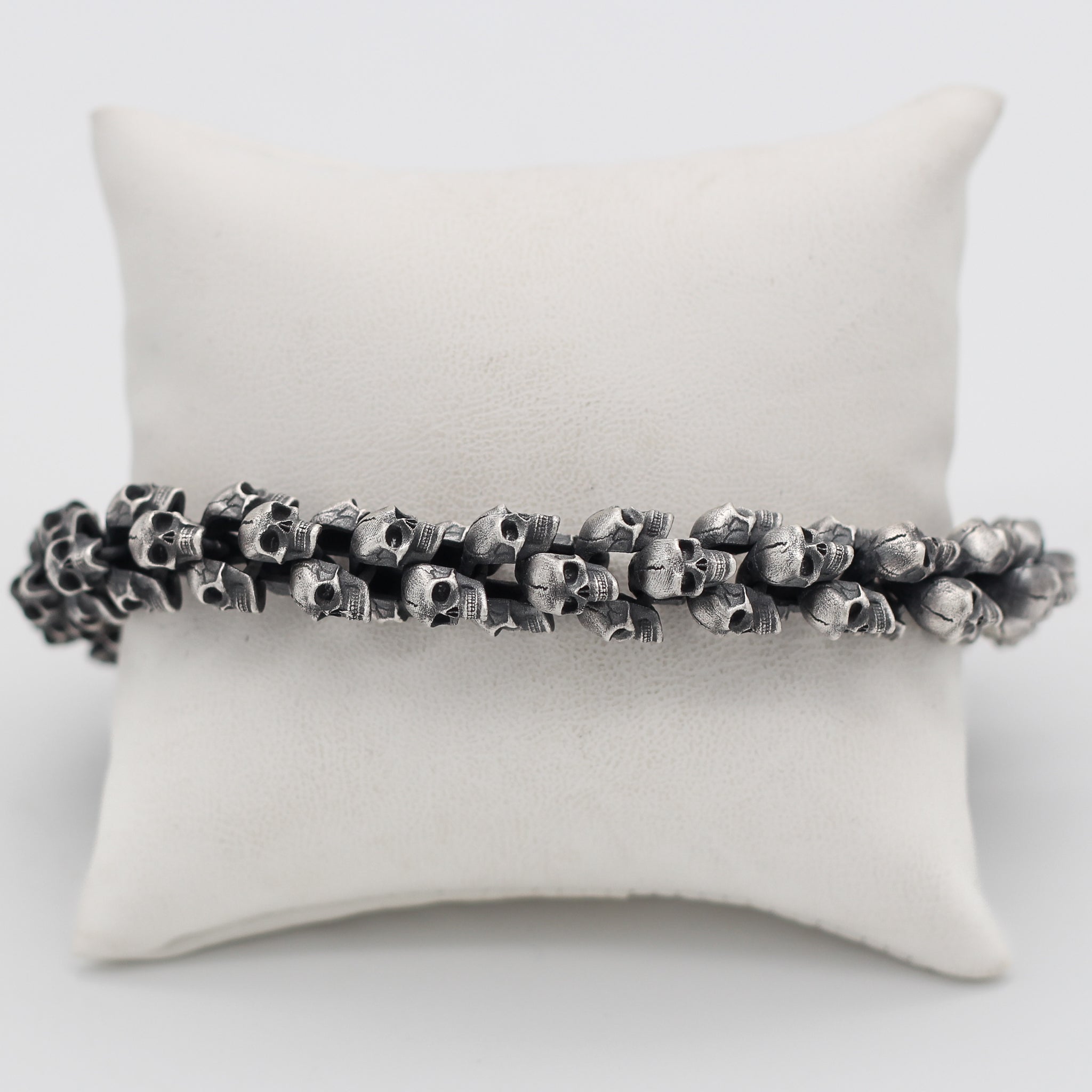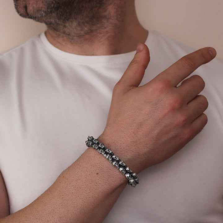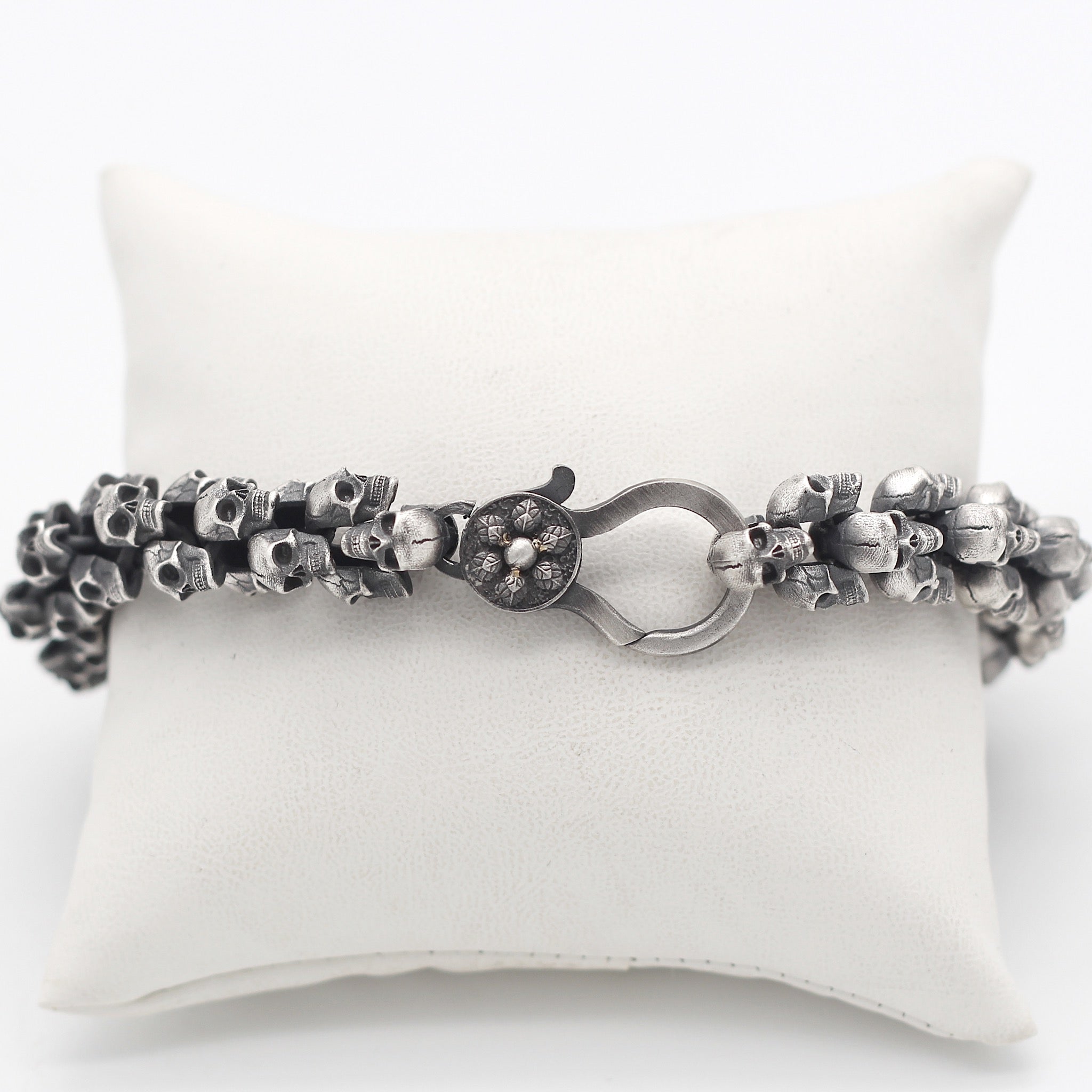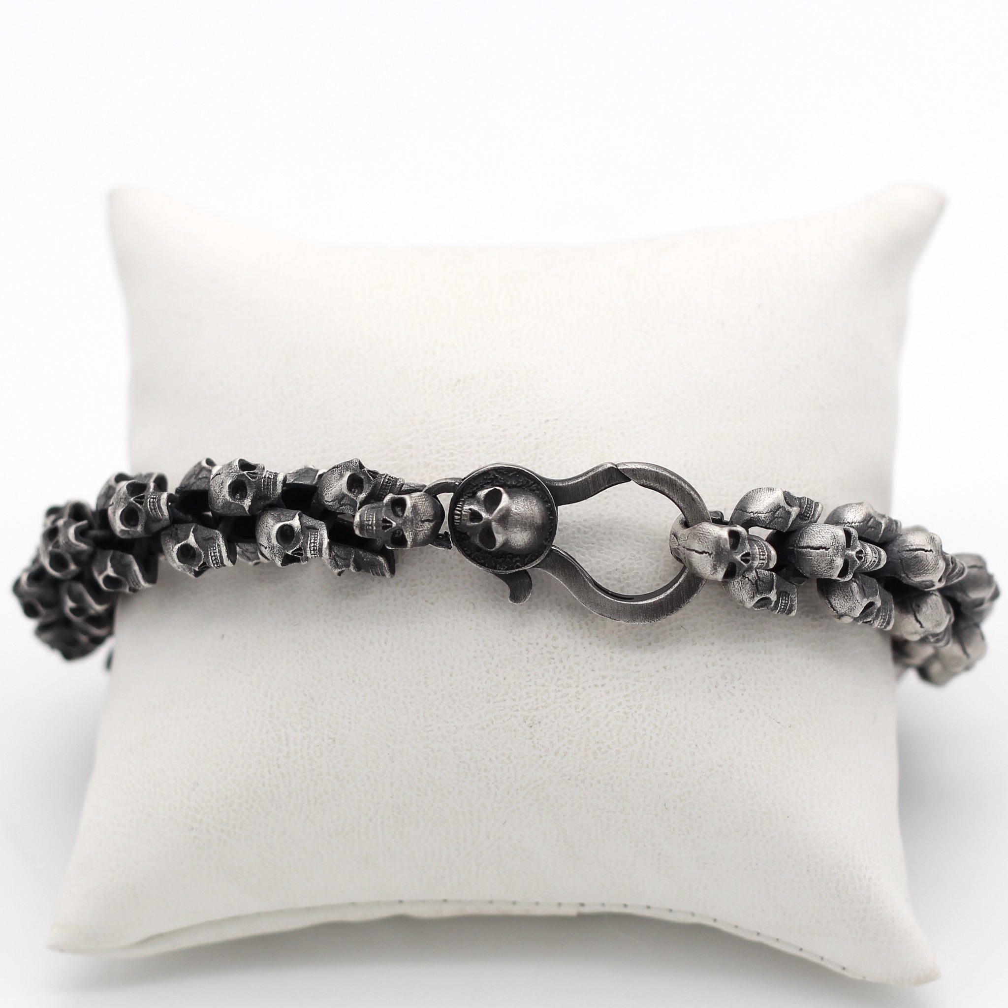 Solid Silver Skull Bracelet, Mens Skull Jewelry