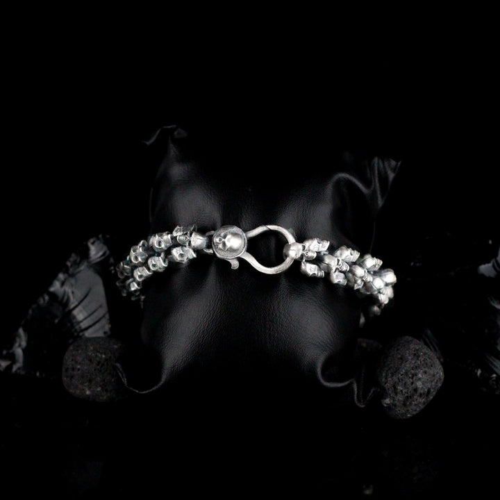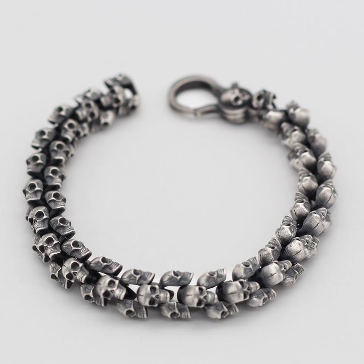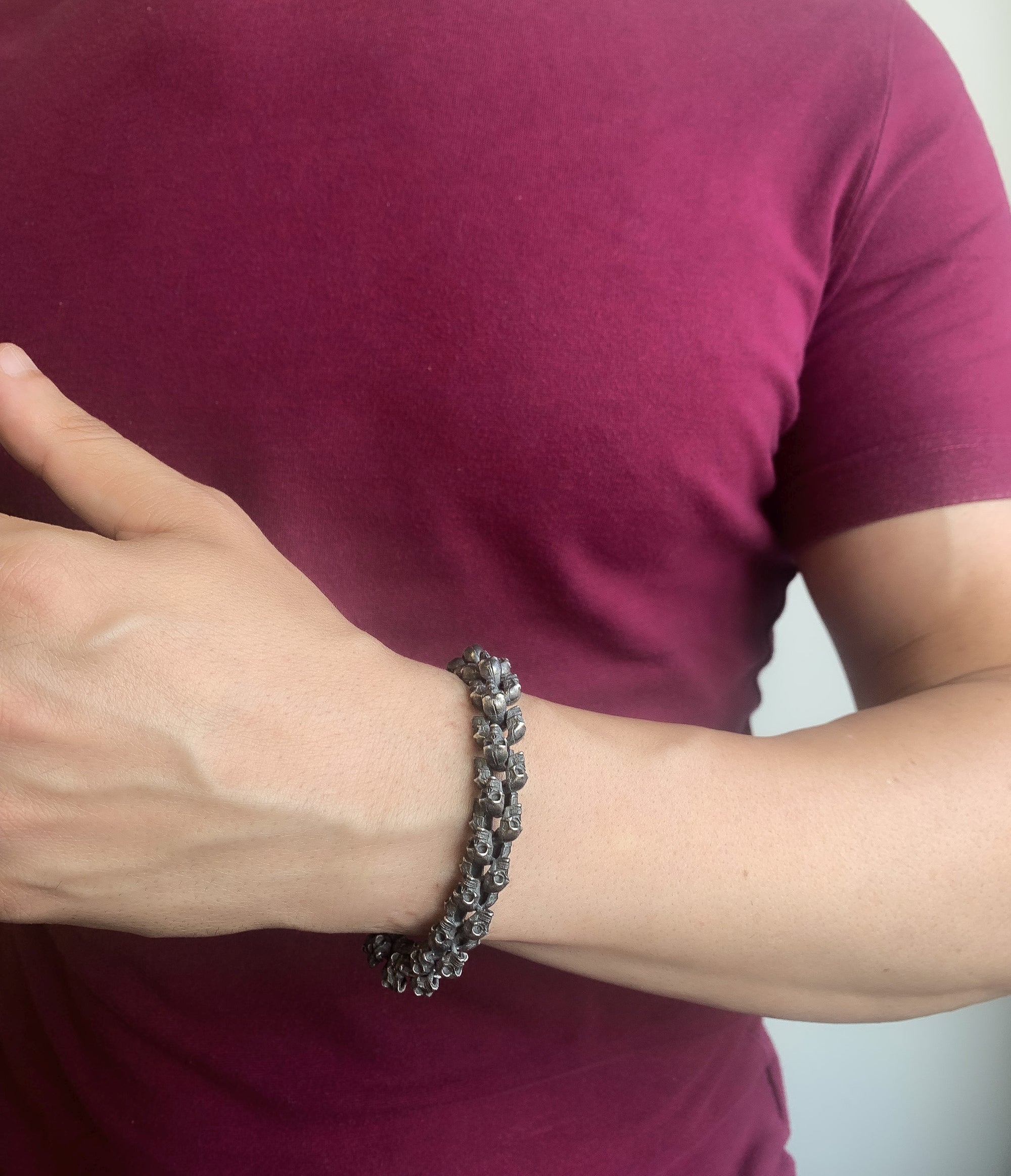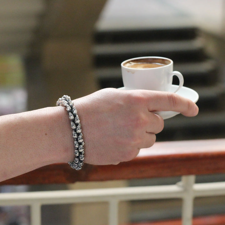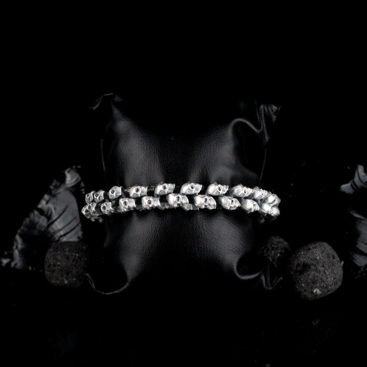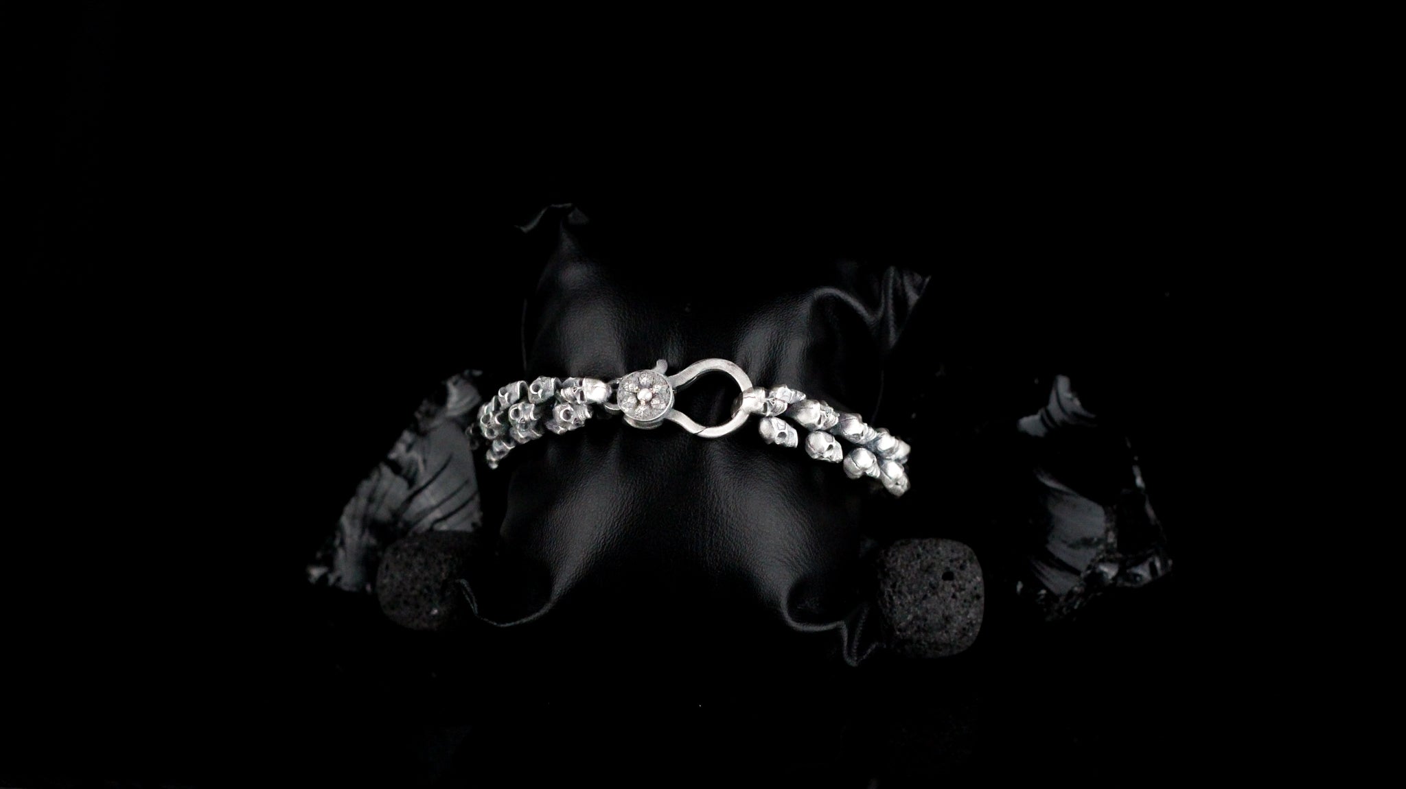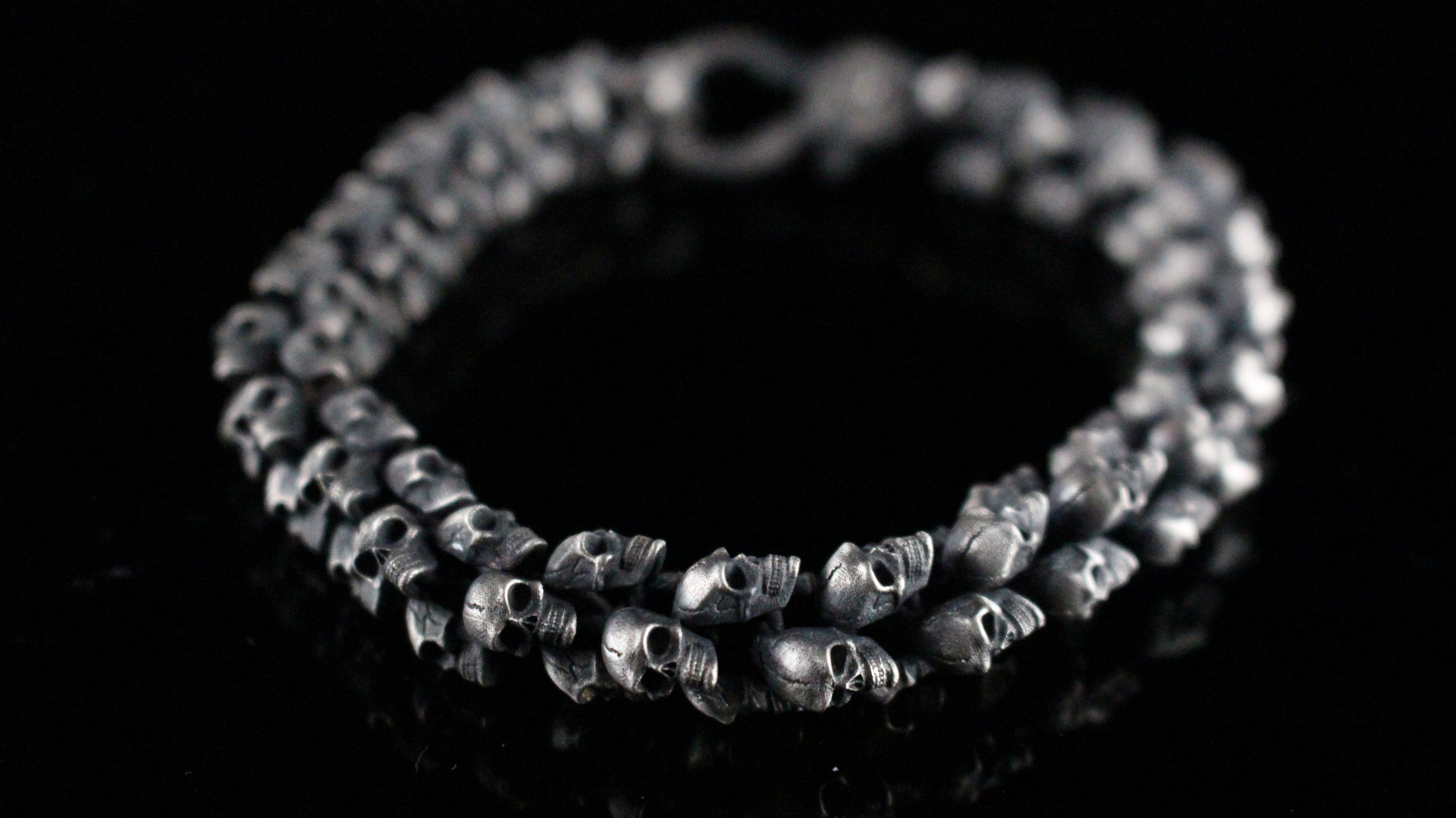 Solid Silver Skull Bracelet, Mens Skull Jewelry
