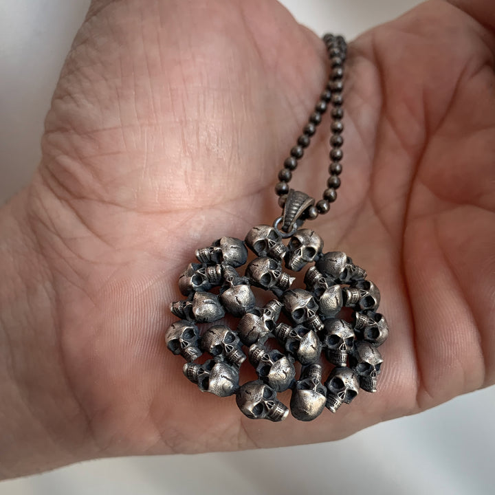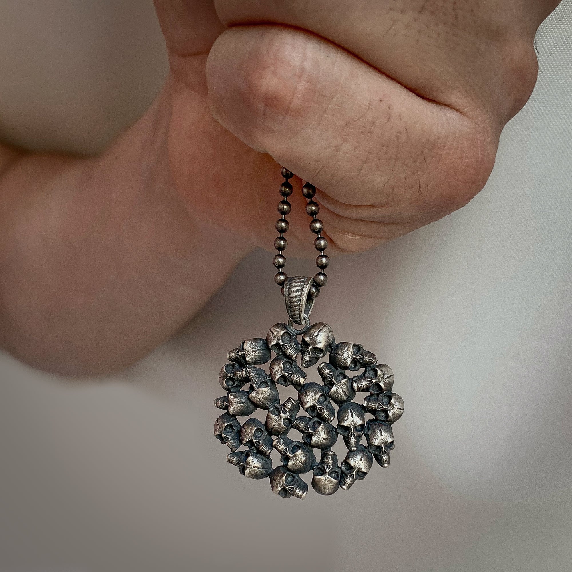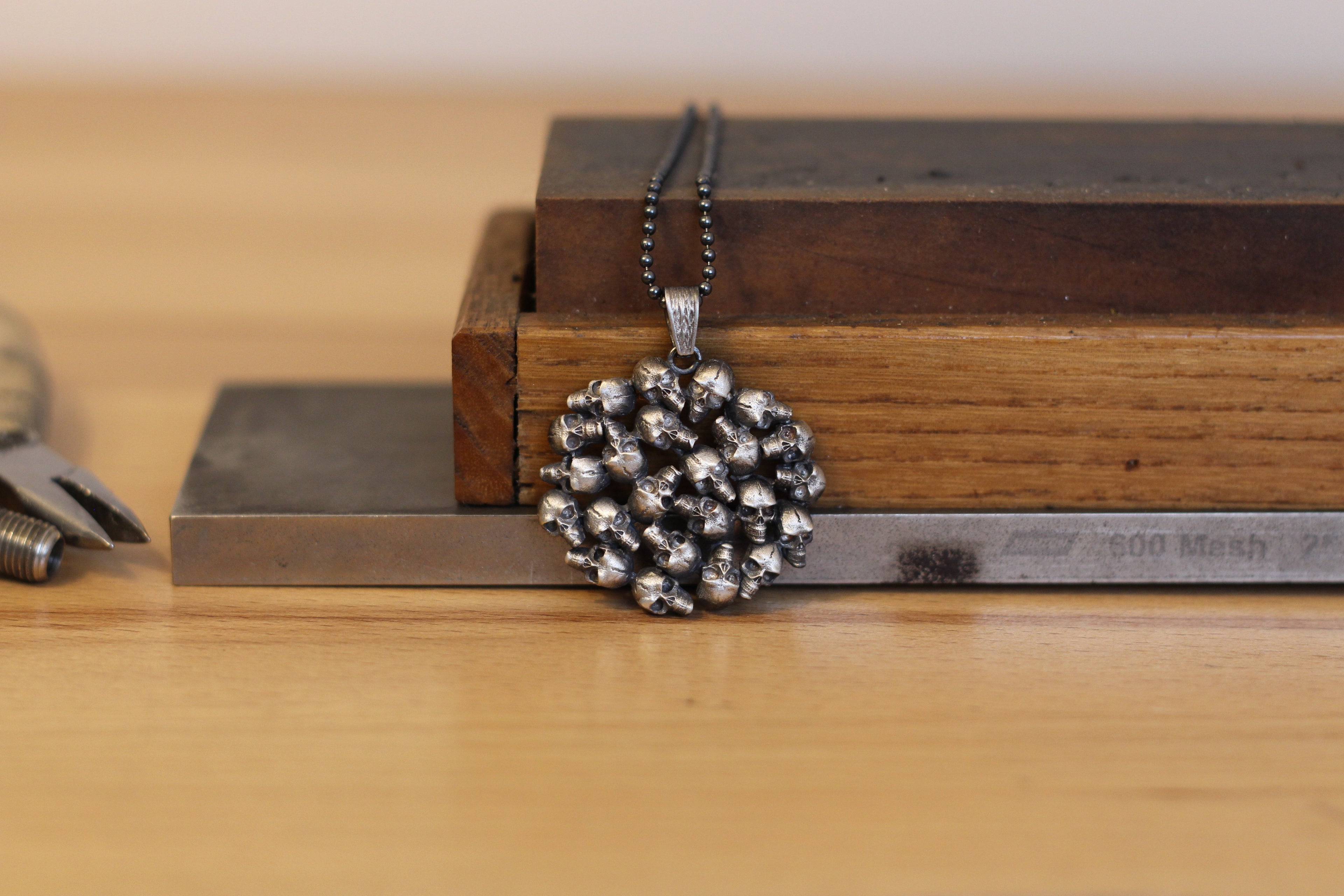 Solid Silver Skull Necklace, Handmade Silver Jewelry, Gothic Skull Necklace
