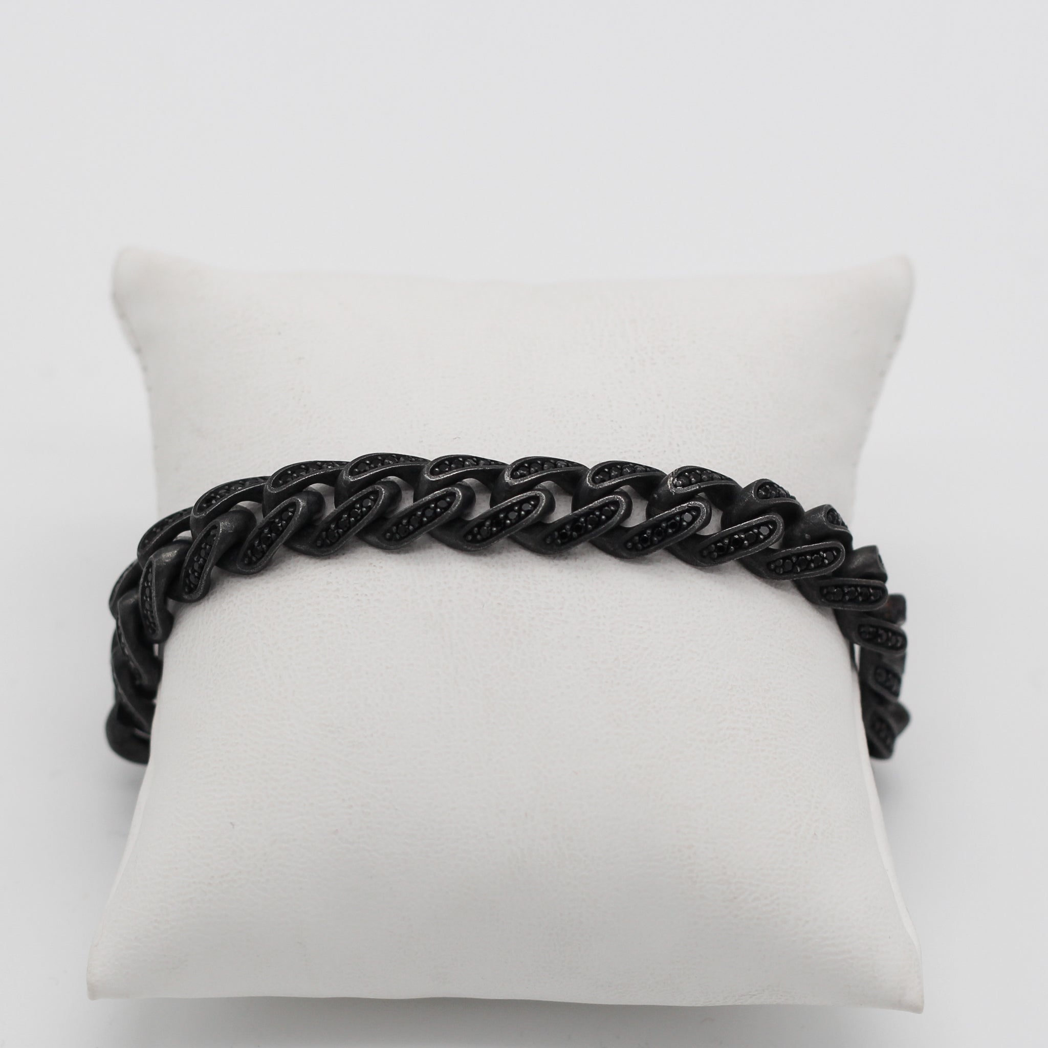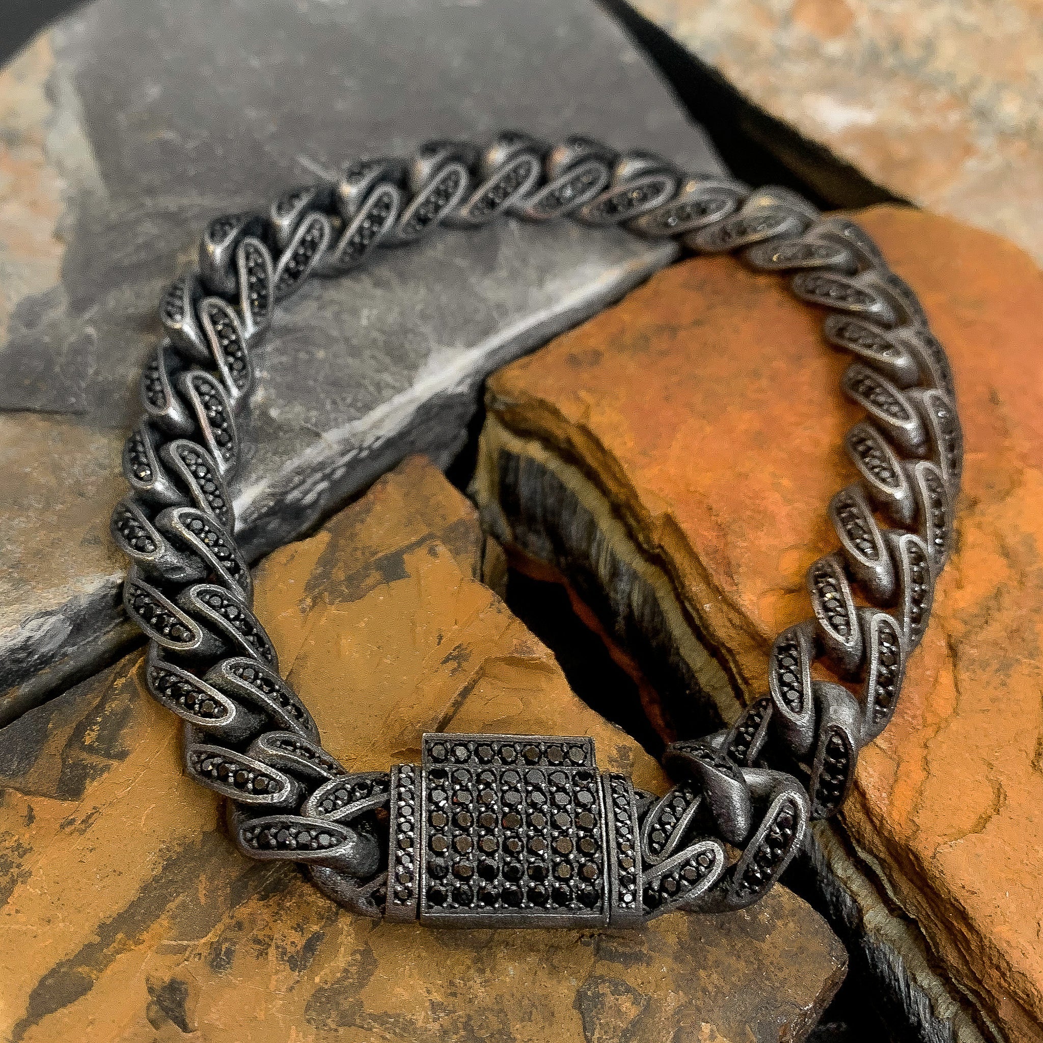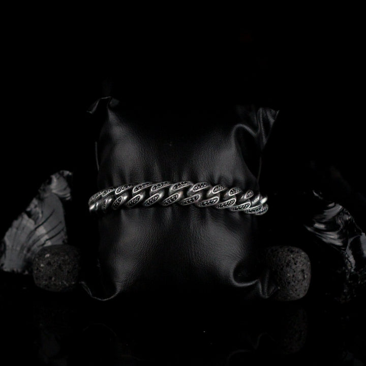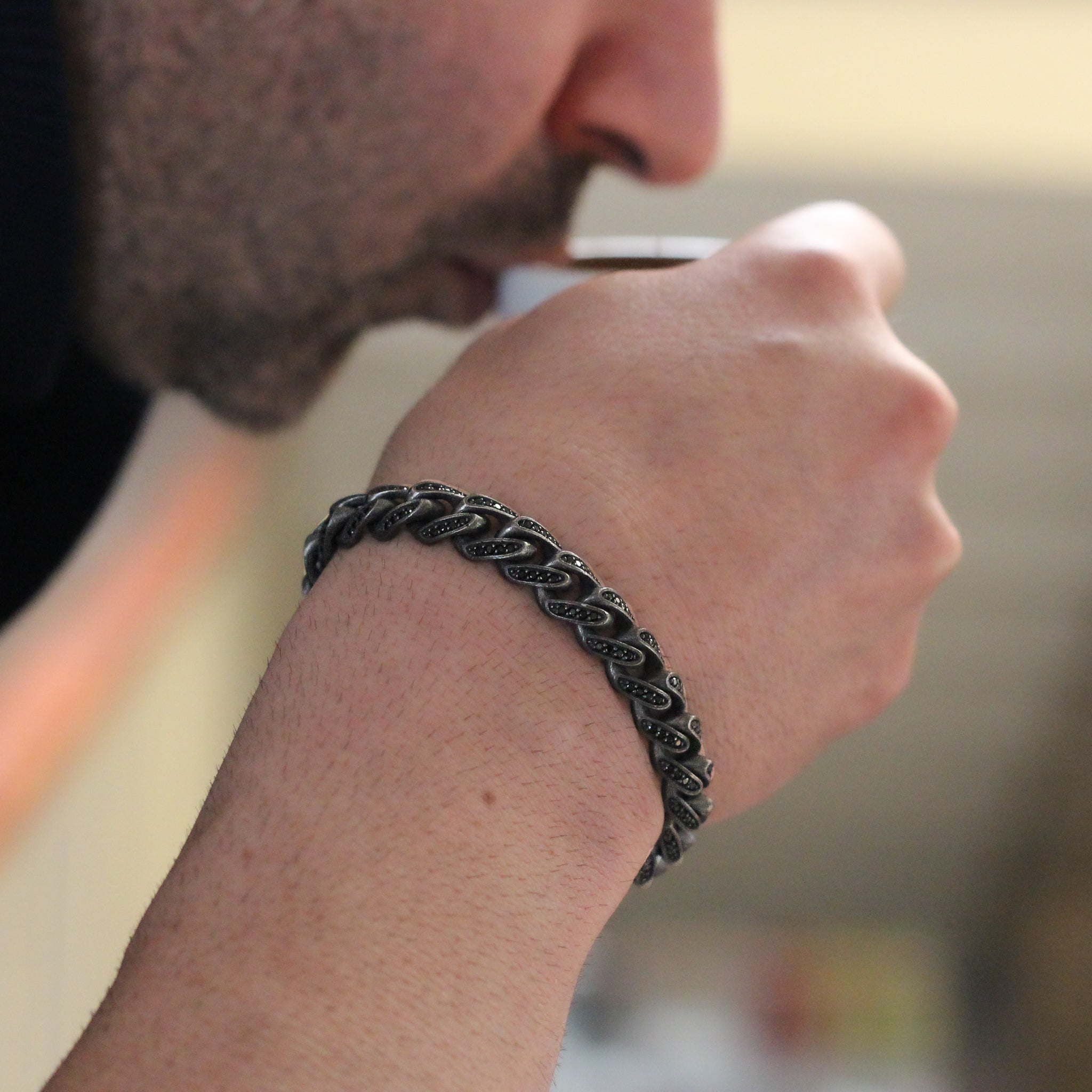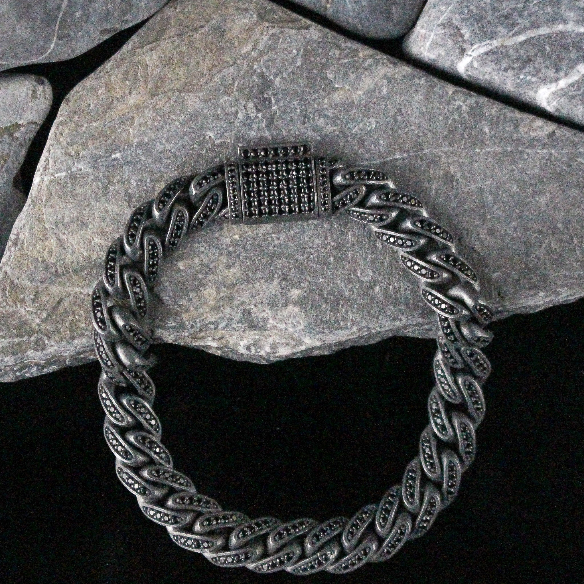 Sterling Silver Chain Bracelet, Black Stoned Chain Bracelet