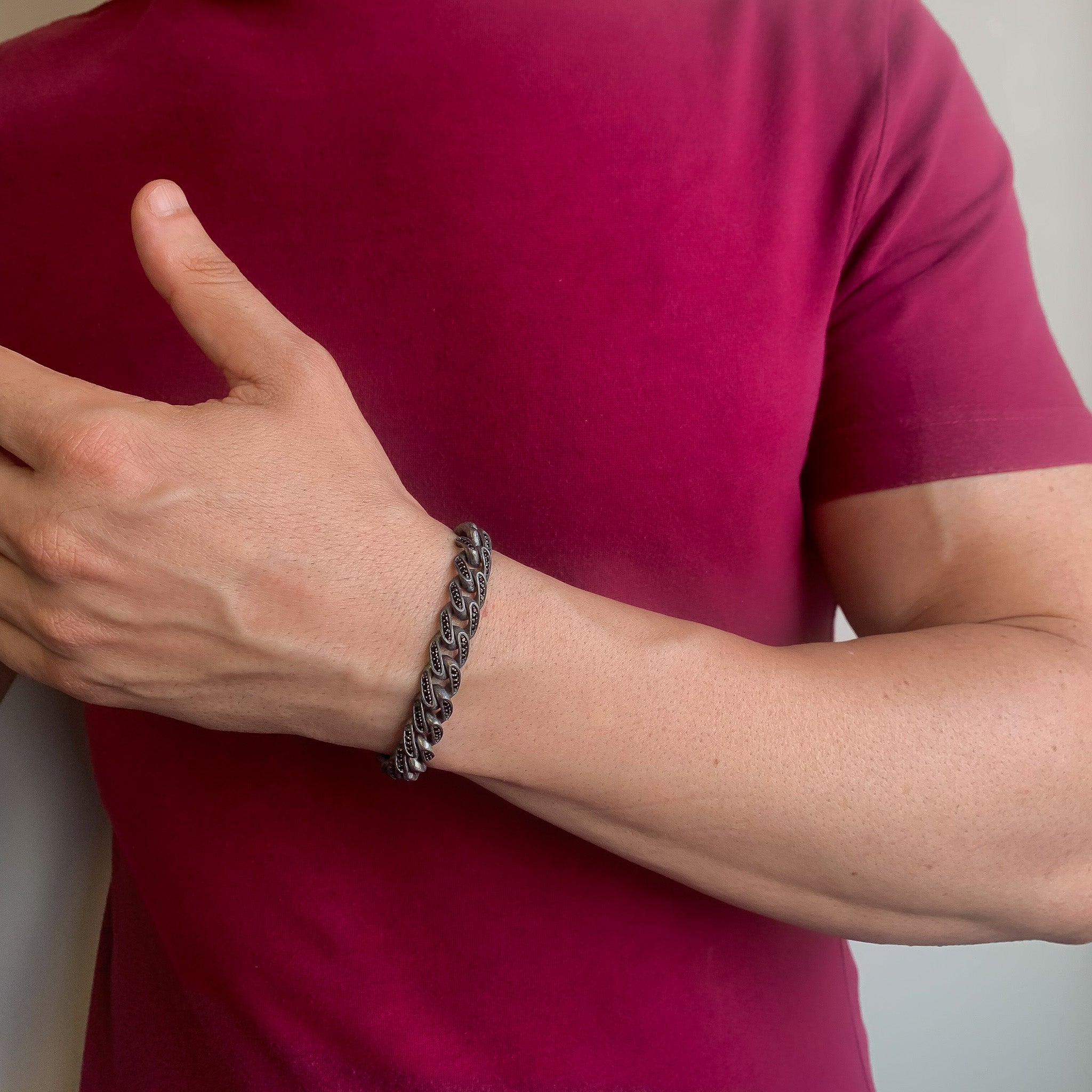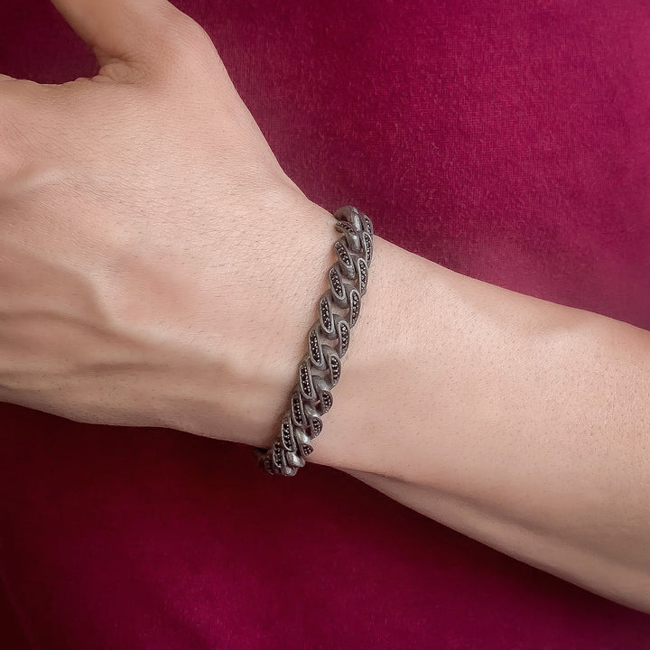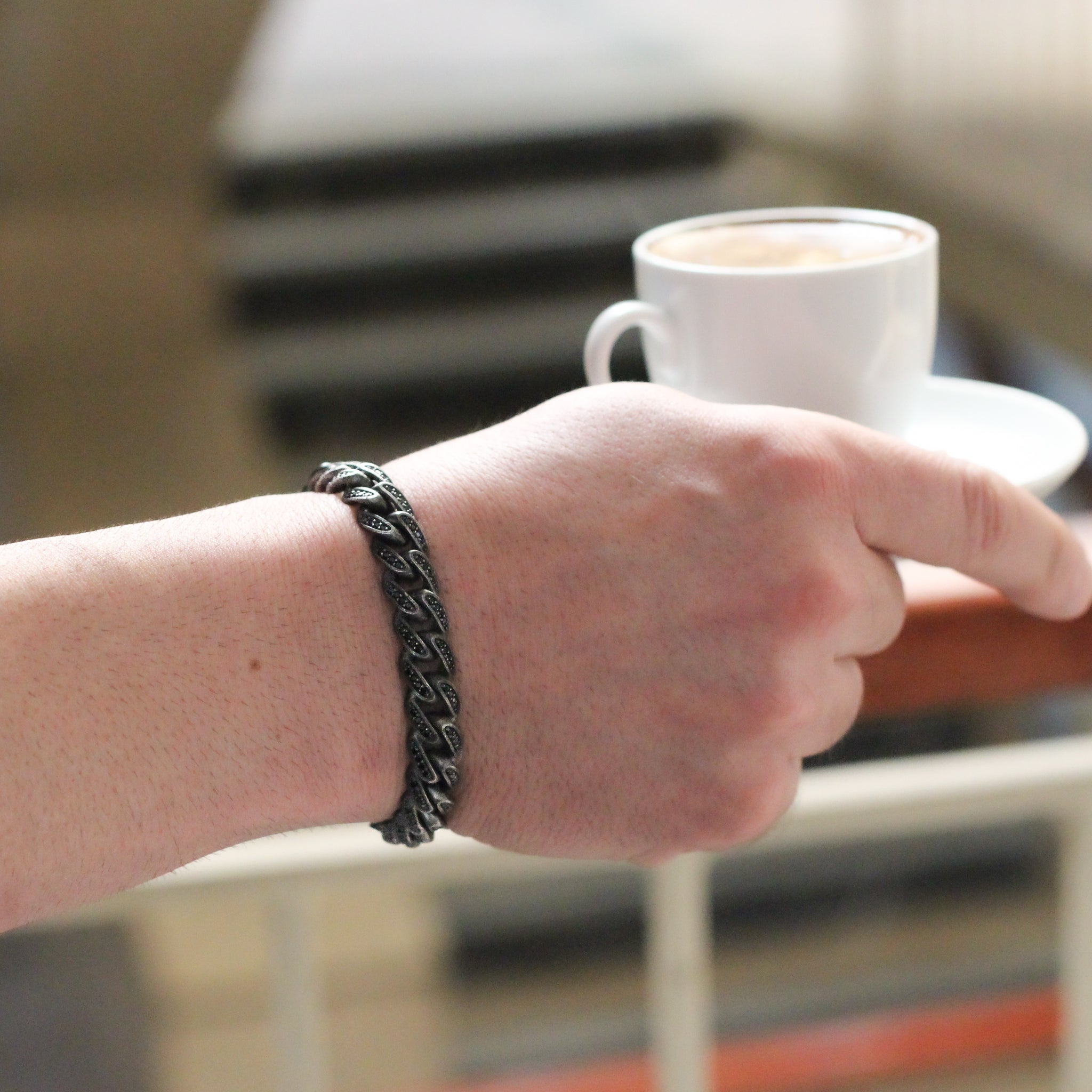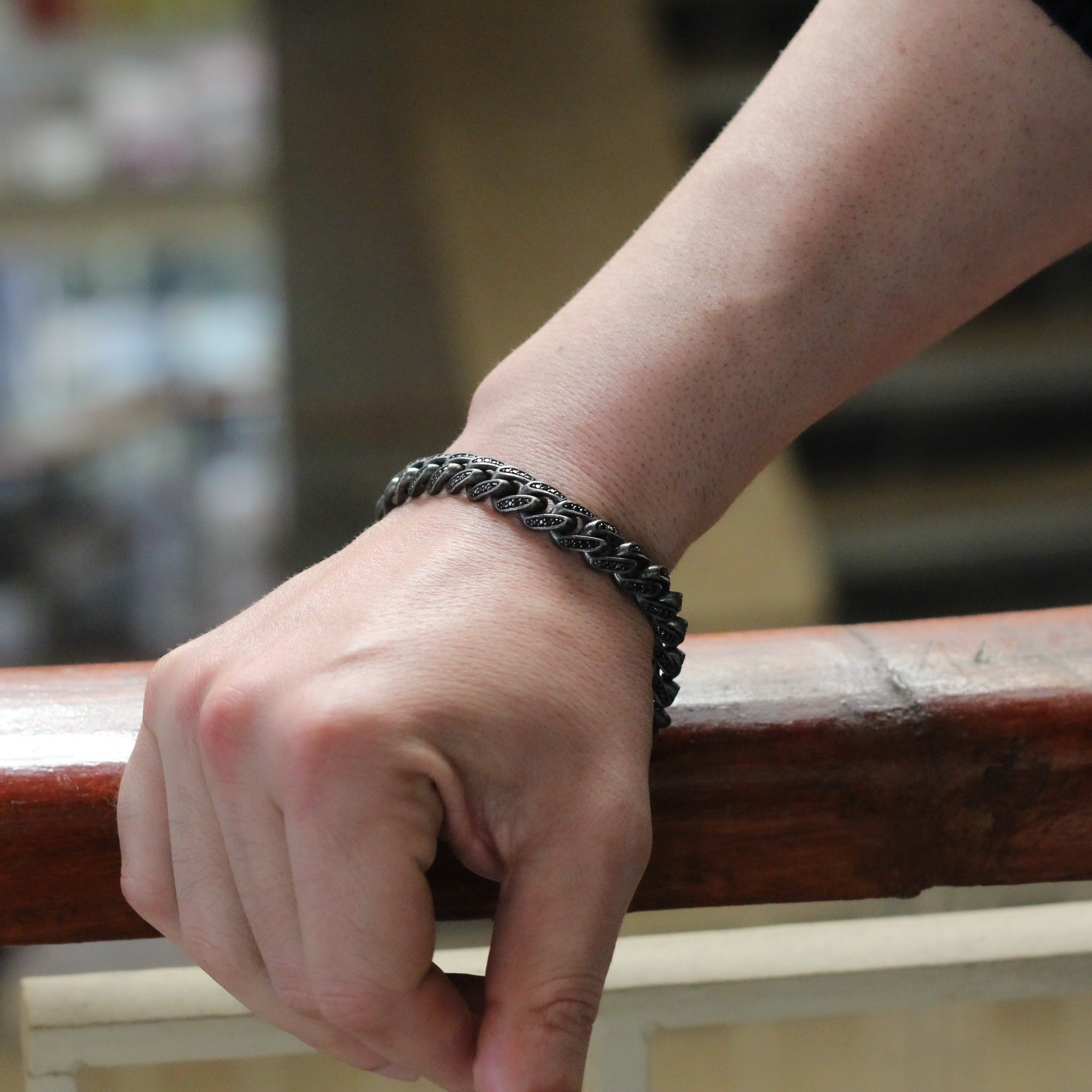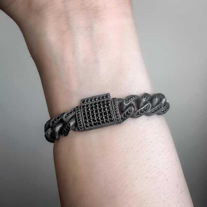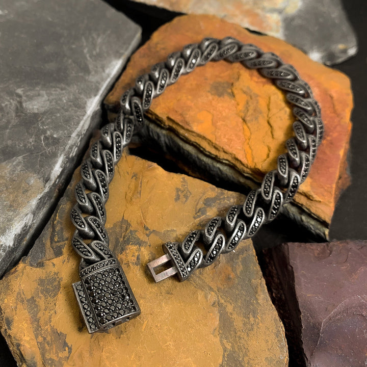 Sterling Silver Chain Bracelet, Black Stoned Chain Bracelet