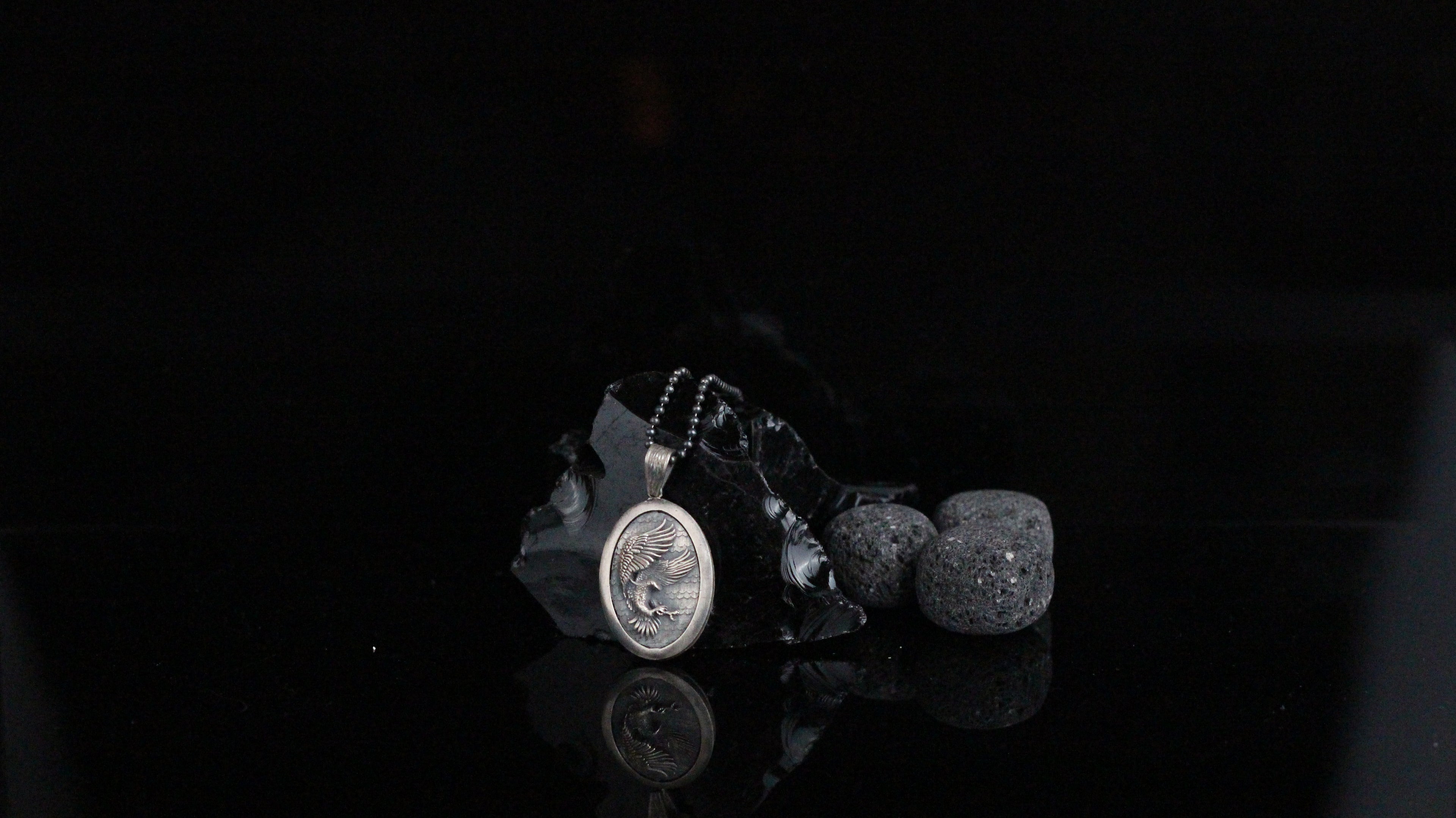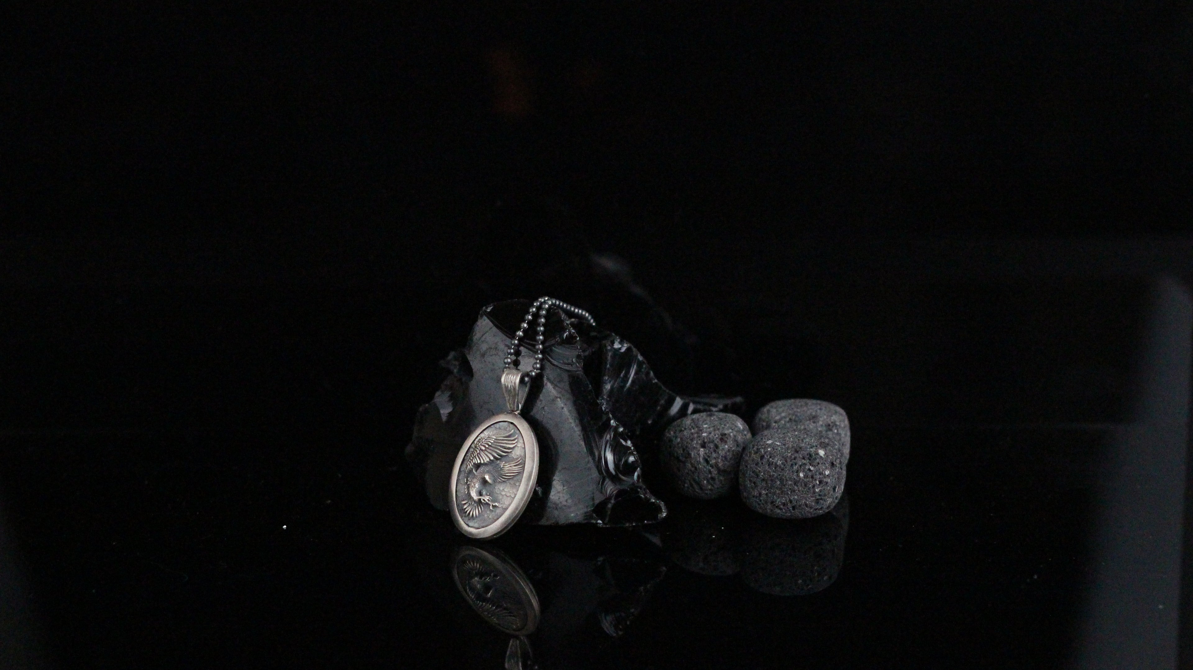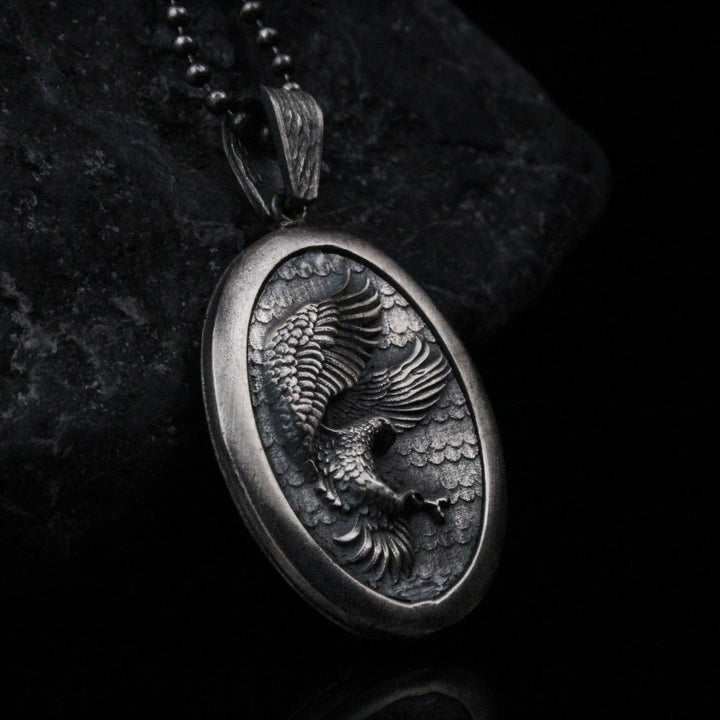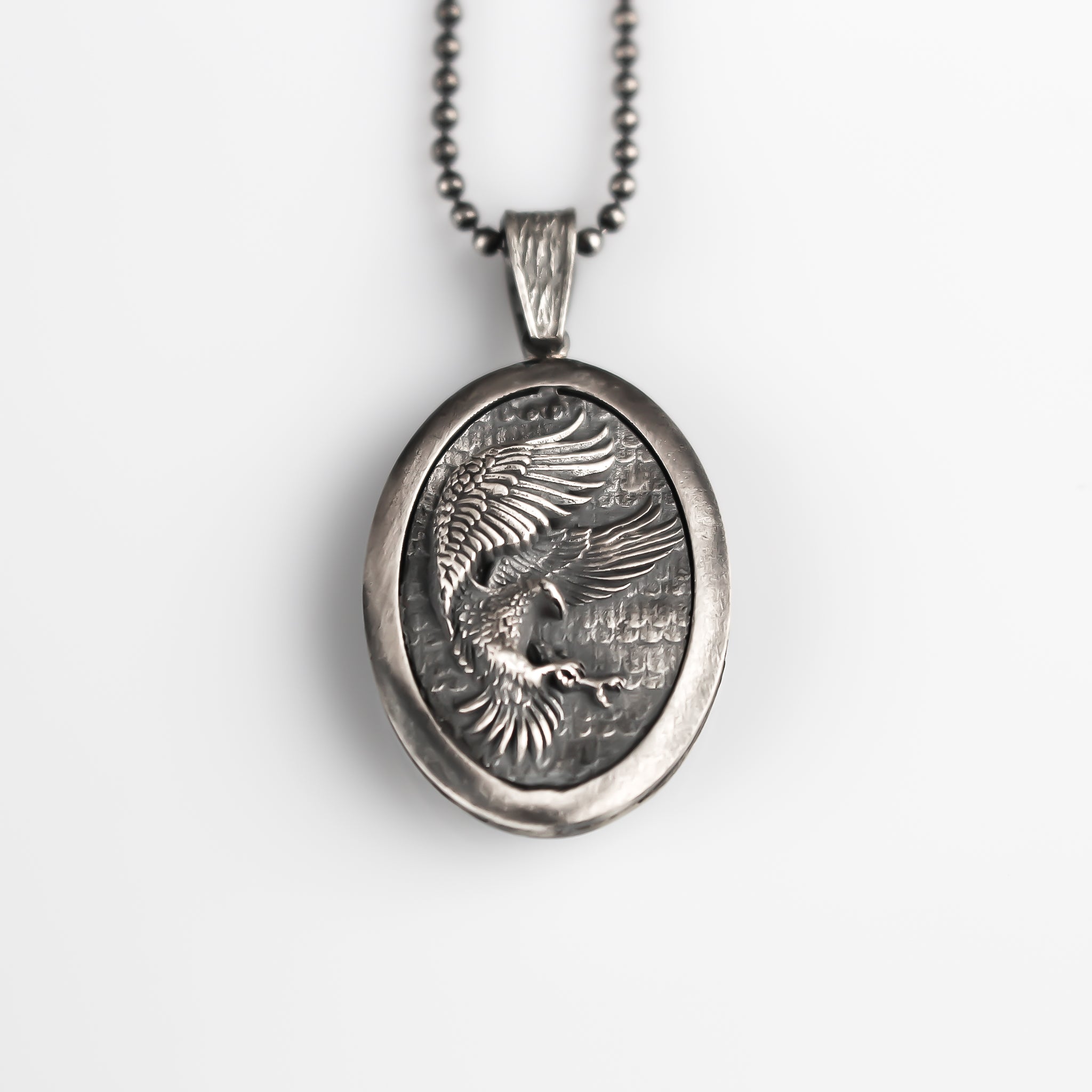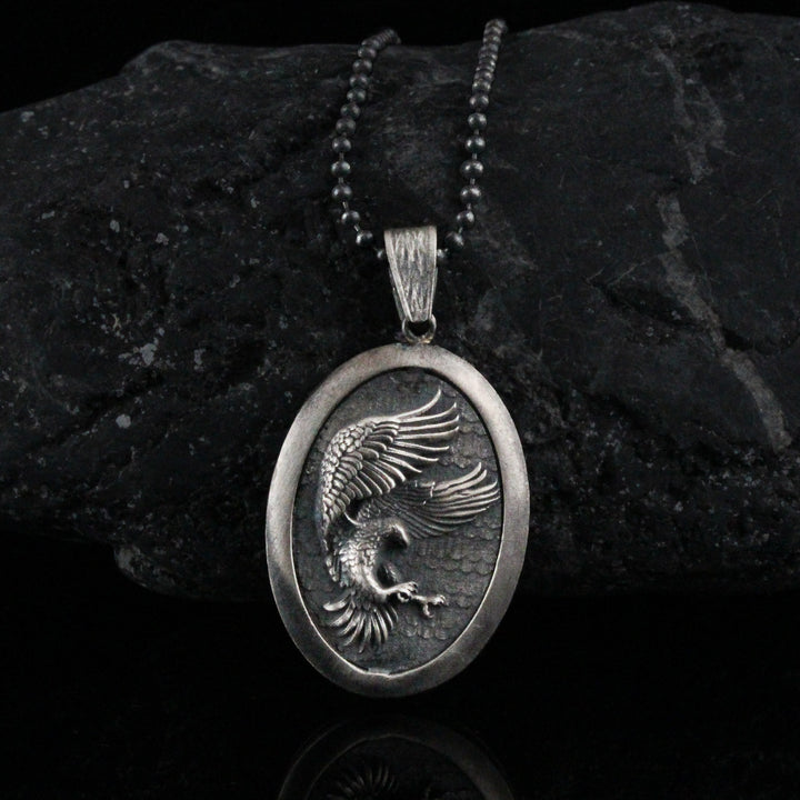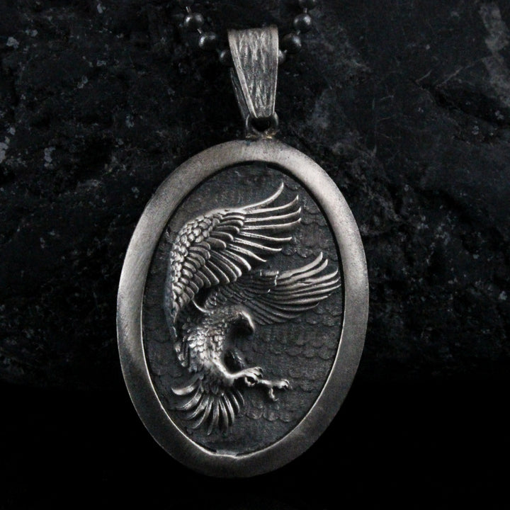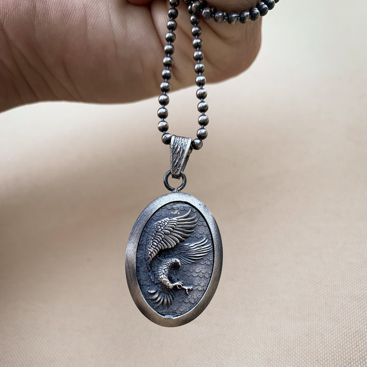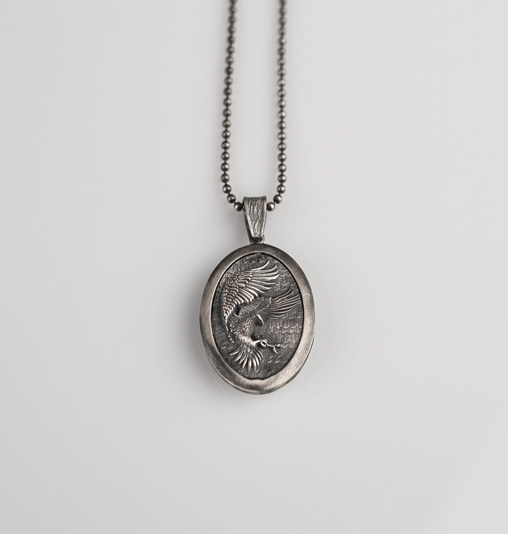 Sterling Silver Eagle Medallion, Rustic Eagle Necklace