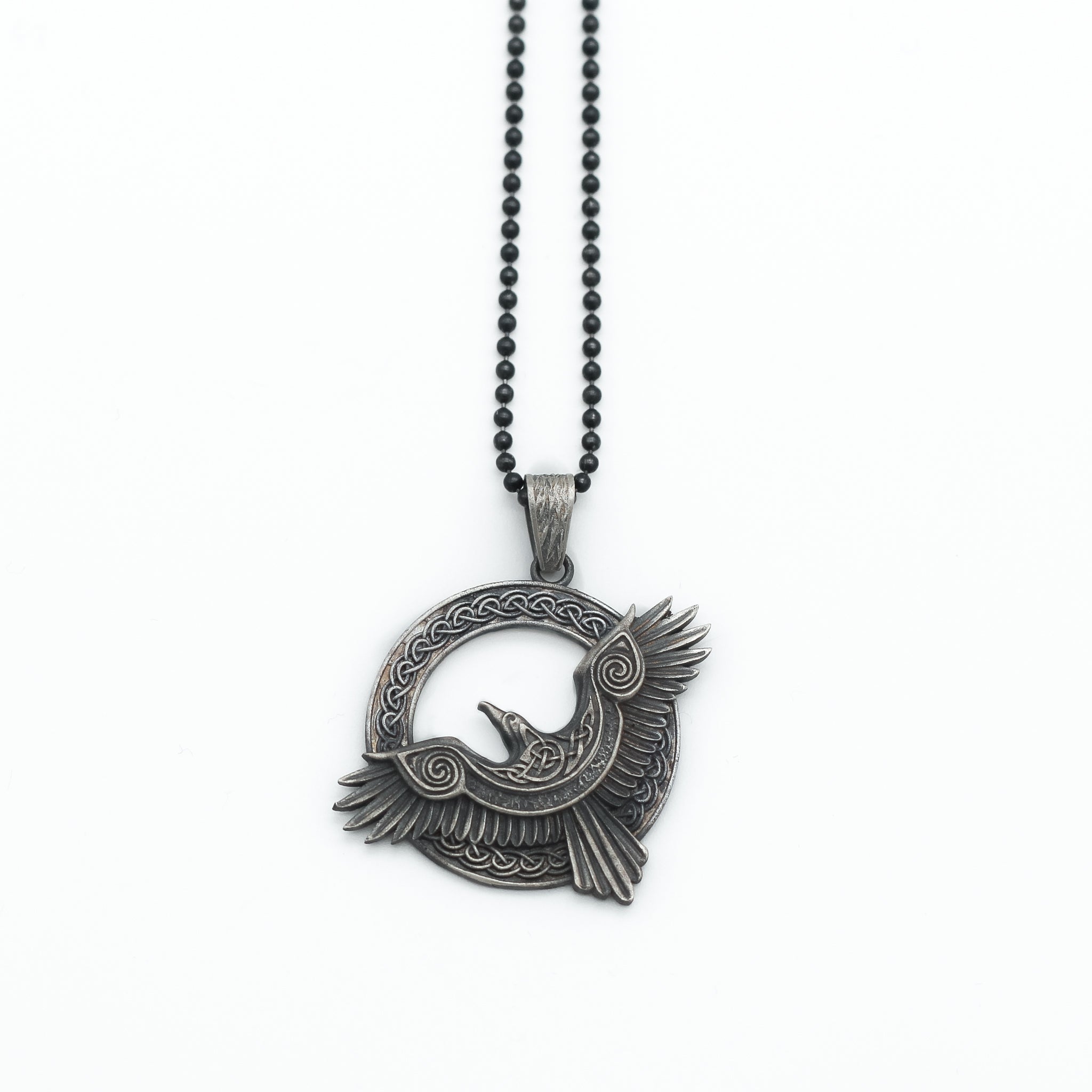 Sterling Silver Phoenix Necklace, Raven Necklace For Men