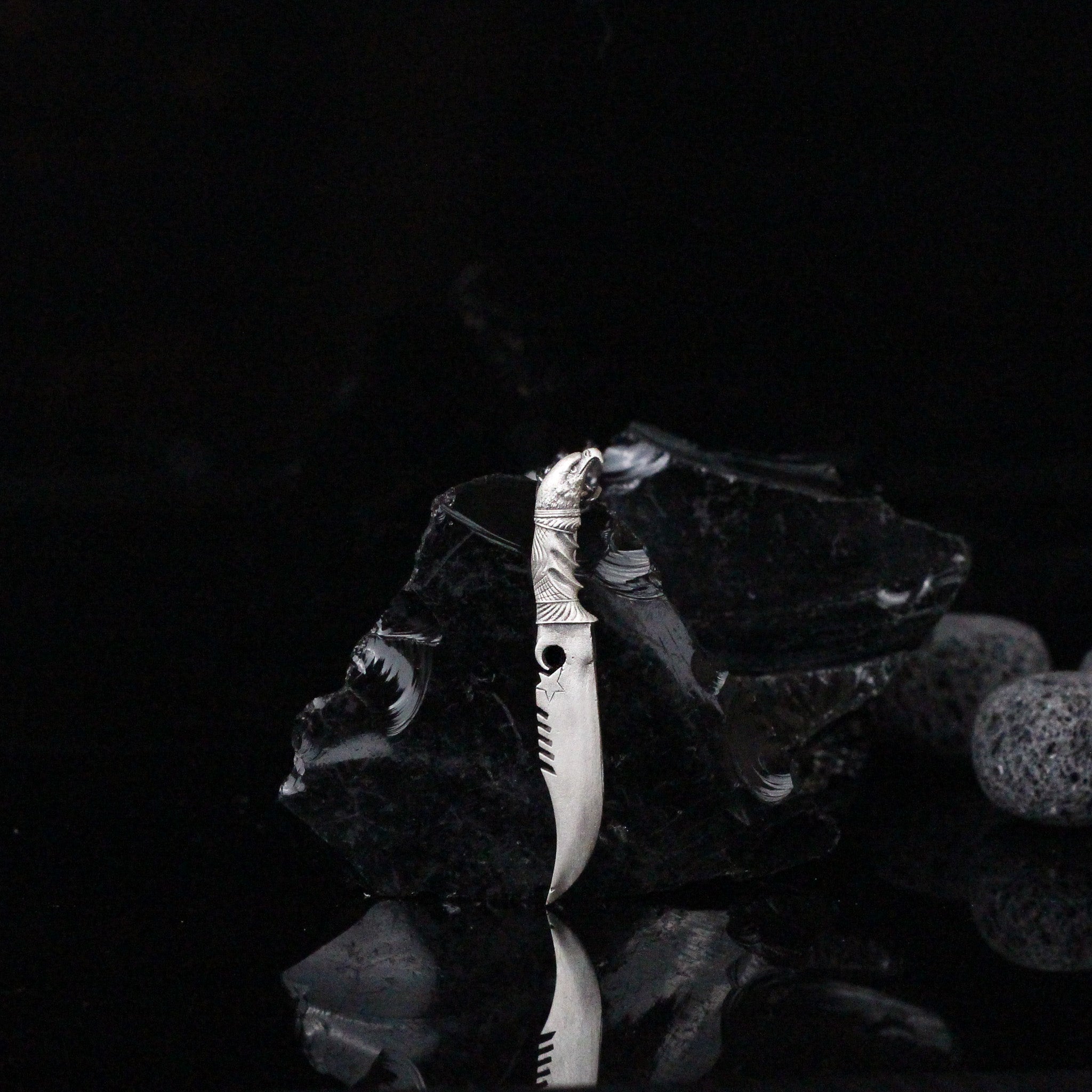 Commando Knife with Eagle Necklace, Handmade Eagle Charm Necklace