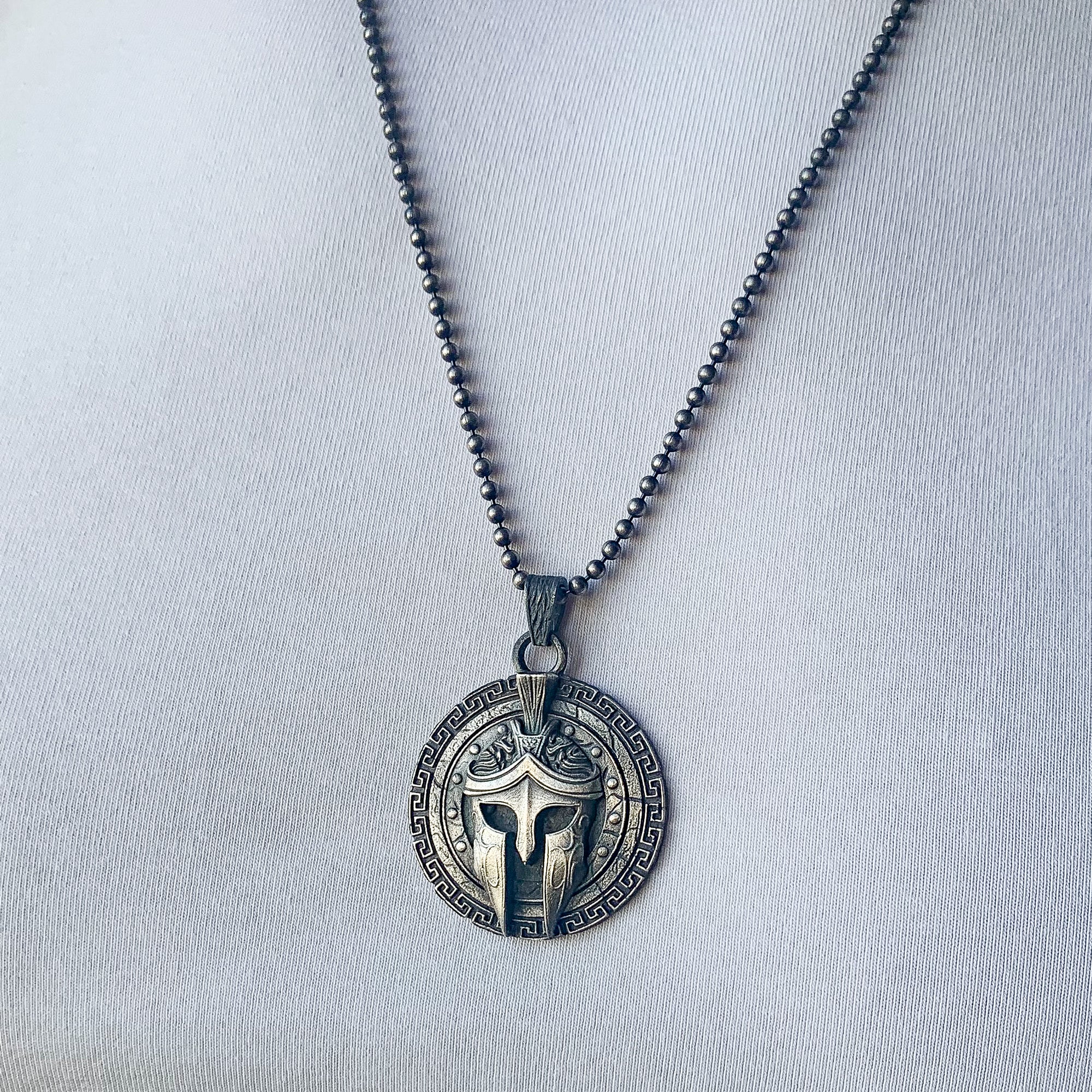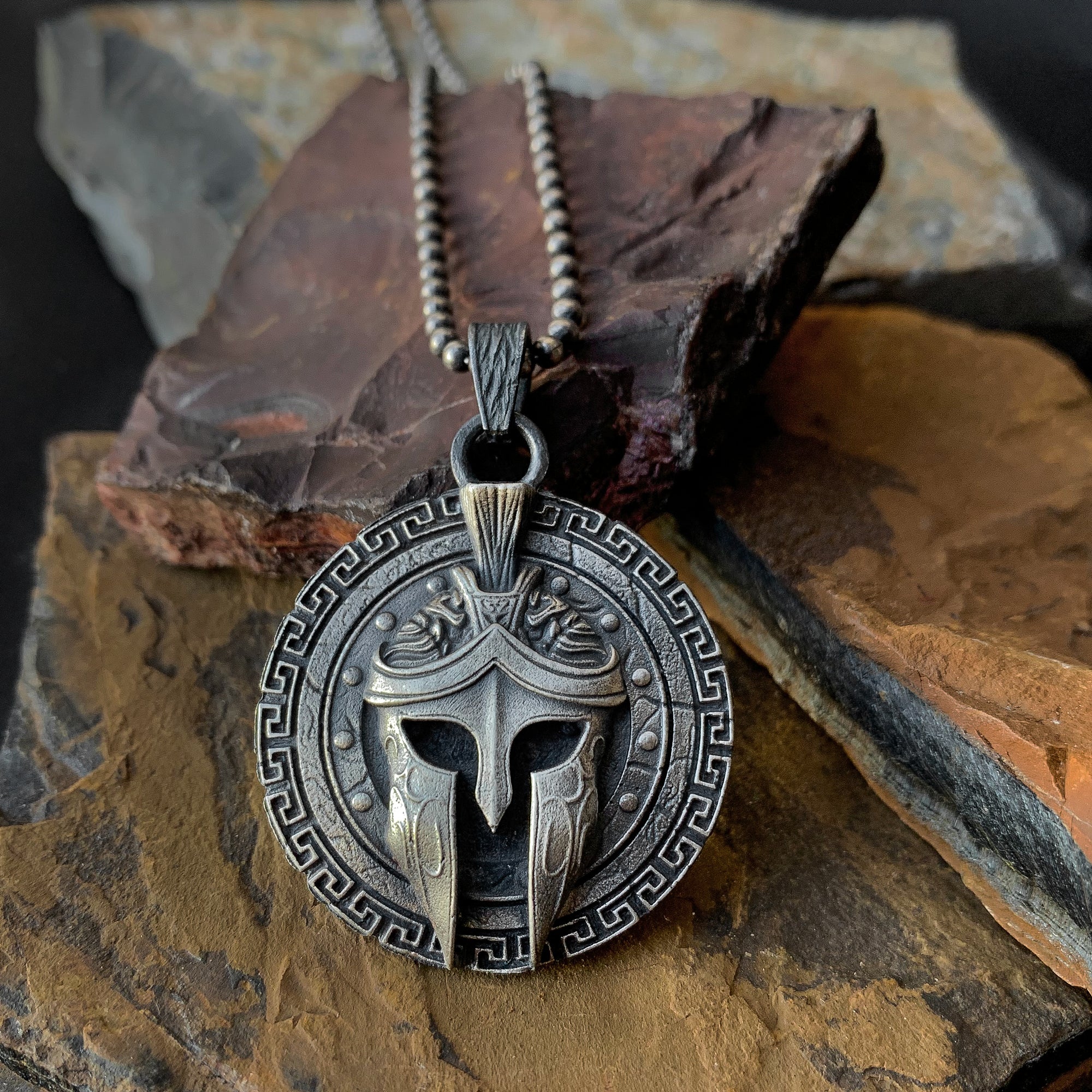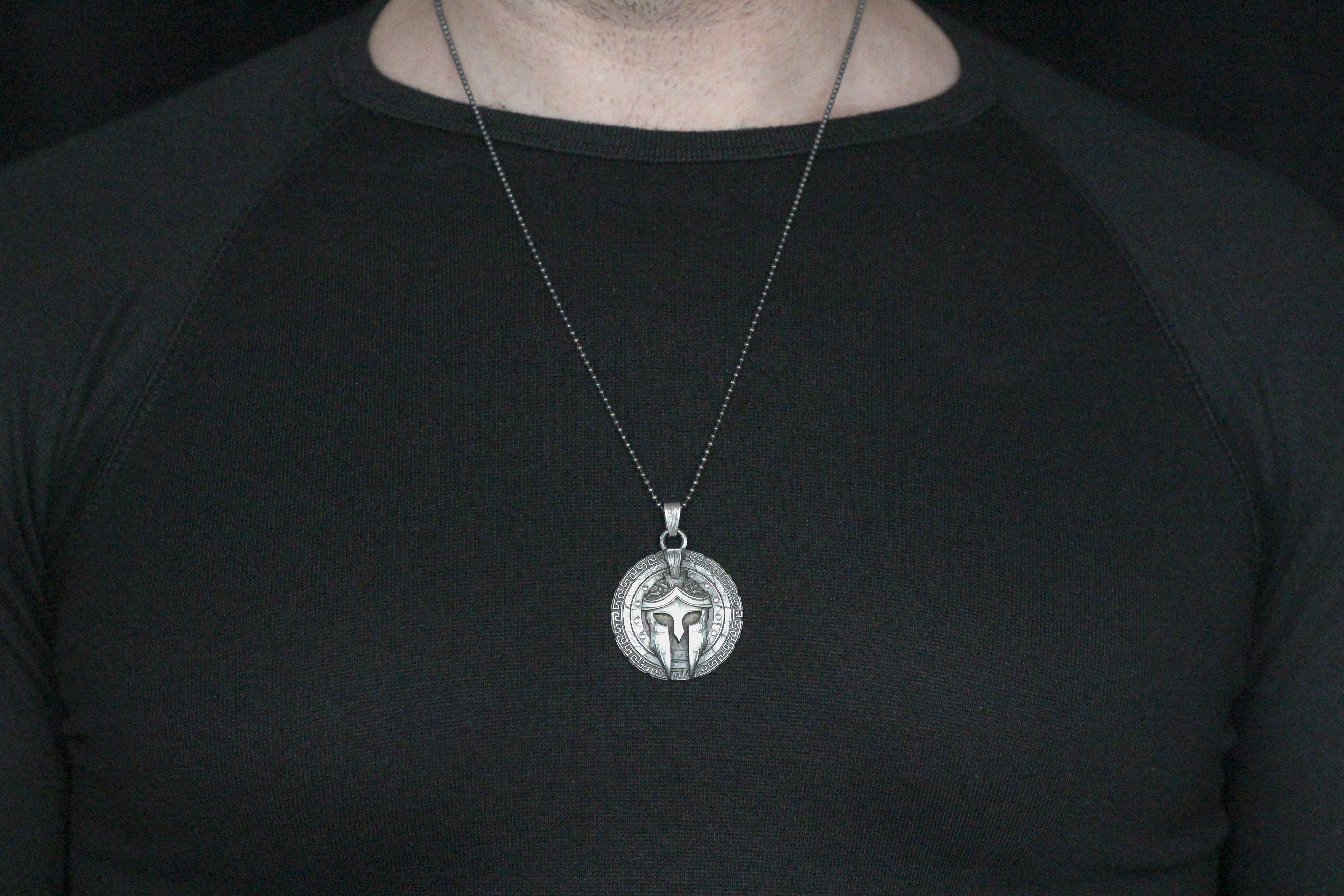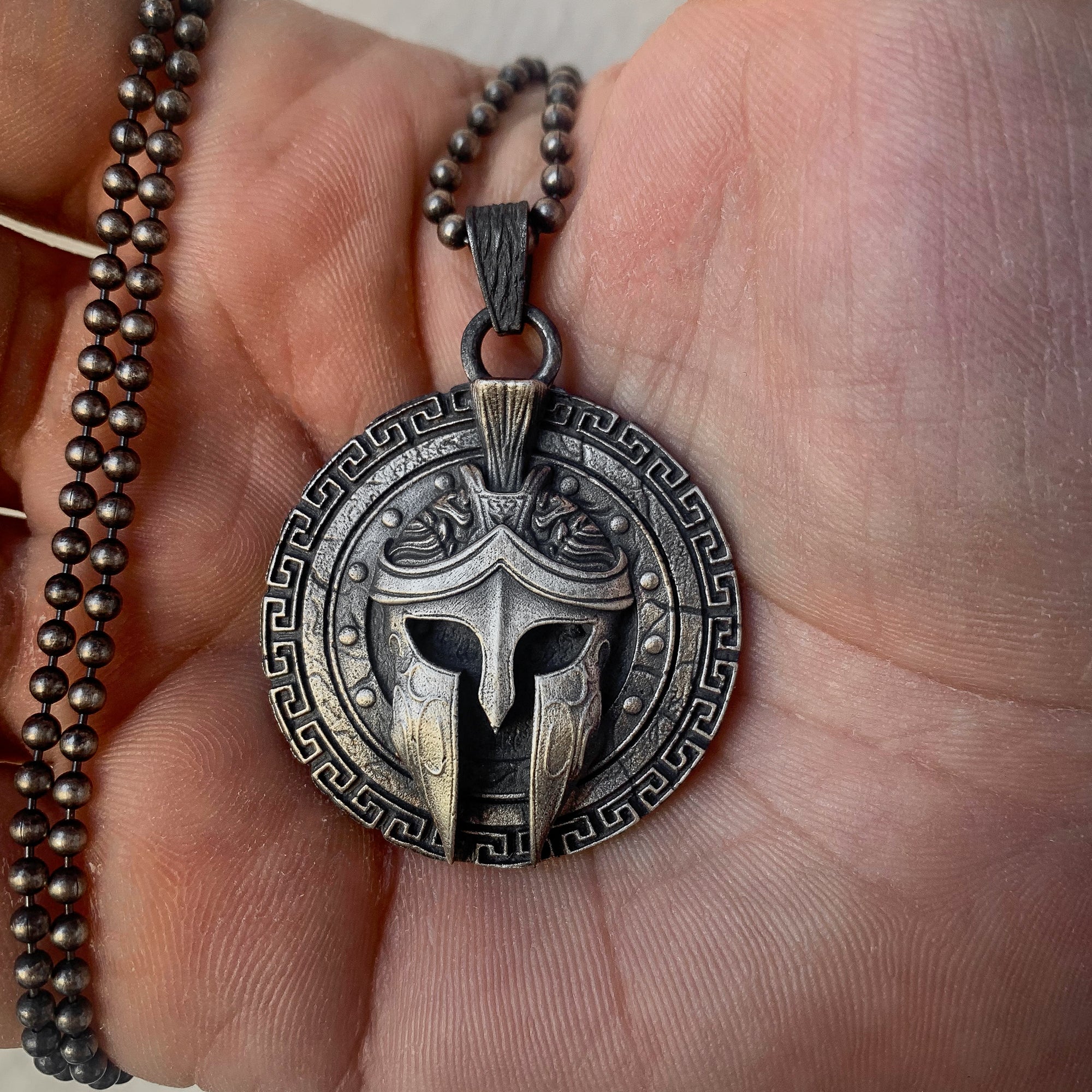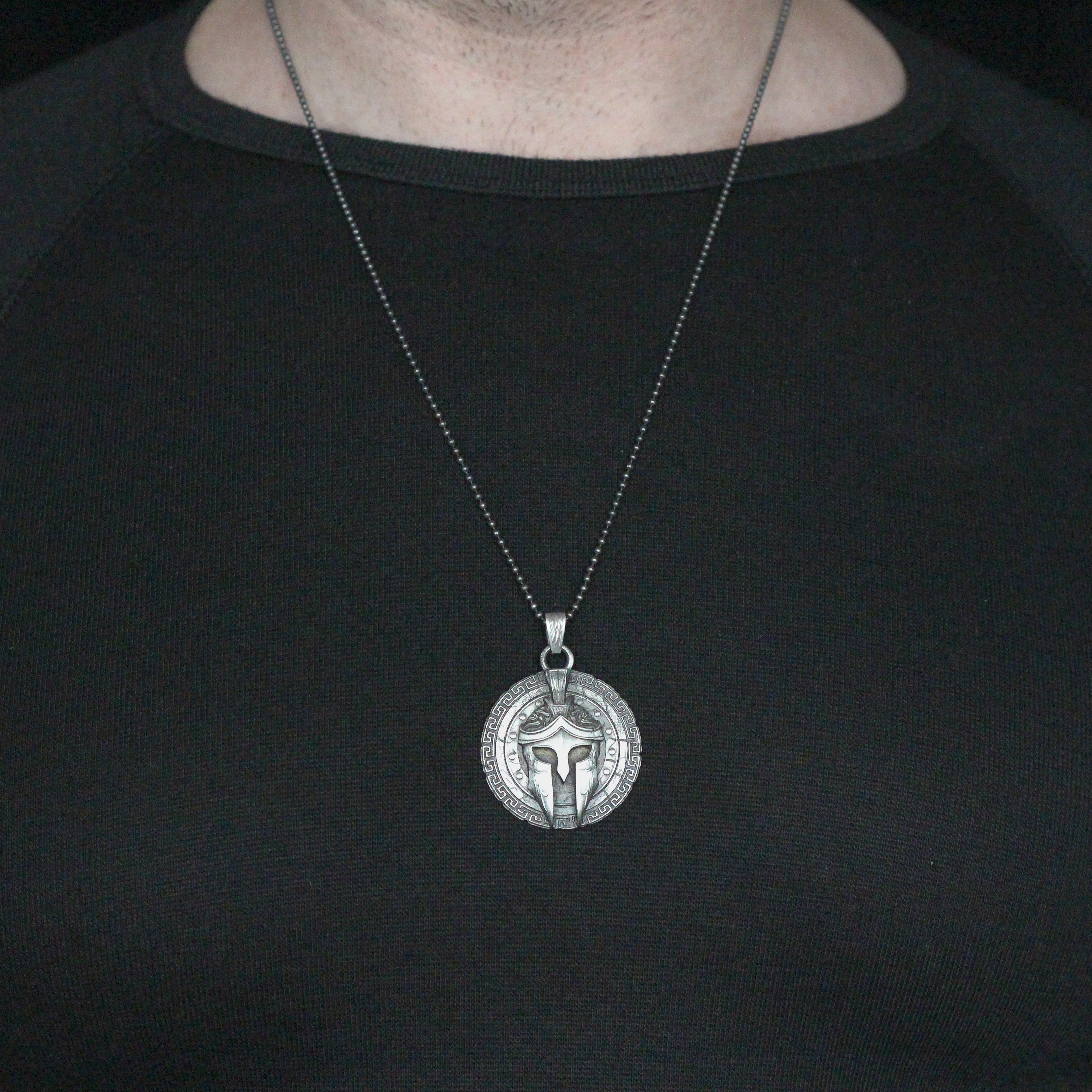 Spartan Helmet Necklace in Sterling Silver | A Tribute to Ancient Warriors Medallion Necklace