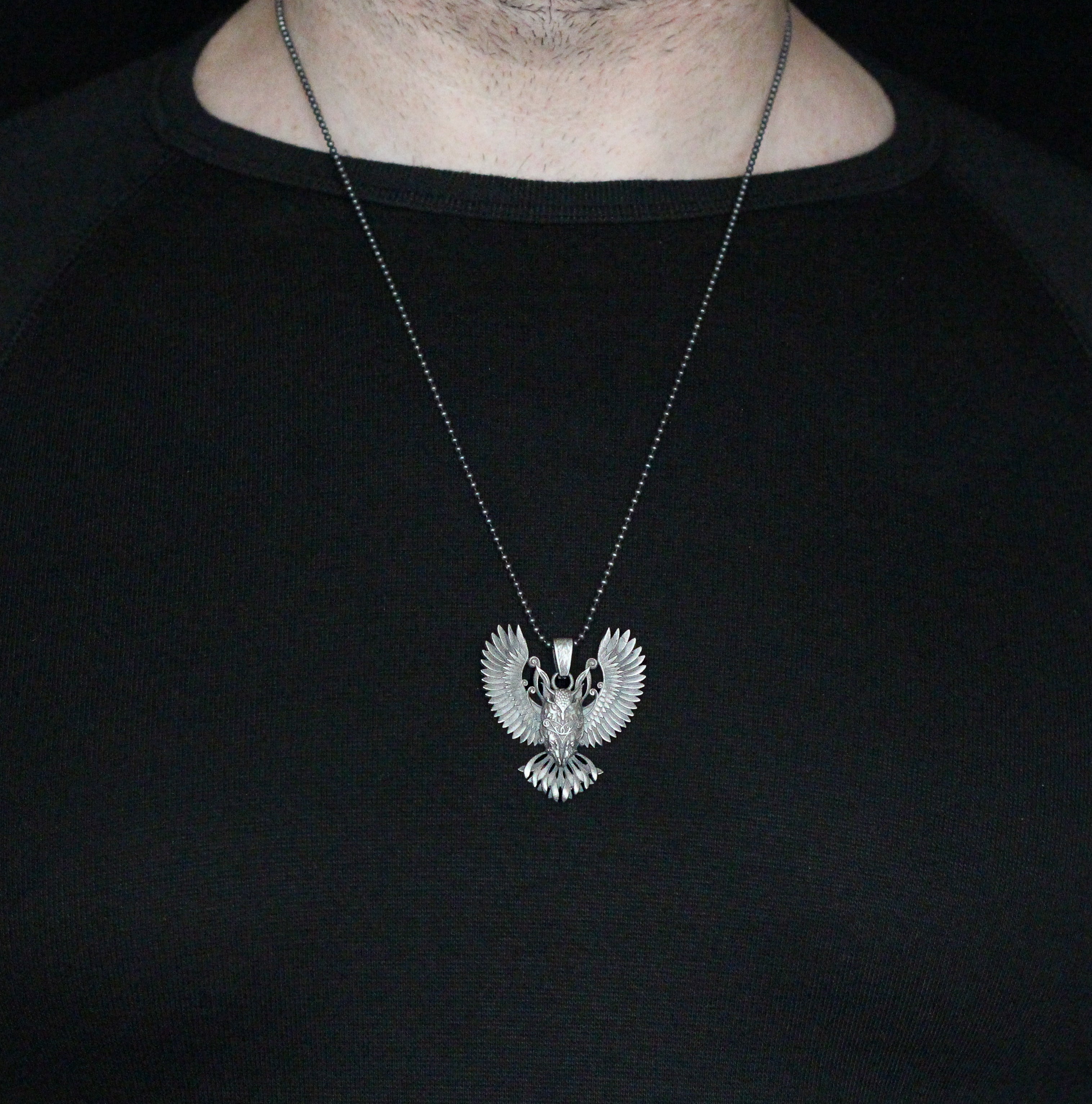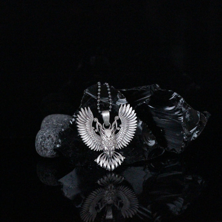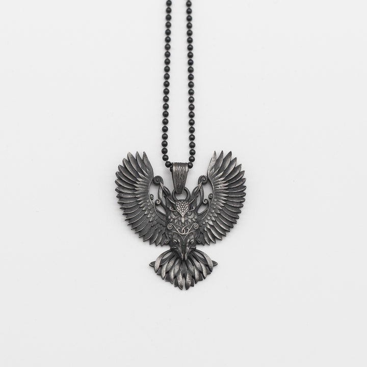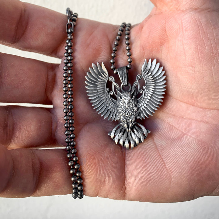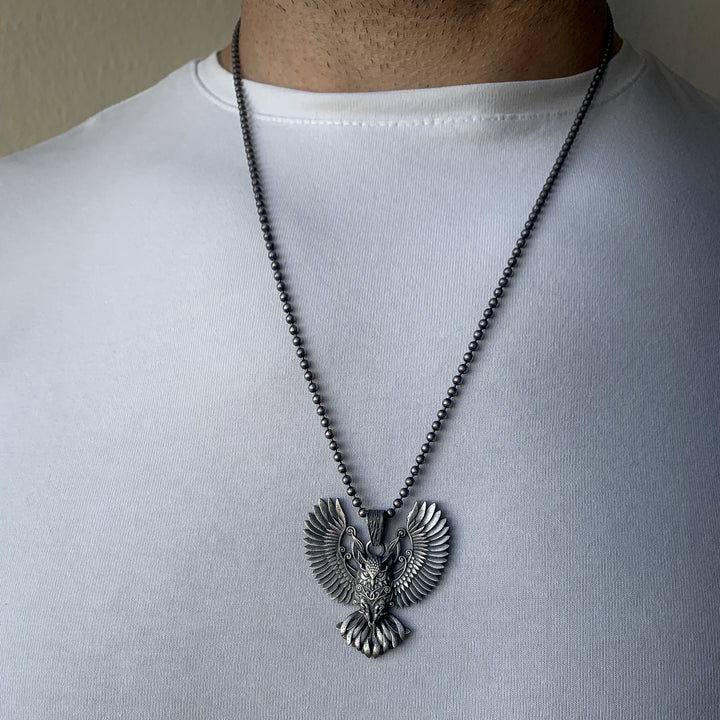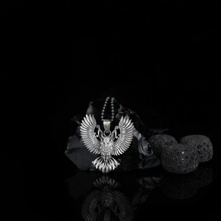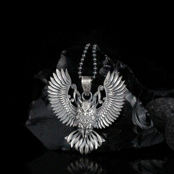 Sterling Silver Owl Necklace with Wings | Mystical and Elegant Charm Jewelry For Men