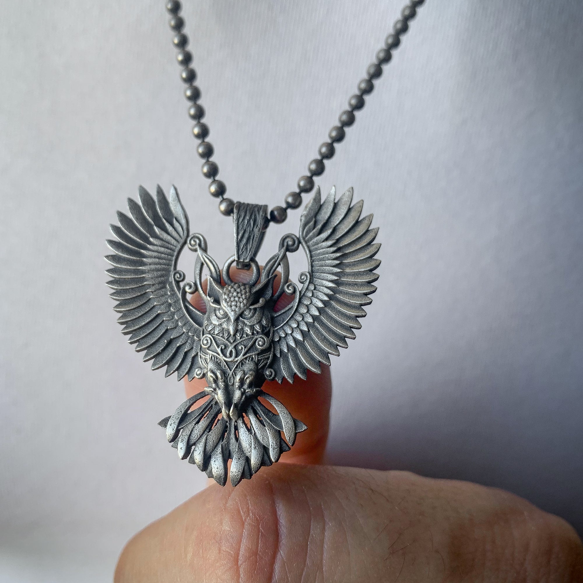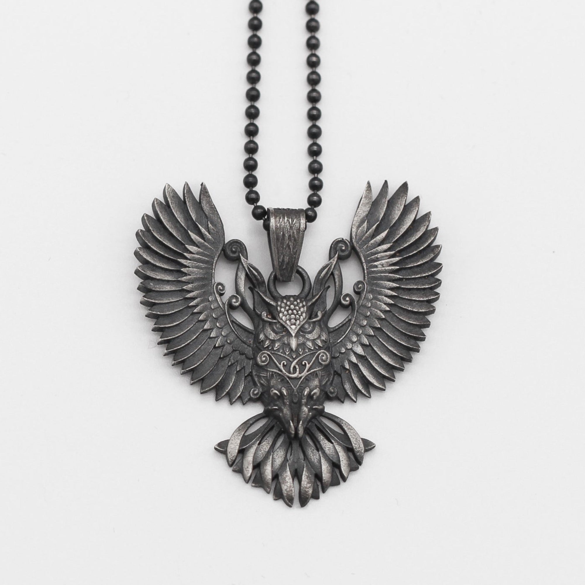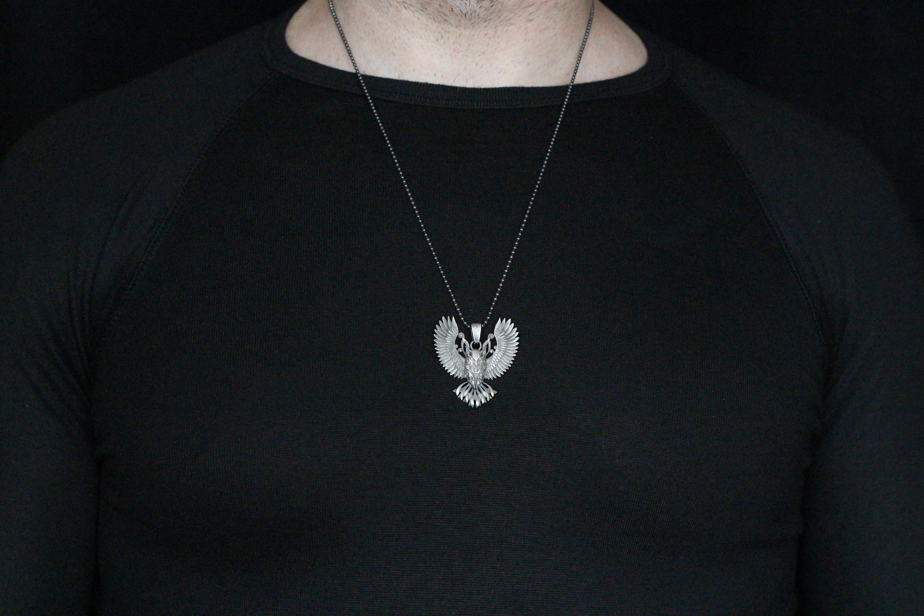Sterling Silver Owl Necklace with Wings | Mystical and Elegant Charm Jewelry For Men