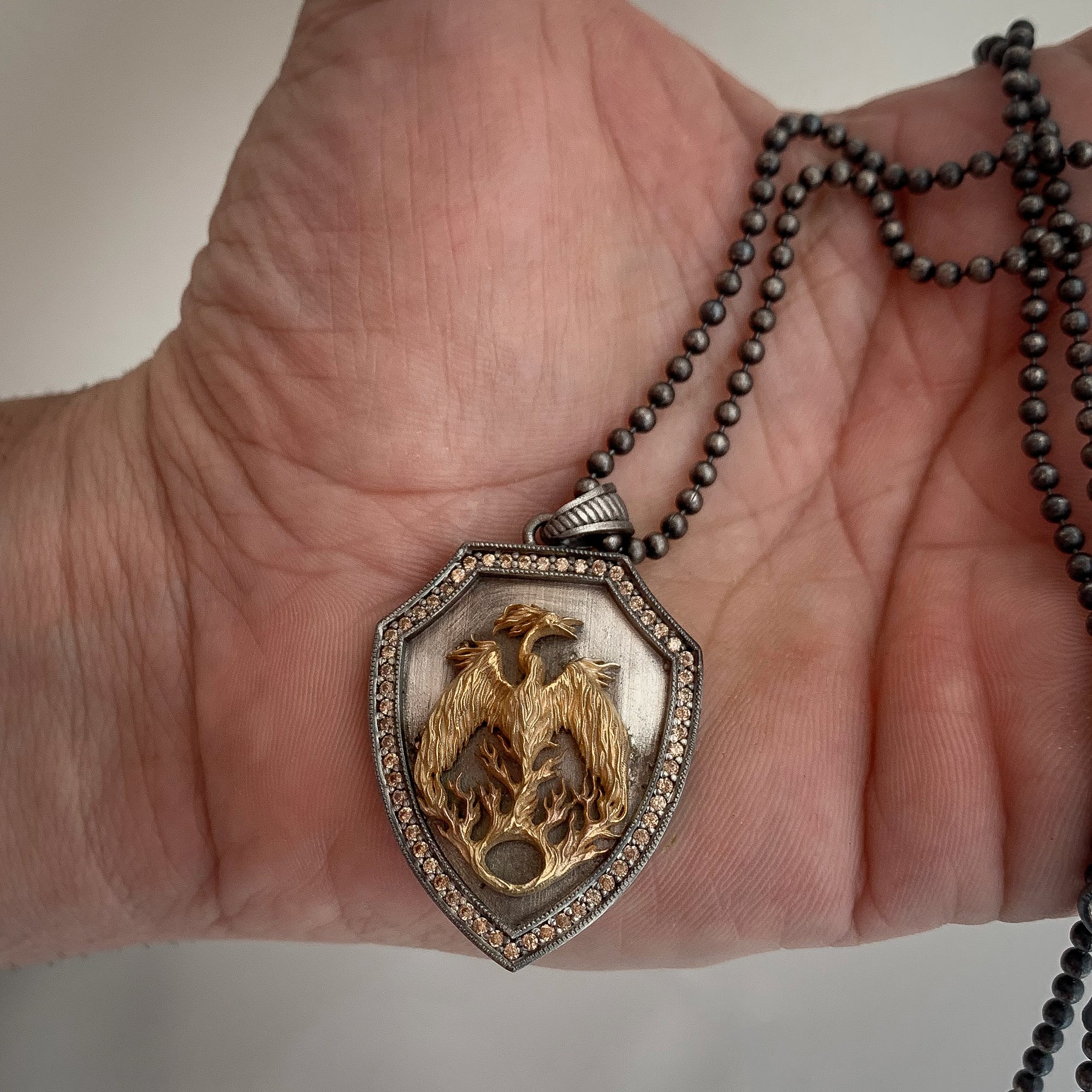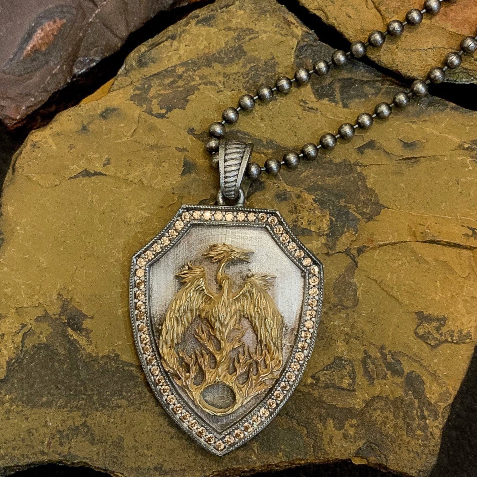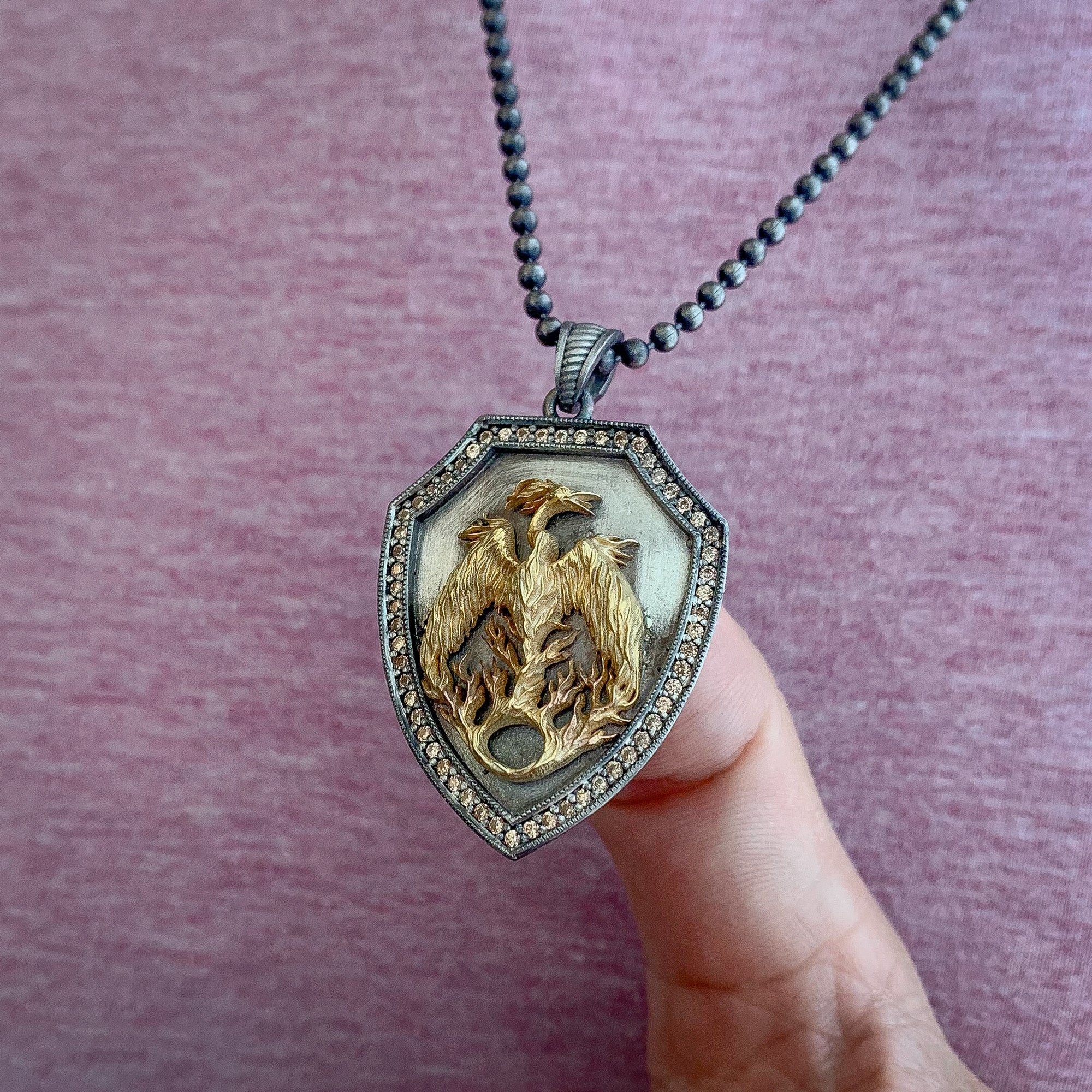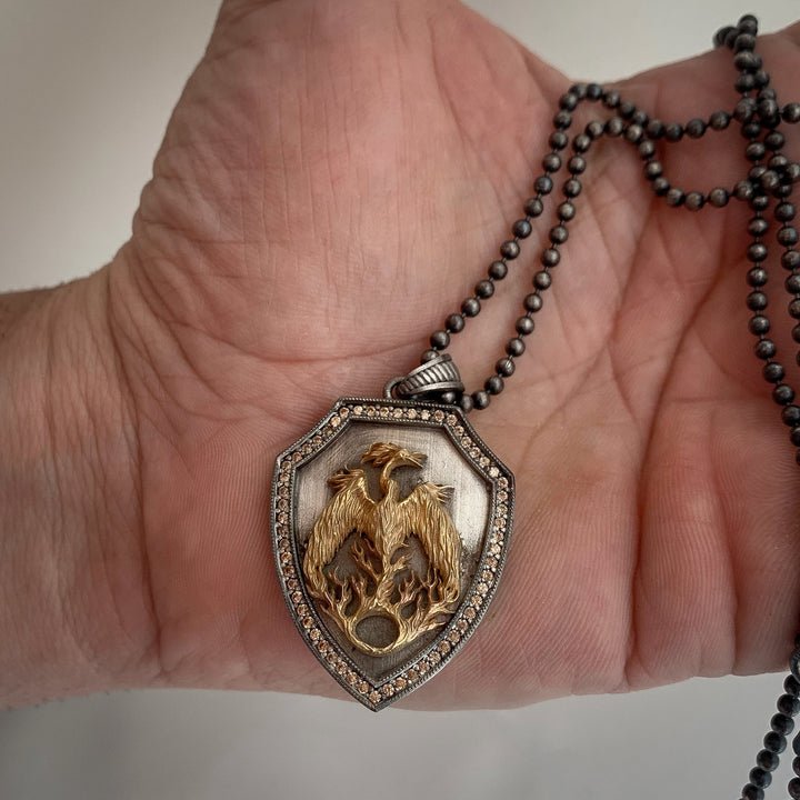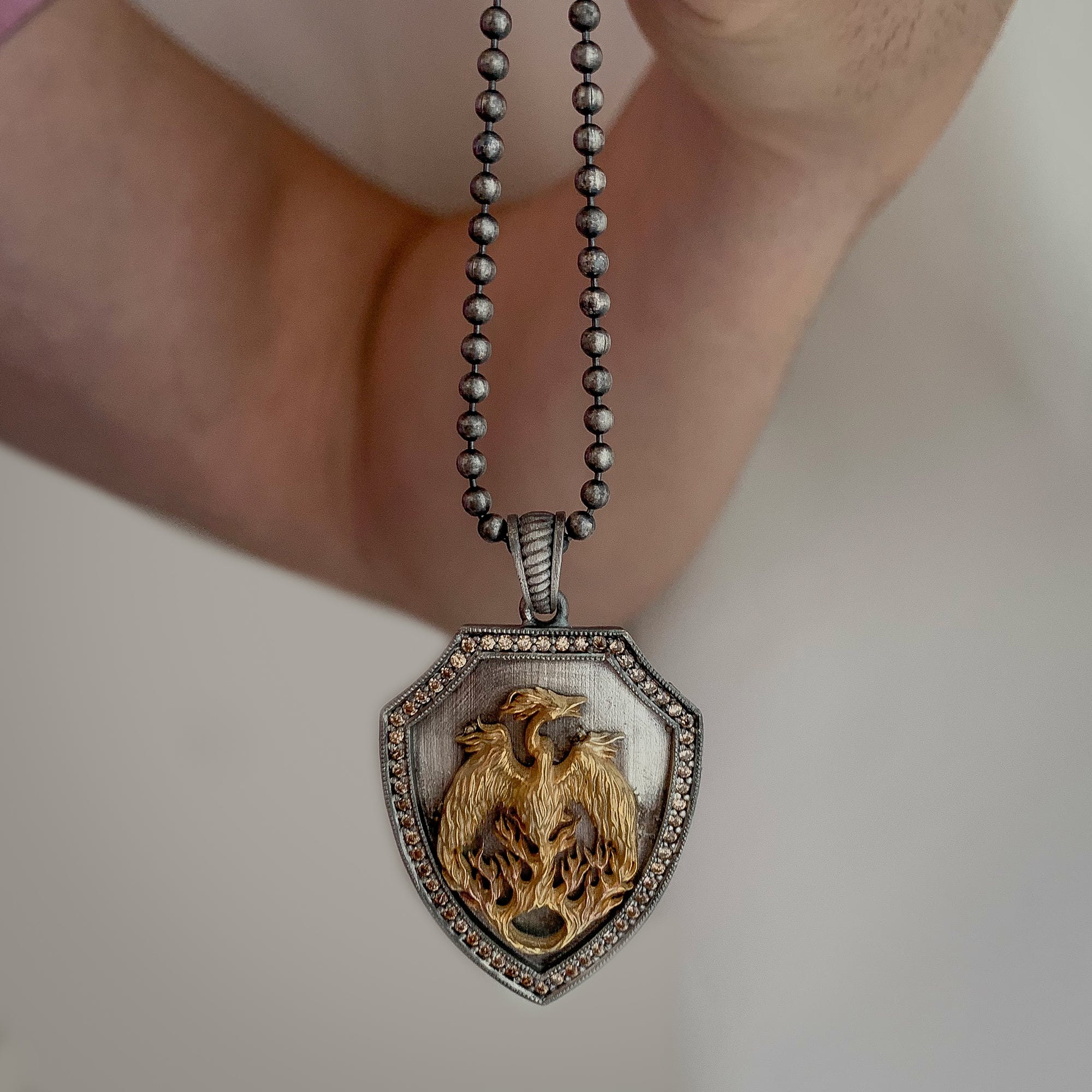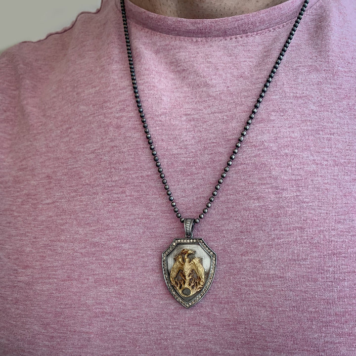 925 Two Headed Eagle Necklace, Silver Handmade Mens Necklace