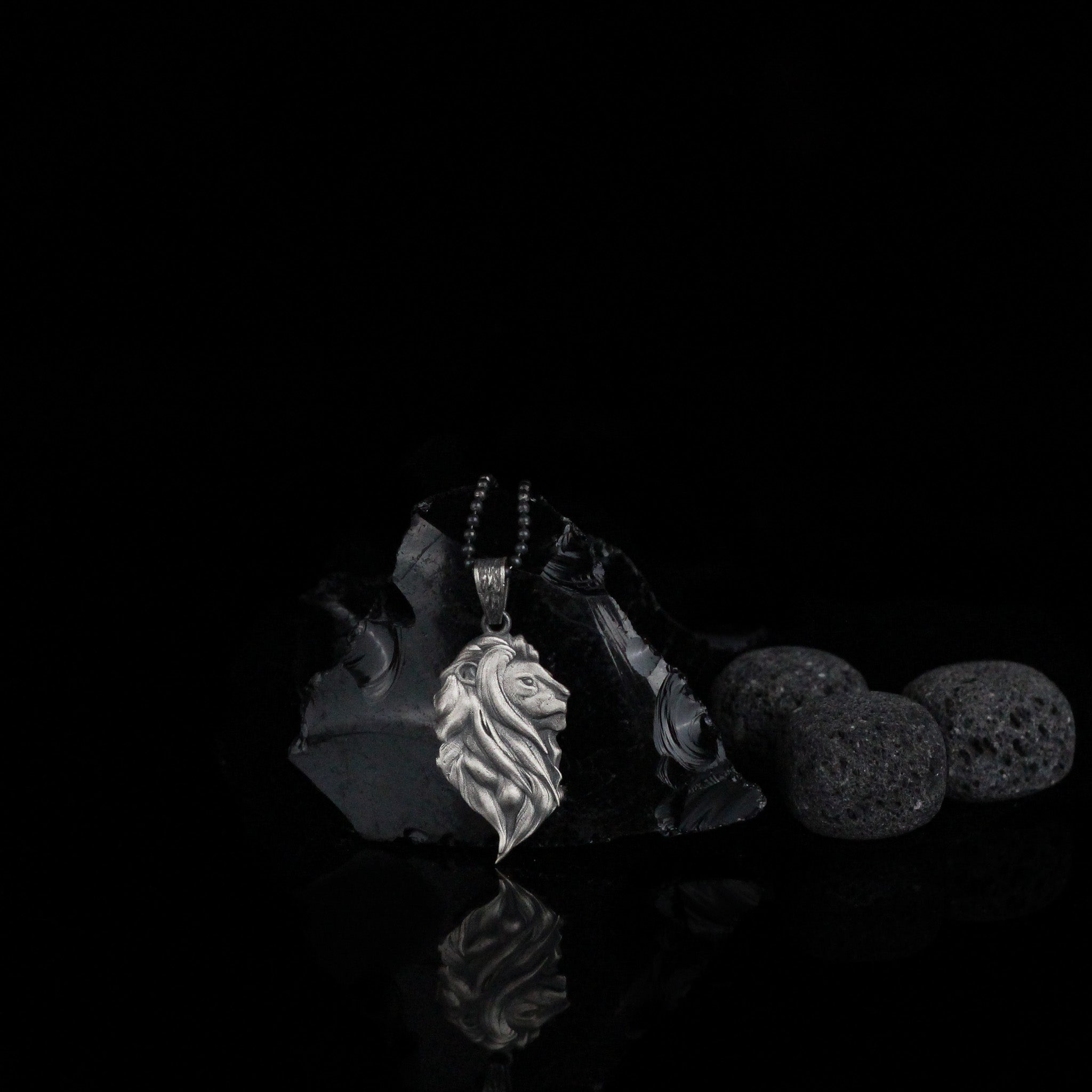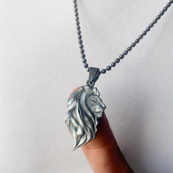 925K Silver Lion Men Necklace, Handmade Animal Pendant