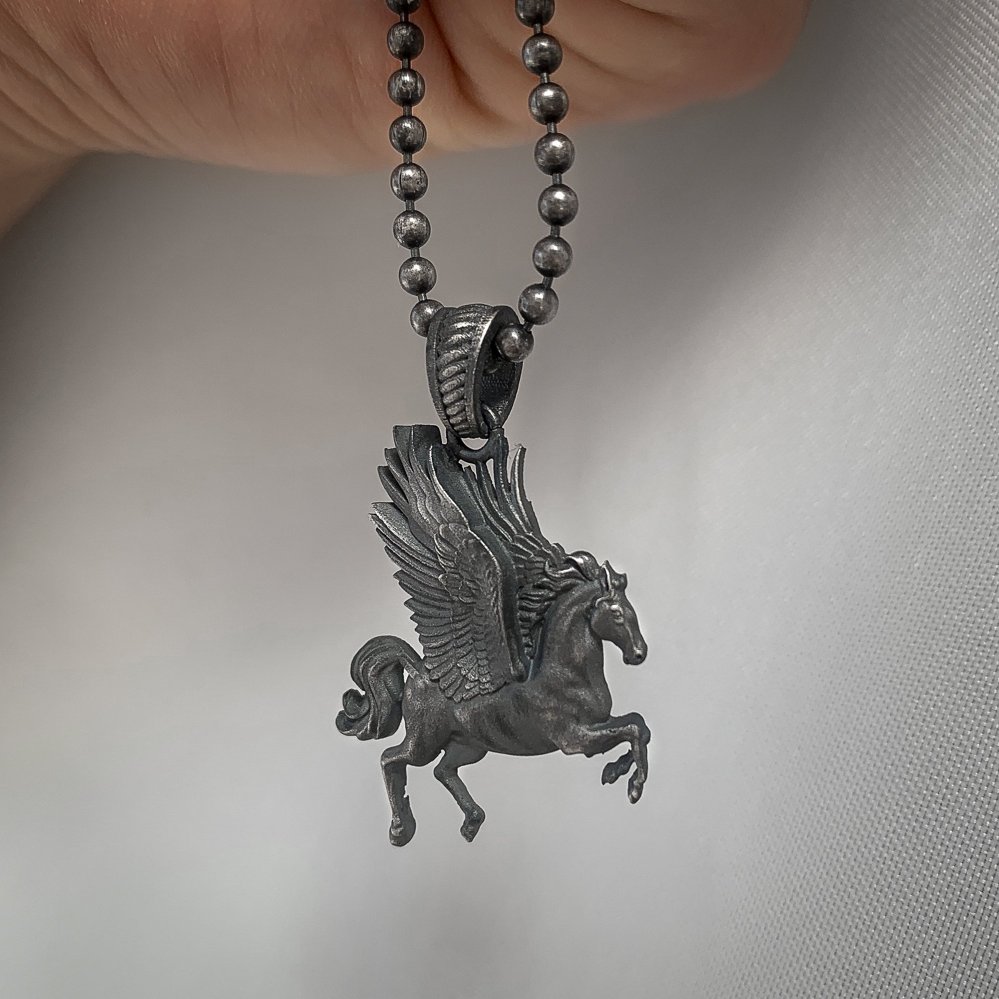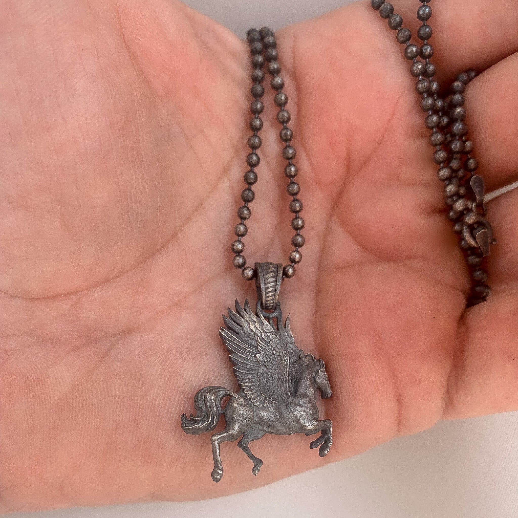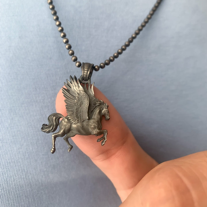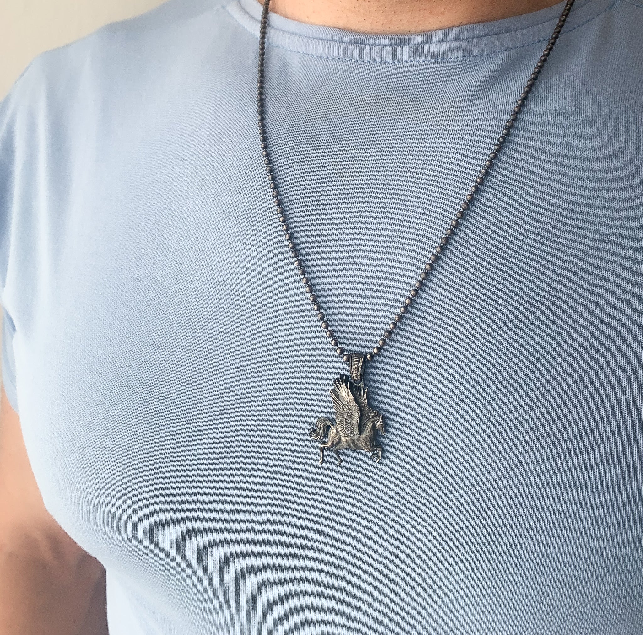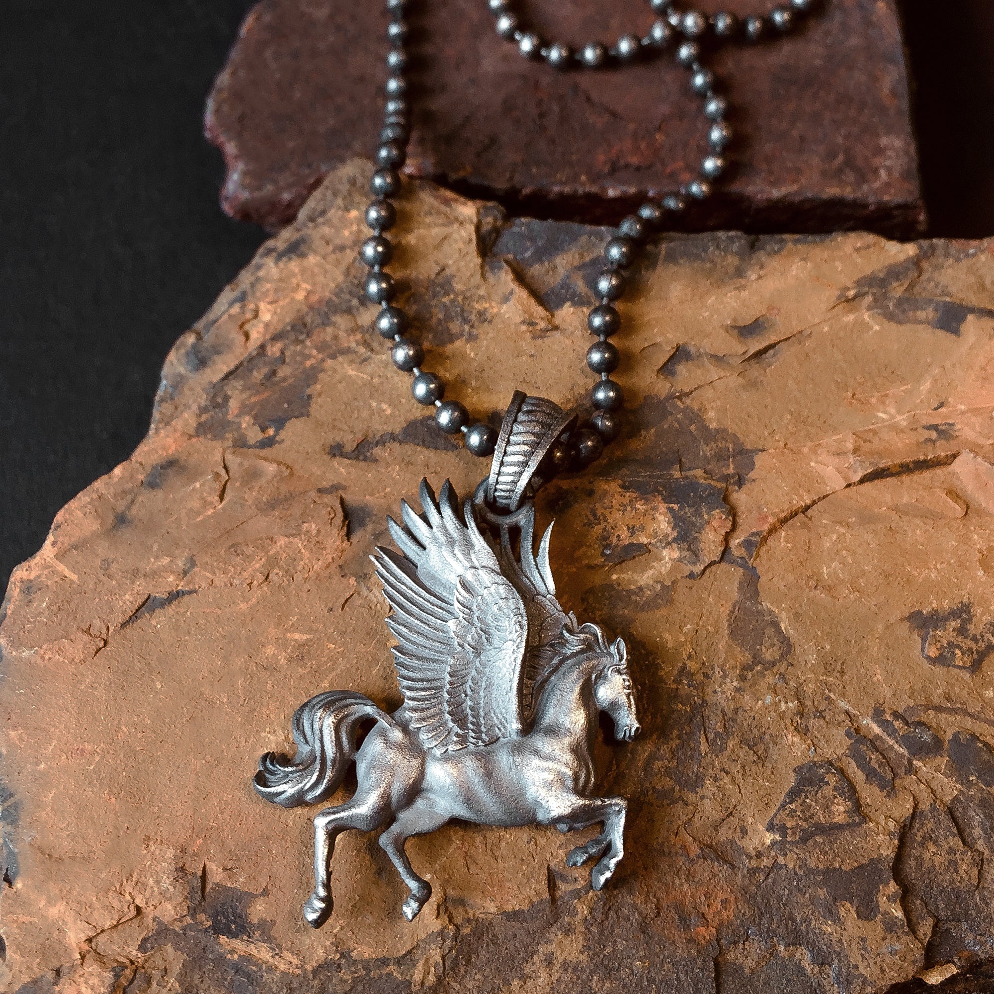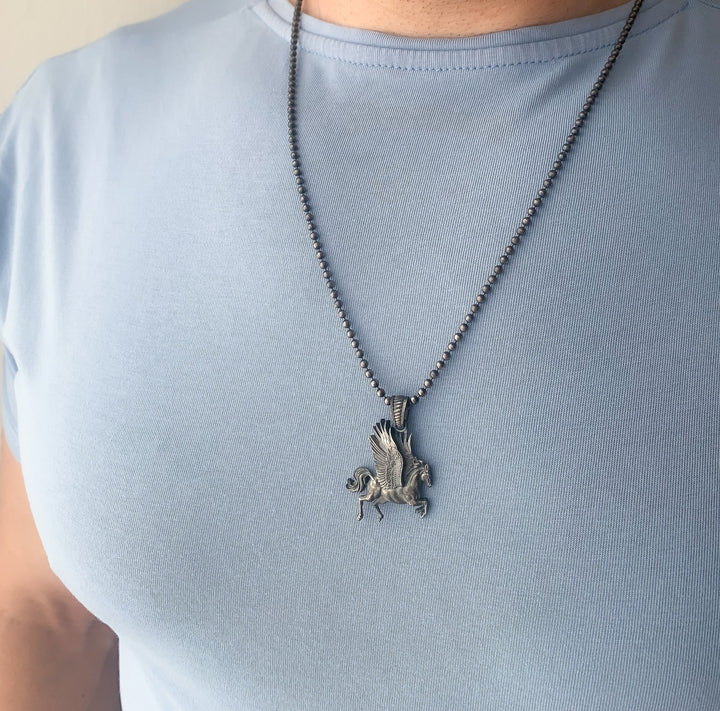 925K Silver Pegasus Necklace, Handmade Pegasus Pendant