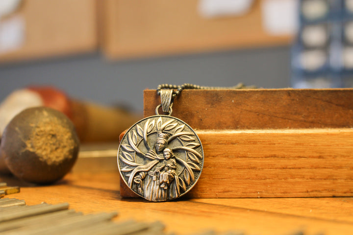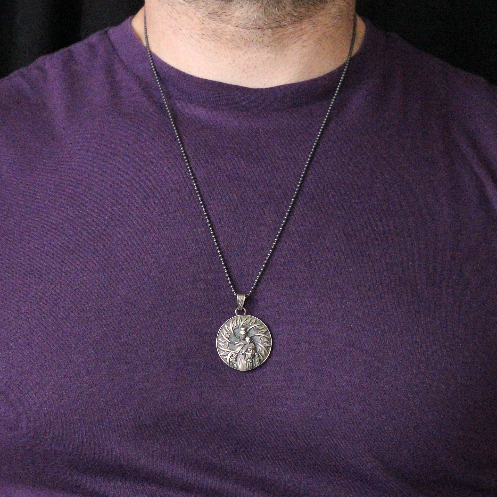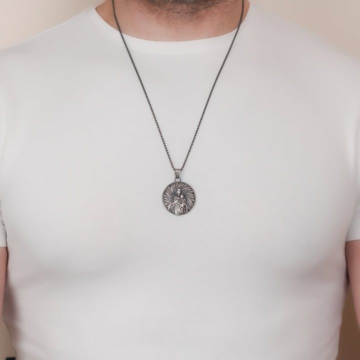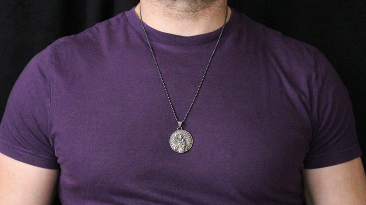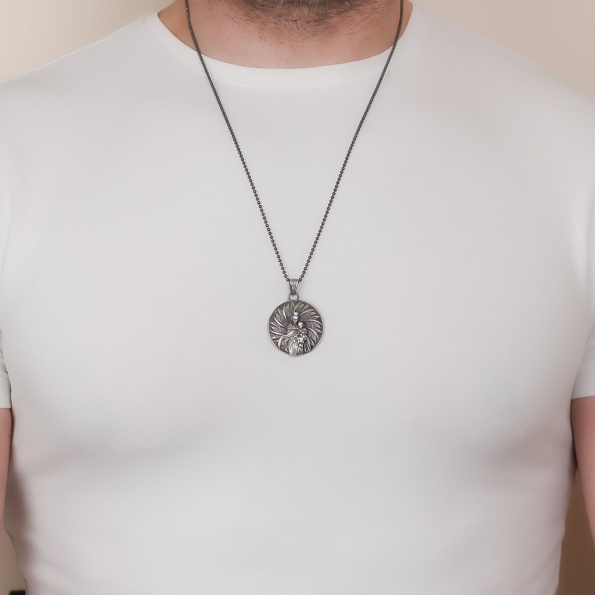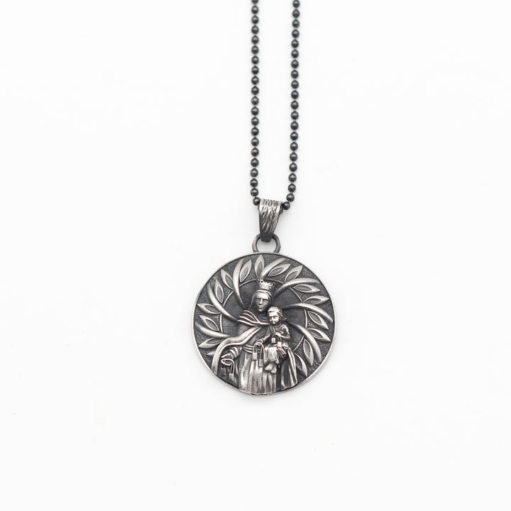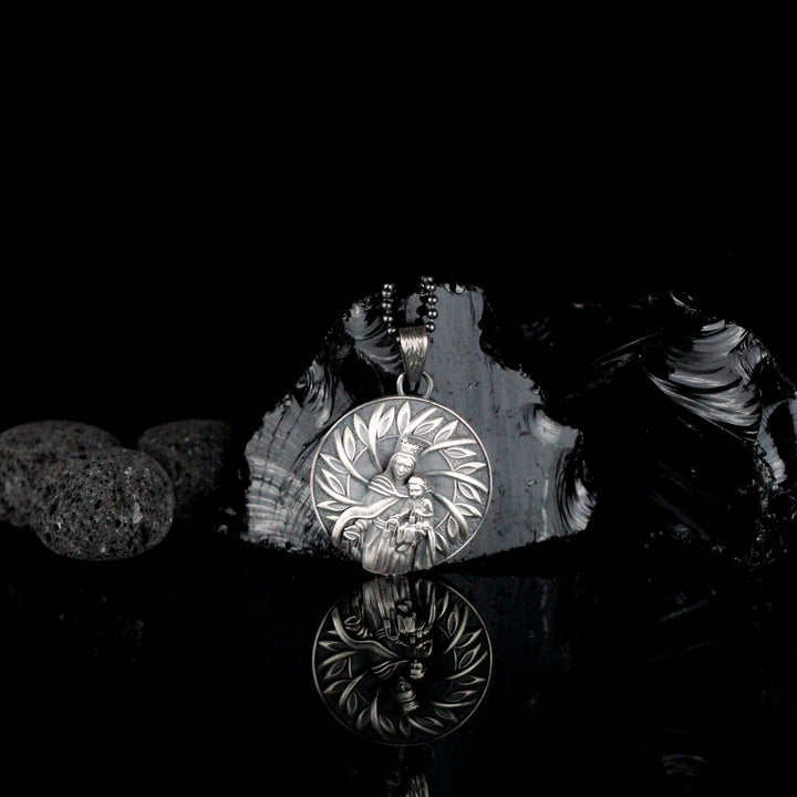 Handcrafted Virgin Mary with Baby Jesus Necklace in Sterling Silver | Religious Jewelry Gift for Men