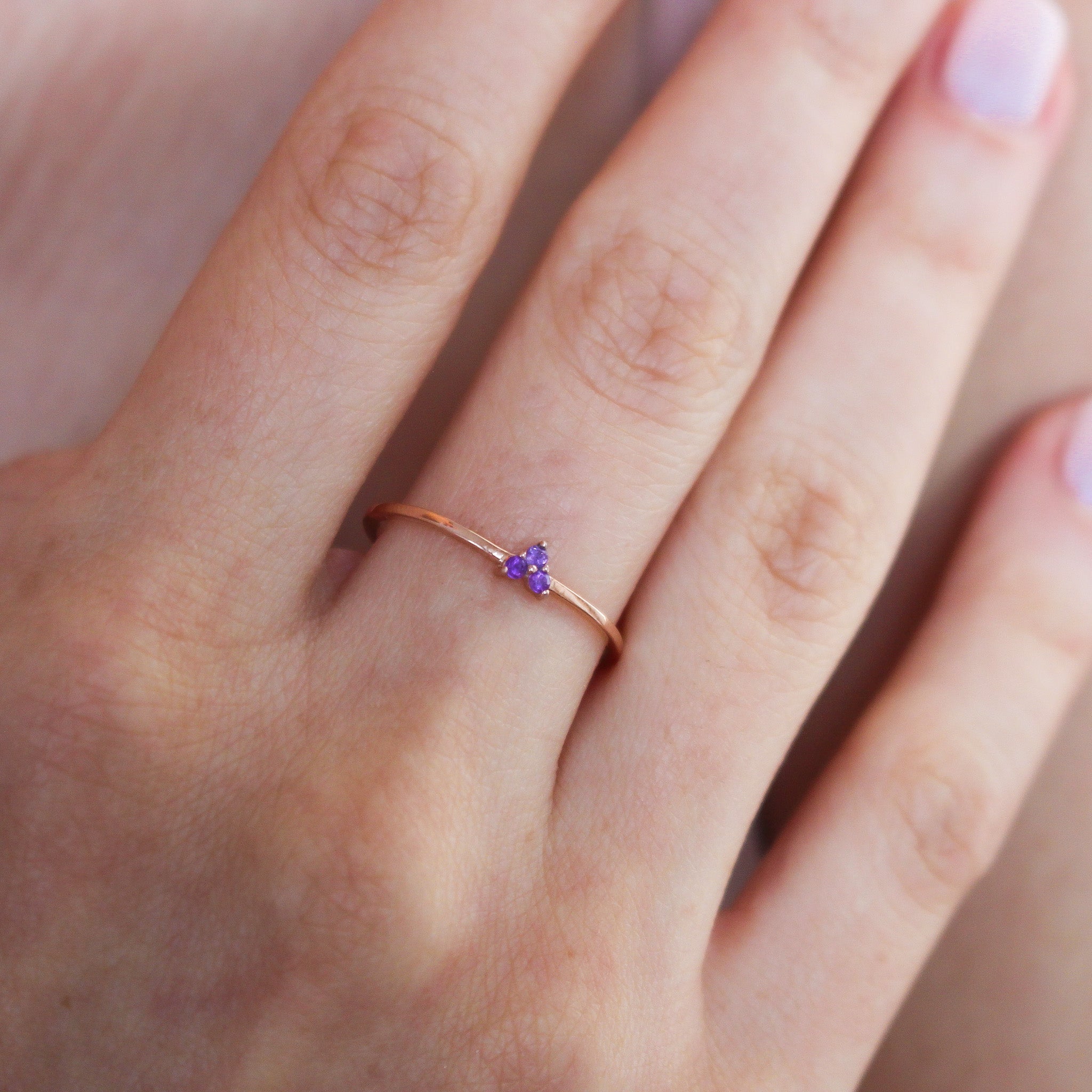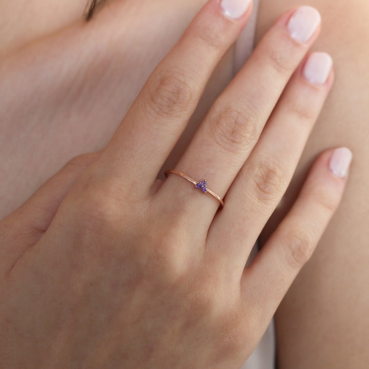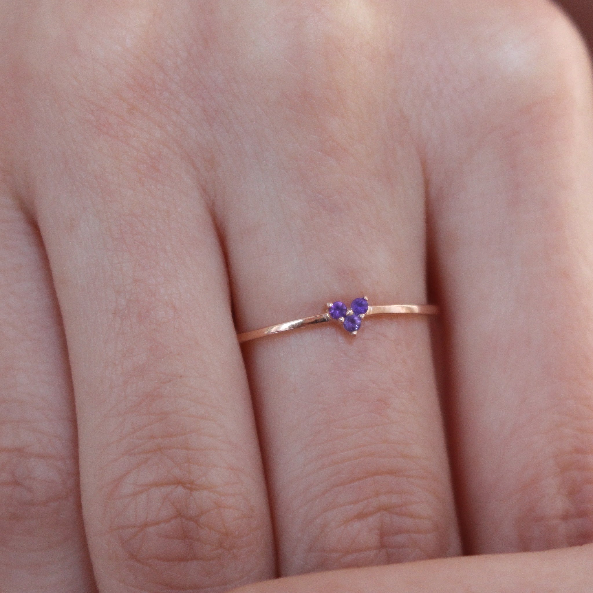 IVY Minimalist Dainty Amethyst Heart Ring in Solid Gold or Silver | Amethyst Promise Ring for Women
