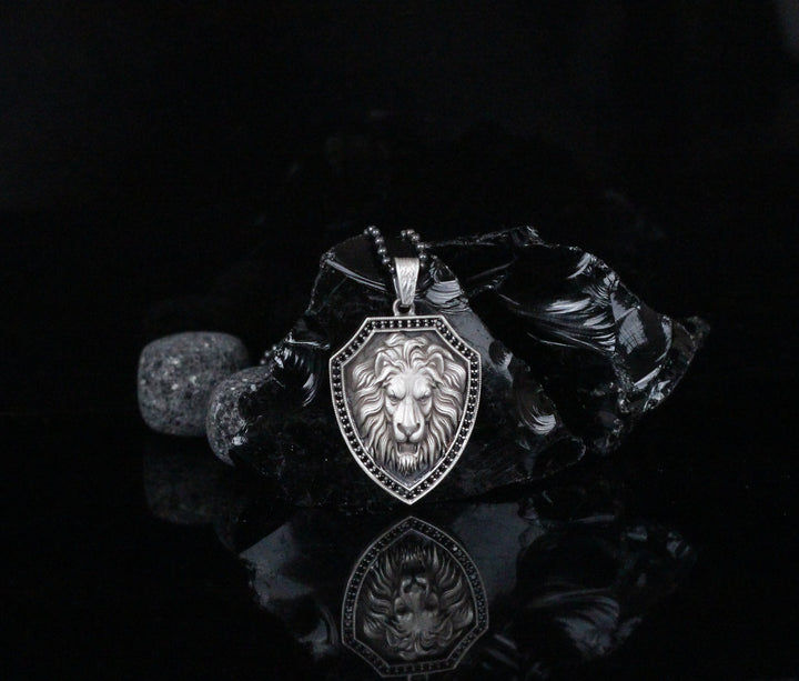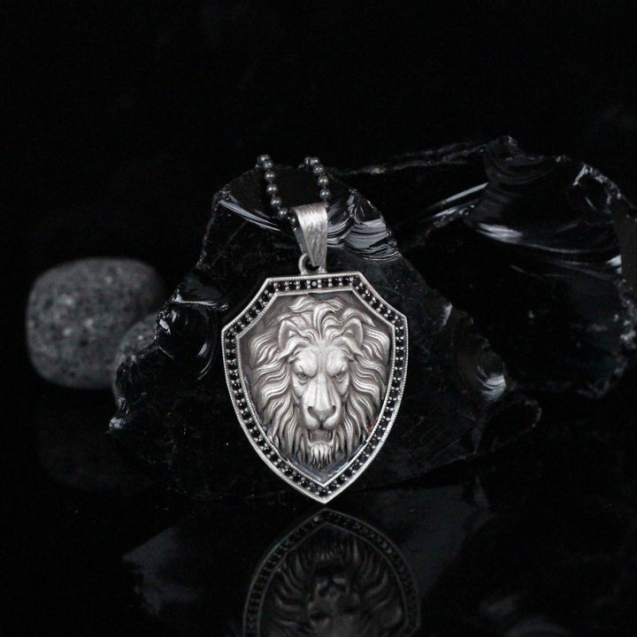 Engraved Lion Medallion Necklace for Men | Vintage Coin Pendant, Roaring Lion Charm