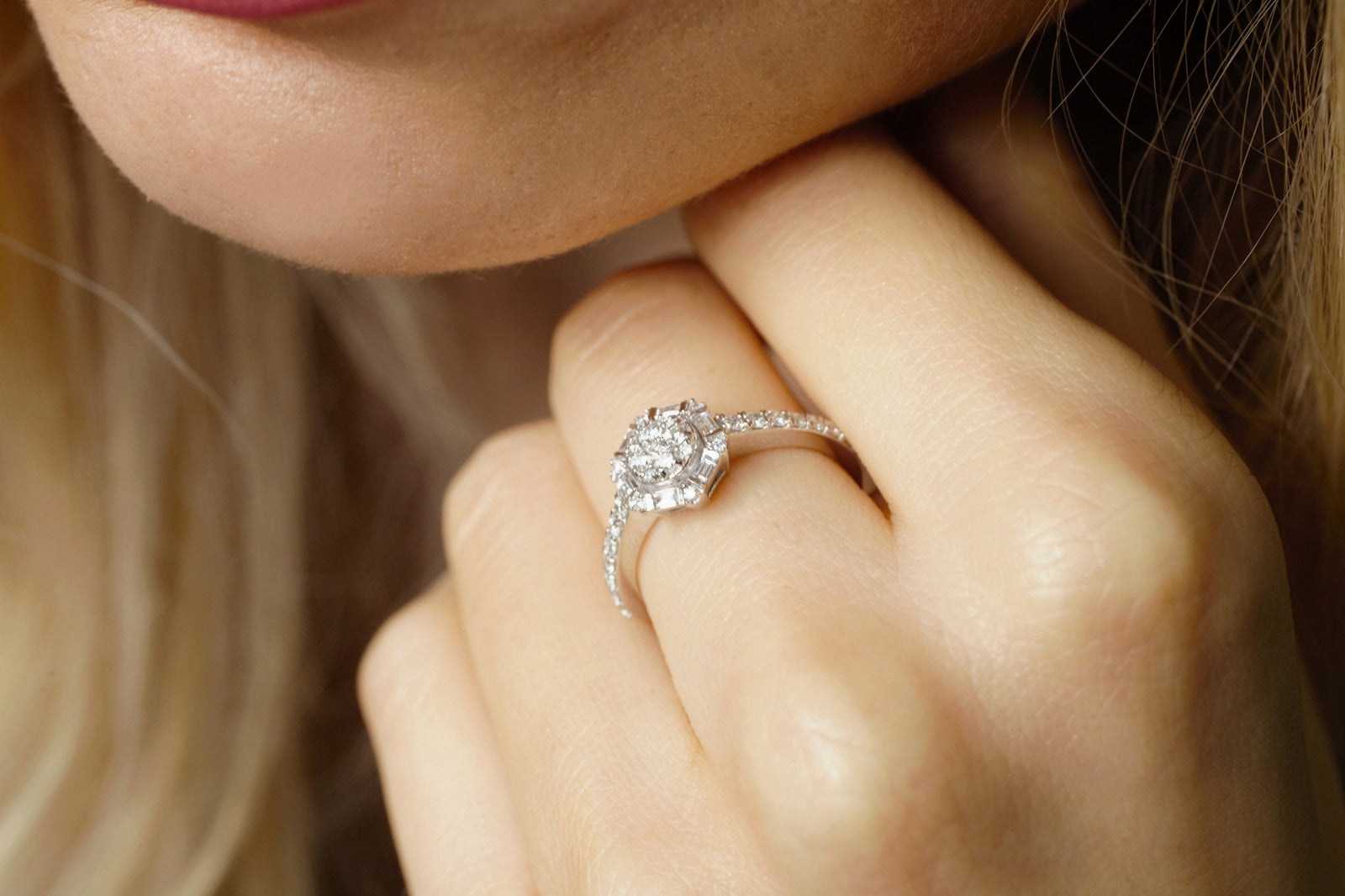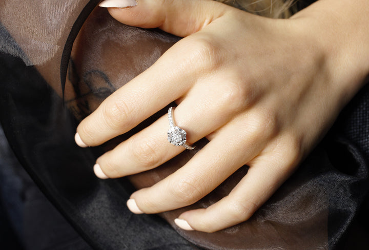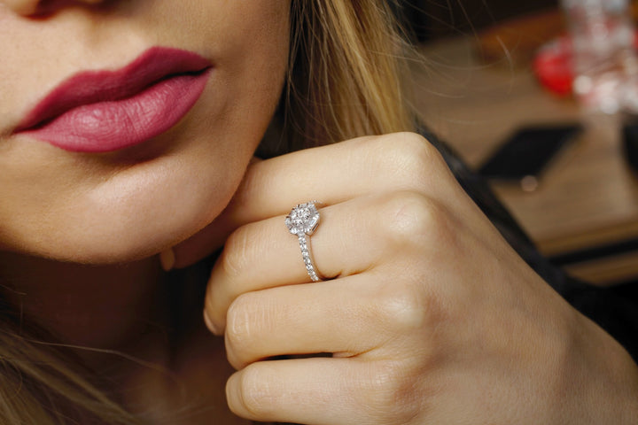 ARIANA Classic Round Halo Diamond Ring in 8K or 14K Solid Gold | Timeless Elegance Design Proposal Ring