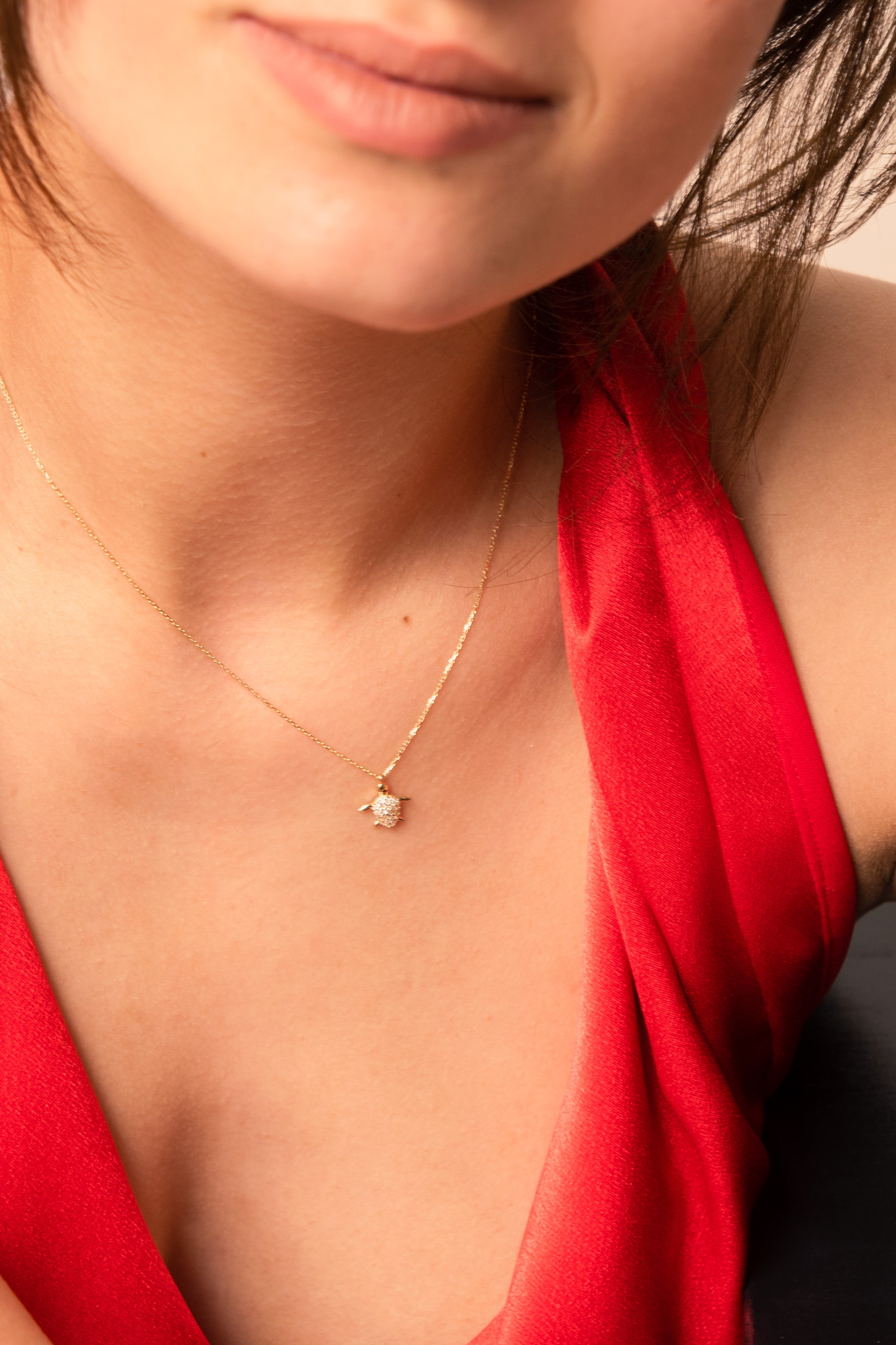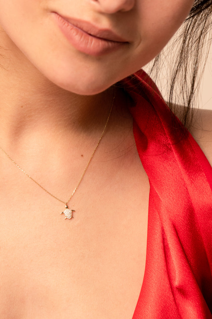 Embrace the beauty of nature with this Diamond Turtle Necklace, a stunning piece that captures the charm of a turtle design crafted with shimmering diamonds and sparkling zircon stones. Available in 925K sterling silver, 8K solid gold, or 14K solid gold, this pendant is perfect for special occasions, nature enthusiasts, or anyone who appreciates unique and luxurious jewelry.