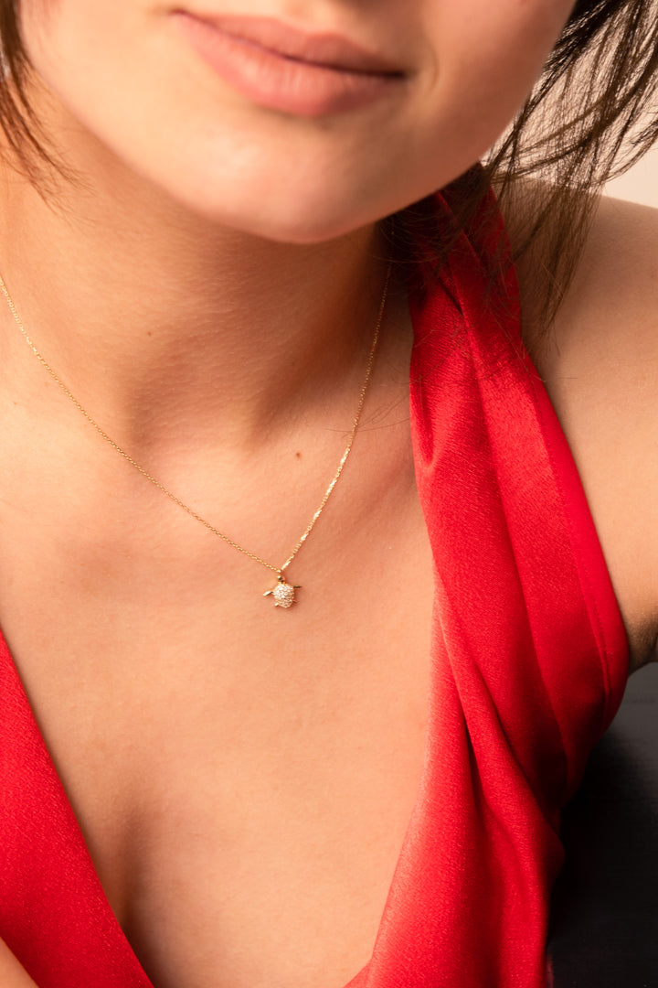 THEO Diamond Turtle Necklace | Sterling Silver & Gold Gemstone Tortoise Pendant