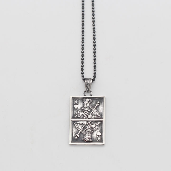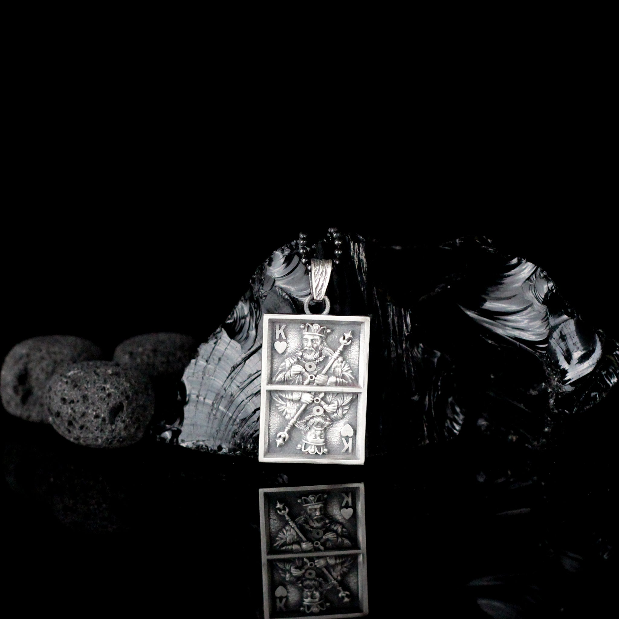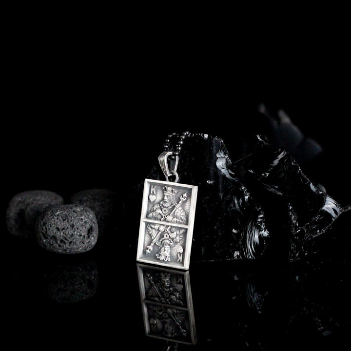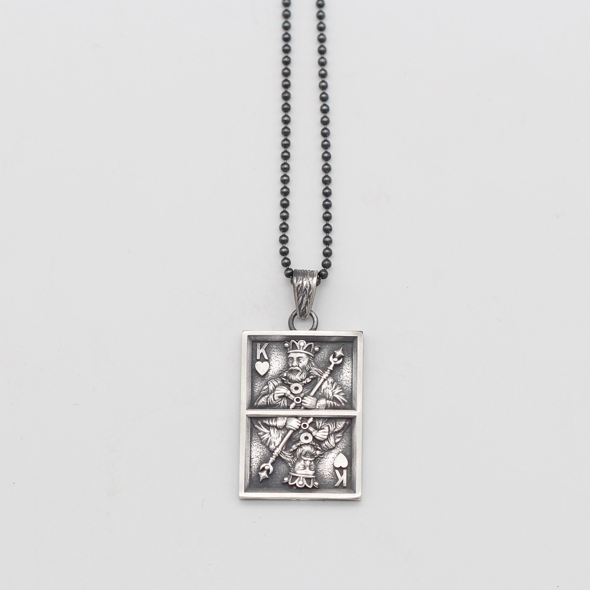 Sterling Silver Playing Card Necklace | Unique King of Hearts and Spades Card Necklace