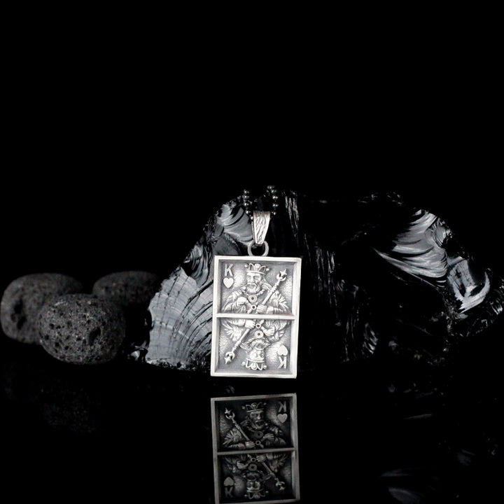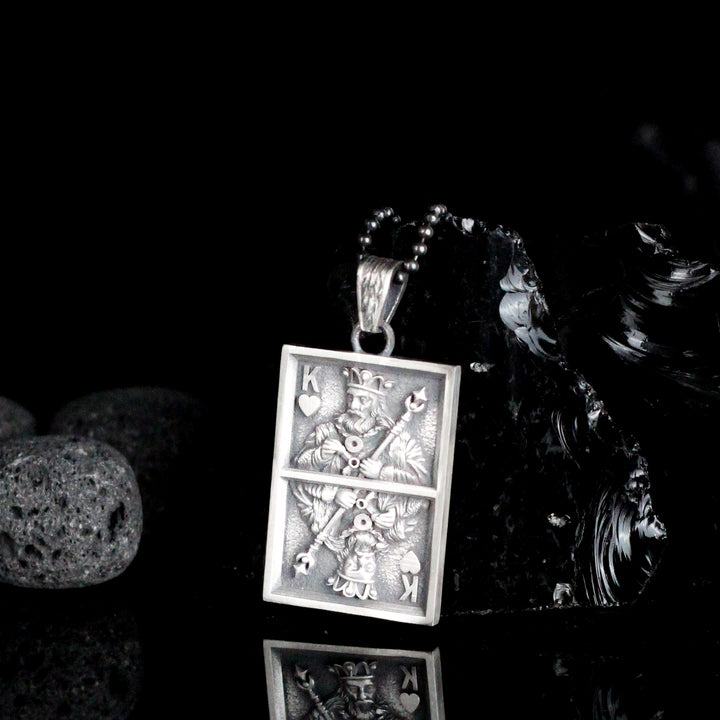 Showcase your love for cards and sophistication with the King Playing Card Sterling Silver Pendant Necklace. Featuring a detailed design of the King of Hearts and Spades on 925 Sterling Silver, this pendant is a striking symbol of power, strategy, and elegance. A perfect addition to your collection or a thoughtful gift for someone special.