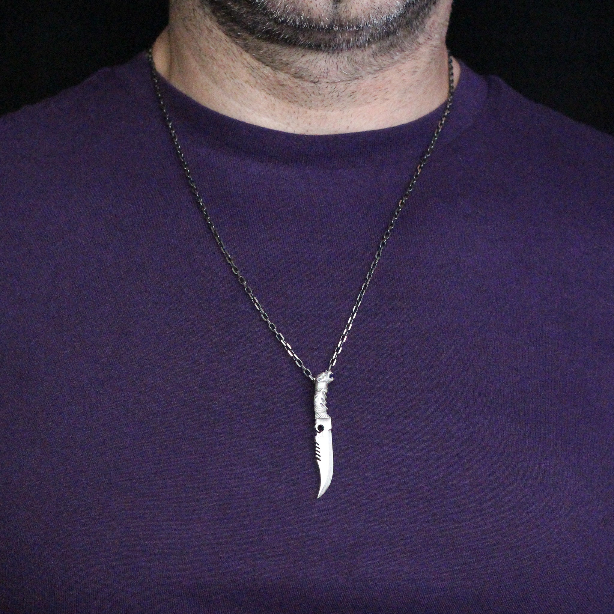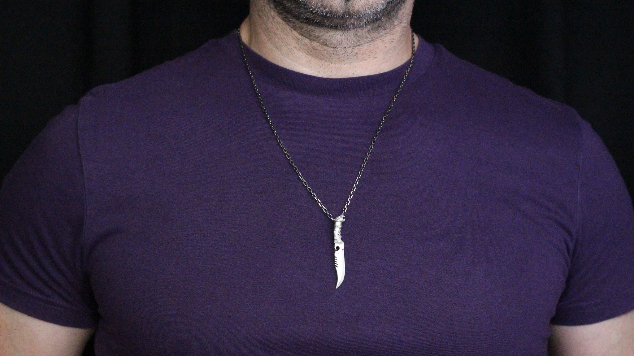Tiger Head on Sword Necklace, Zulfiqar Necklace
