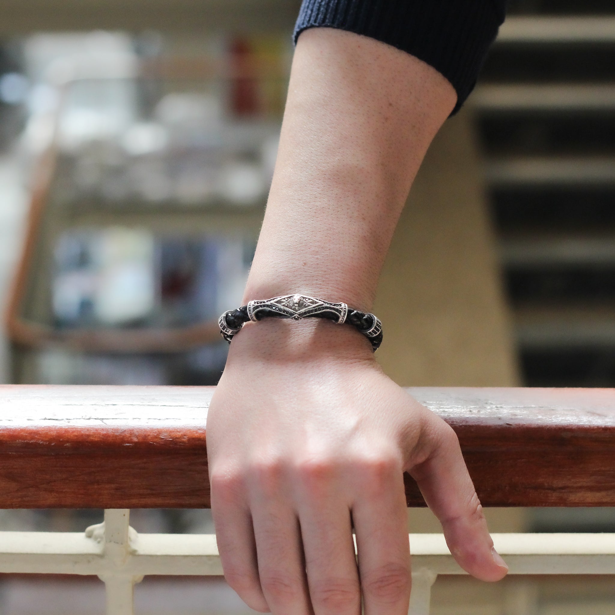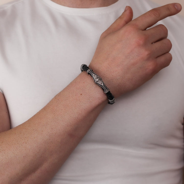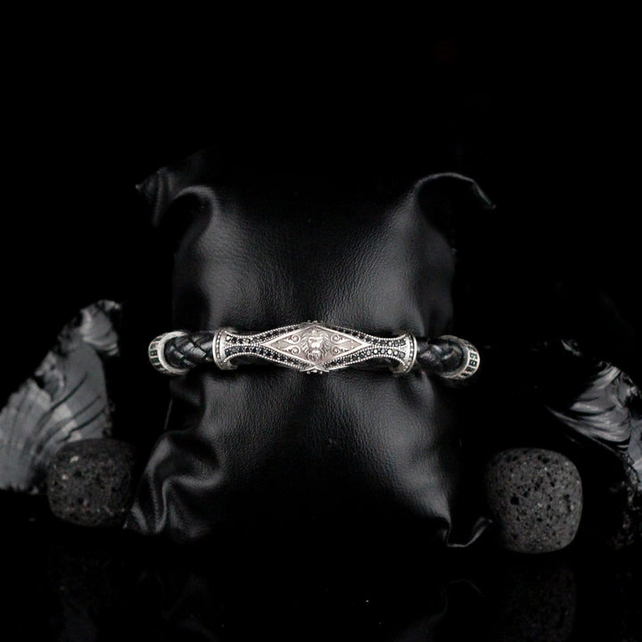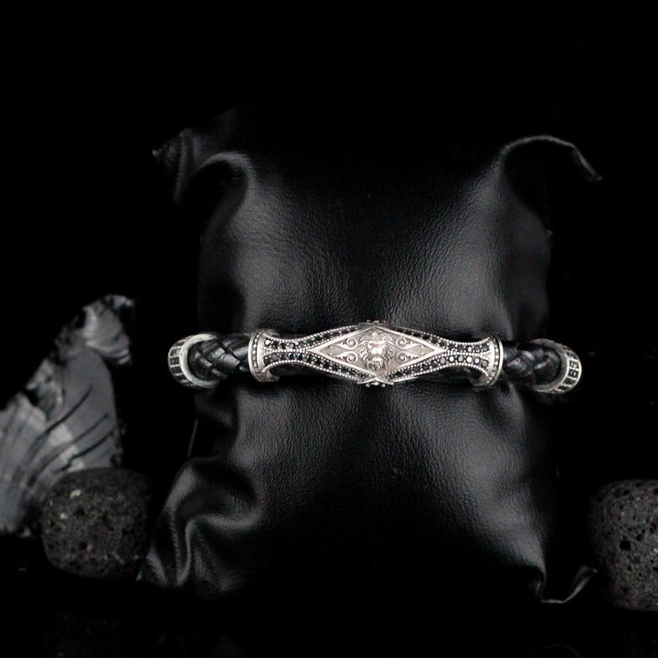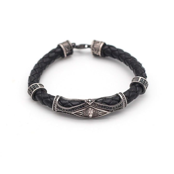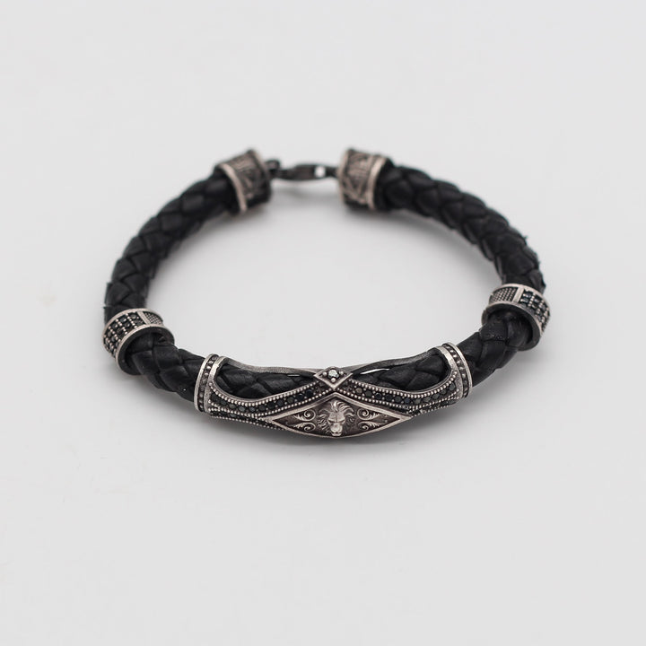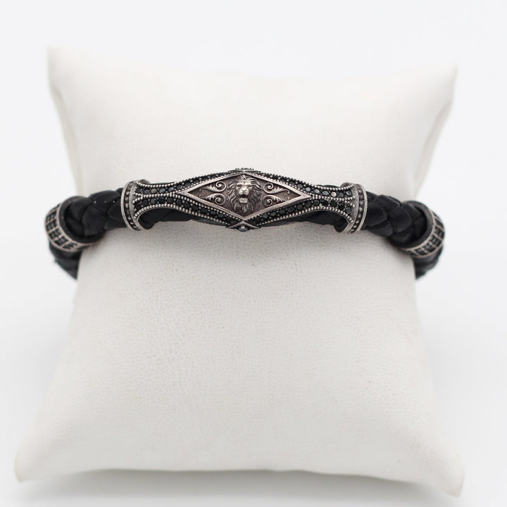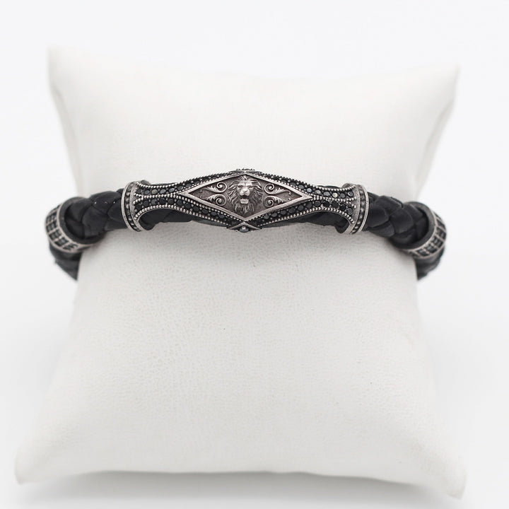 Leather Lion Bracelet For Men, Silver Lion Bracelet