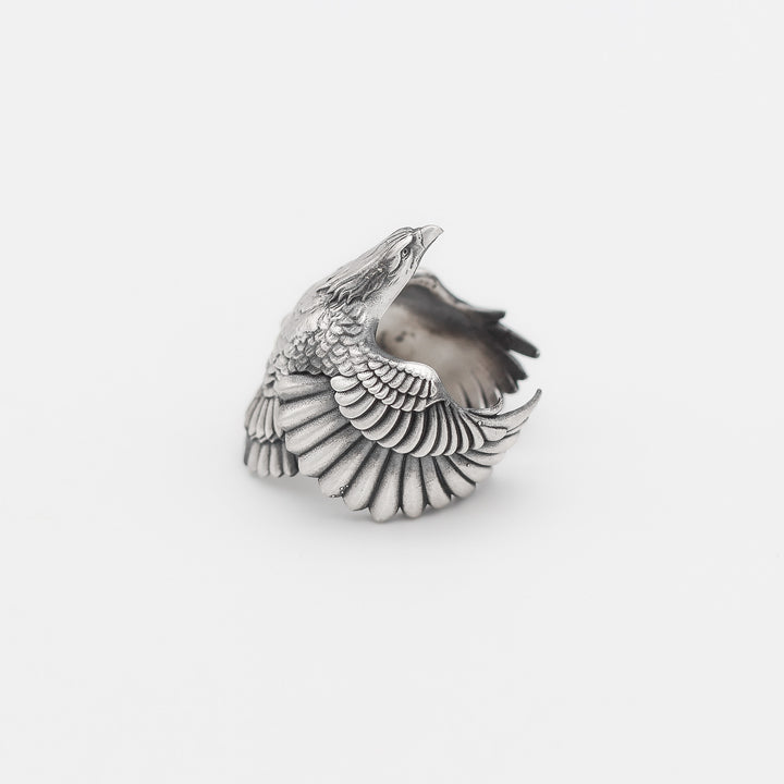 Sterling Silver Winged Eagle Ring for Men | Large Majestic Eagle Ring