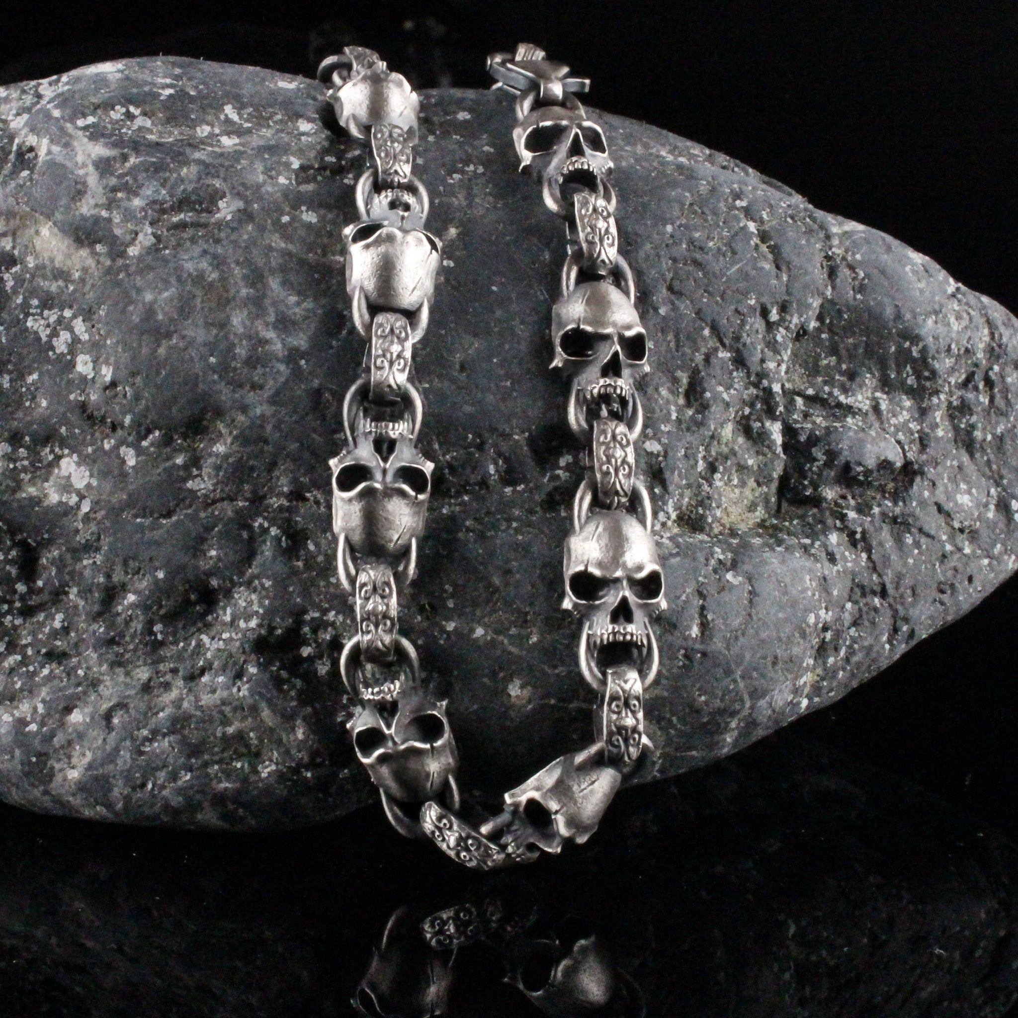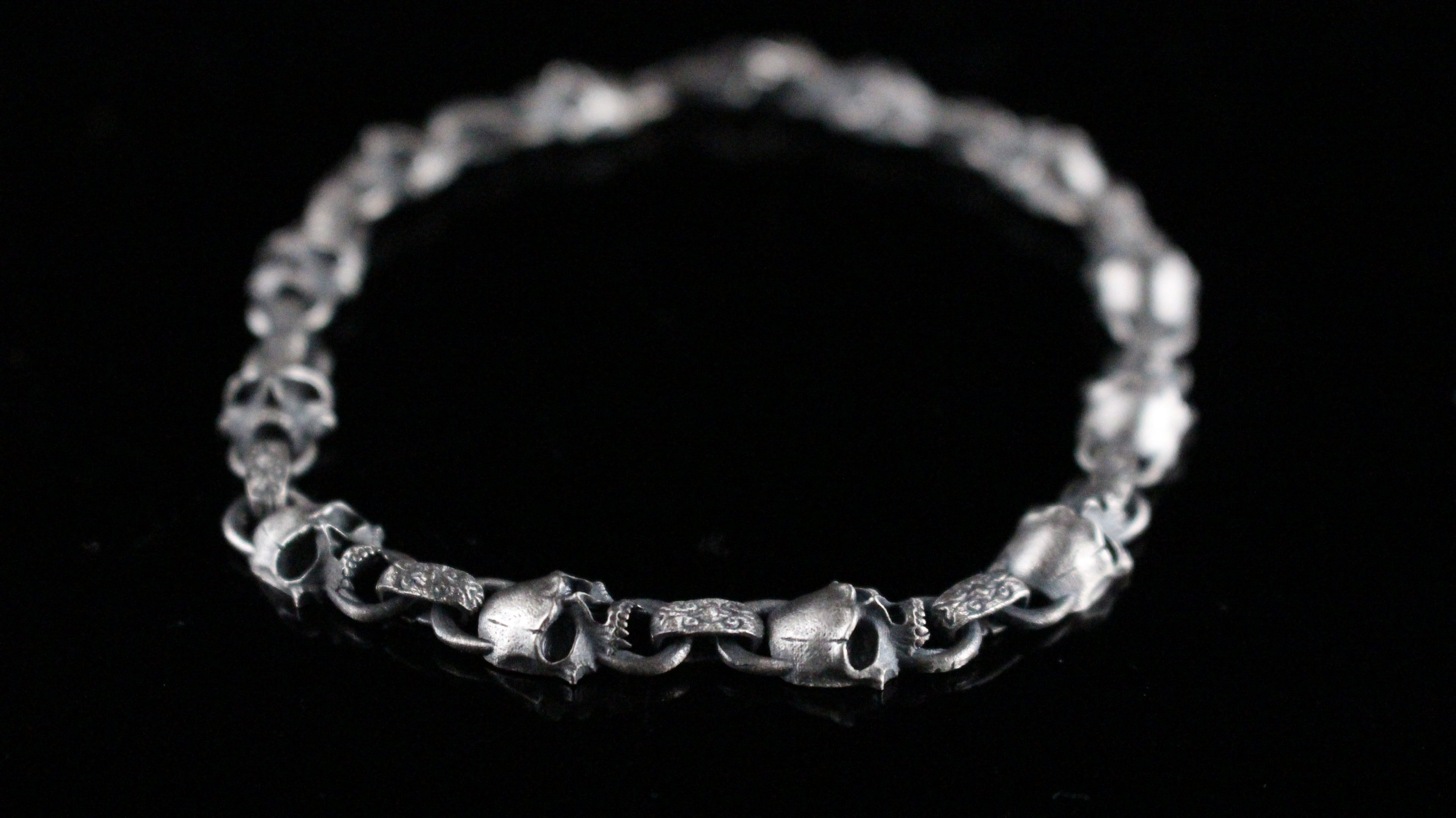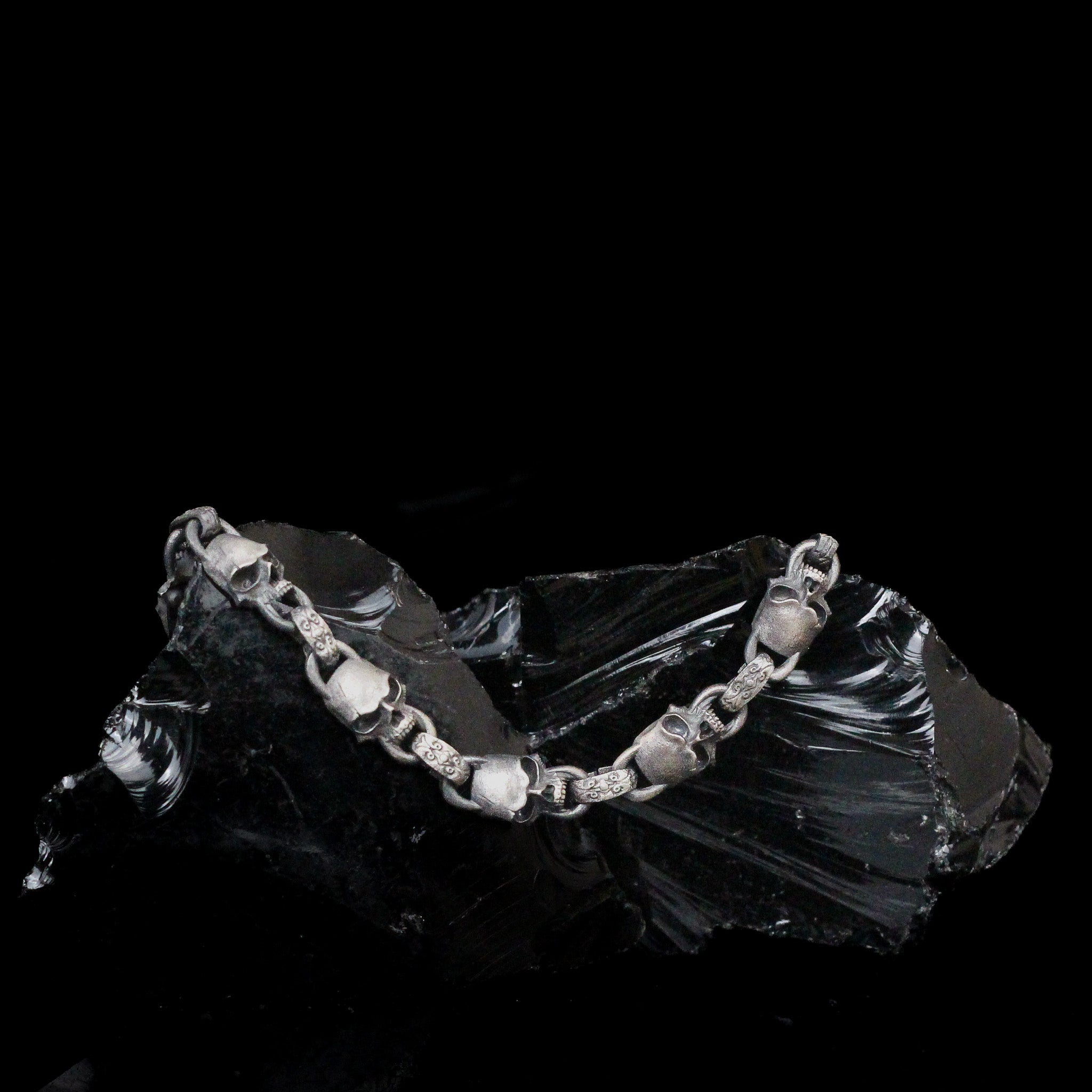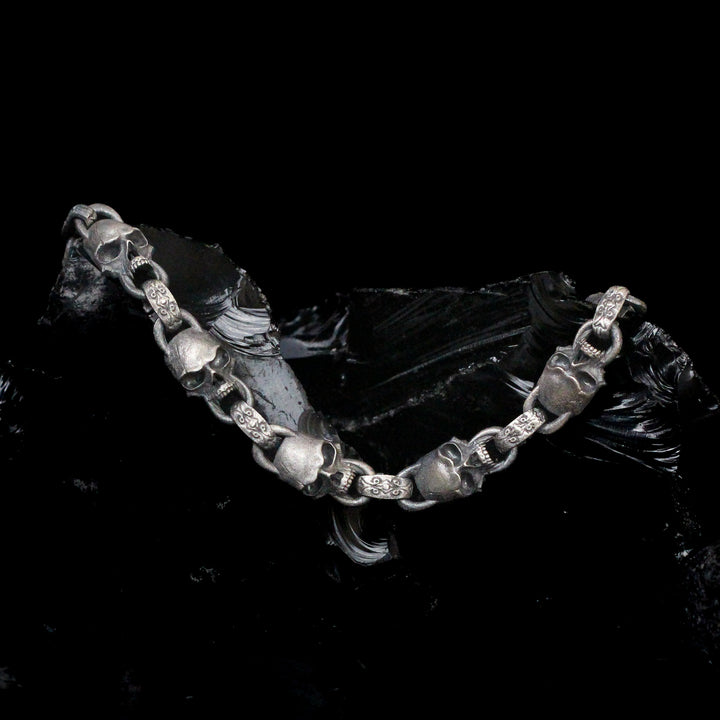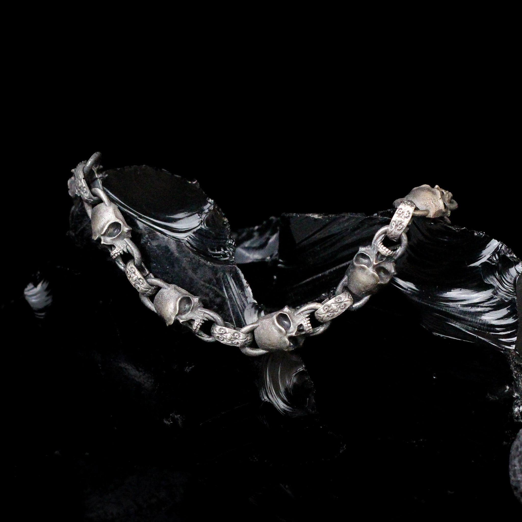 Sterling Silver Skull Bracelet for Men | Handmade Intricate Skull Jewelry for Men