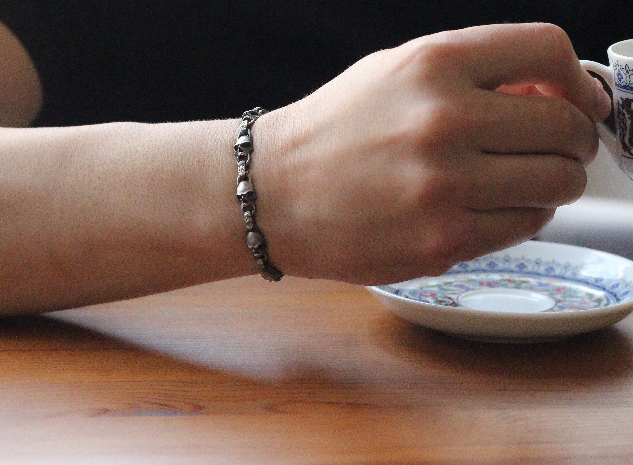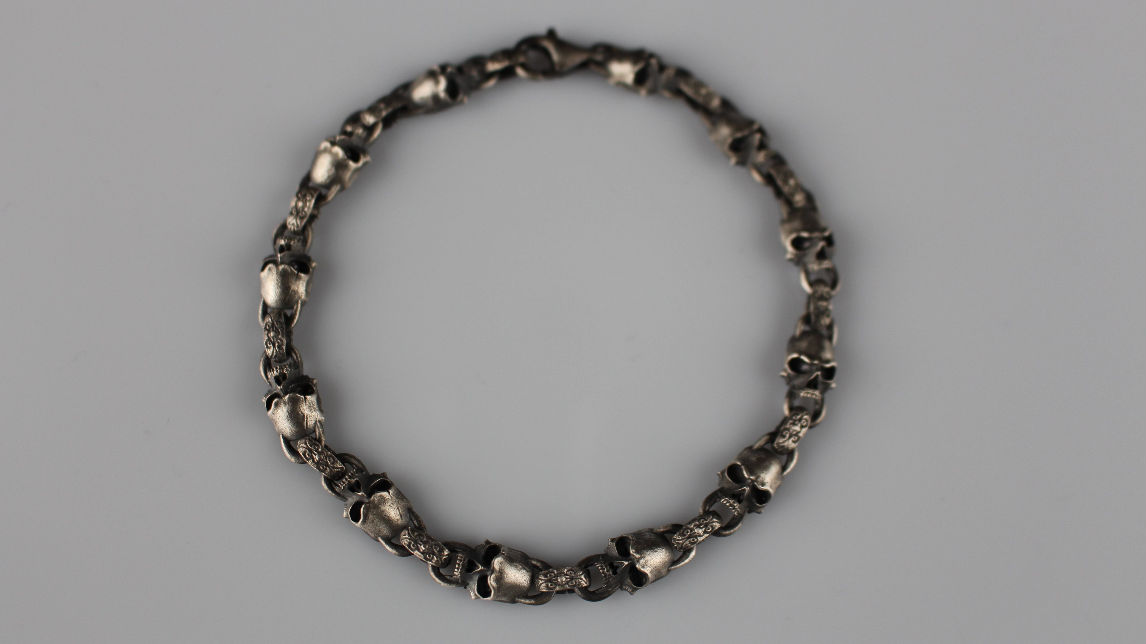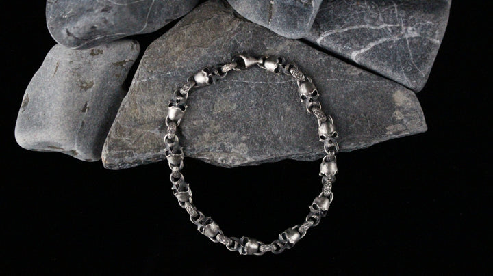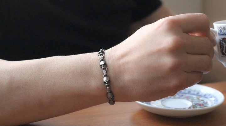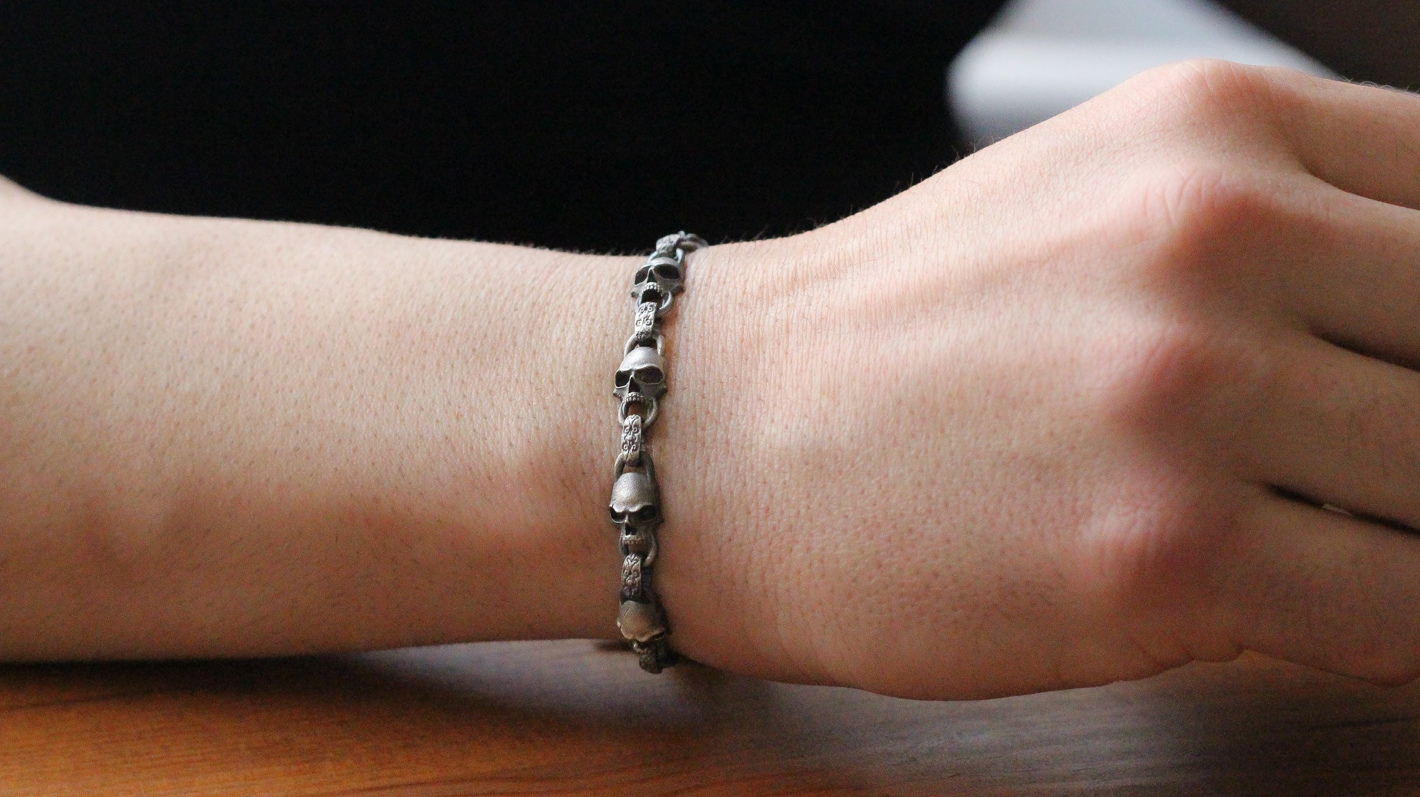 Sterling Silver Skull Bracelet for Men | Handmade Intricate Skull Jewelry for Men