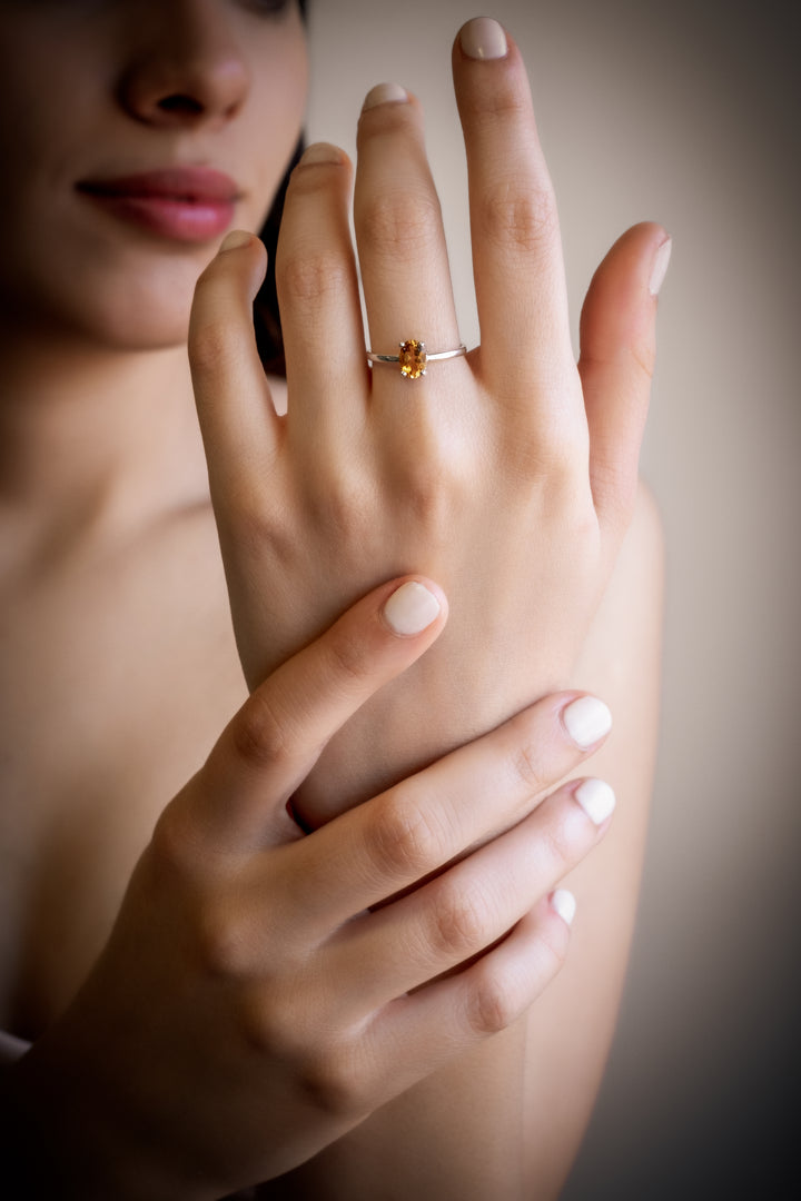 NAYELI Oval Natural Citrine Engagement Ring for Her | Sterling Silver, 8K or 14K Gold Radiant Gemstone Ring