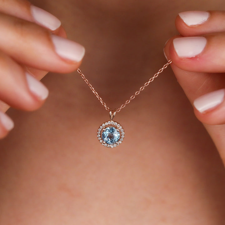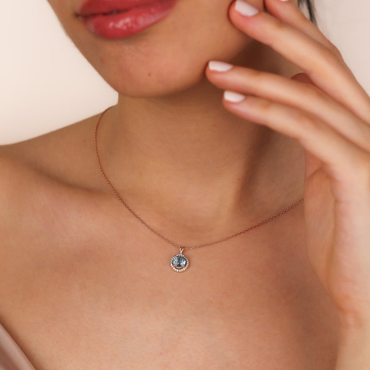 Radiate timeless beauty with this Natural Swiss Topaz Necklace, featuring a captivating round Swiss blue topaz gemstone surrounded by your choice of shimmering diamonds or sparkling cubic zirconia stones. Crafted with precision in 925K sterling silver, 8K solid gold, or 14K solid gold, this necklace is the epitome of luxury and elegance. Perfect for anniversaries, romantic gifts, or any special moment, this pendant is a dazzling addition to any jewelry collection.